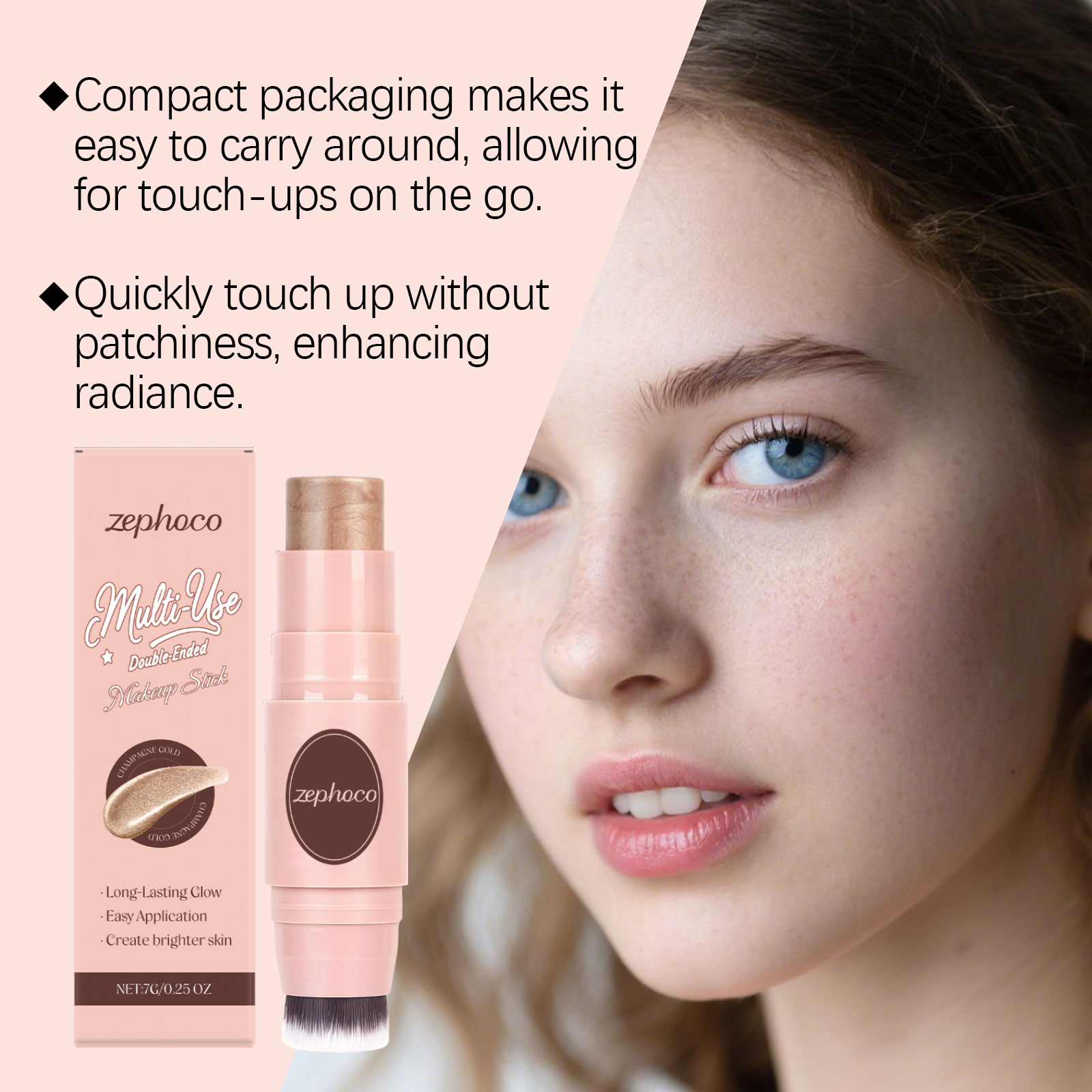 我们的香槟金双头彩妆棒,由矿油、聚二甲基硅氧烷精心调配而成。专为打造立体光泽妆容效果,提亮面部轮廓增强立体感设计。使用方法极为便捷:1.将本品直接涂抹在面部高光区。2.手指轻拍或者本品一头的刷子均匀晕染,可叠加使用增强效果。3.补妆时直接叠加涂抹即可。并且它可以维持持久不脱妆的妆效,适合多种场合妆容需求。