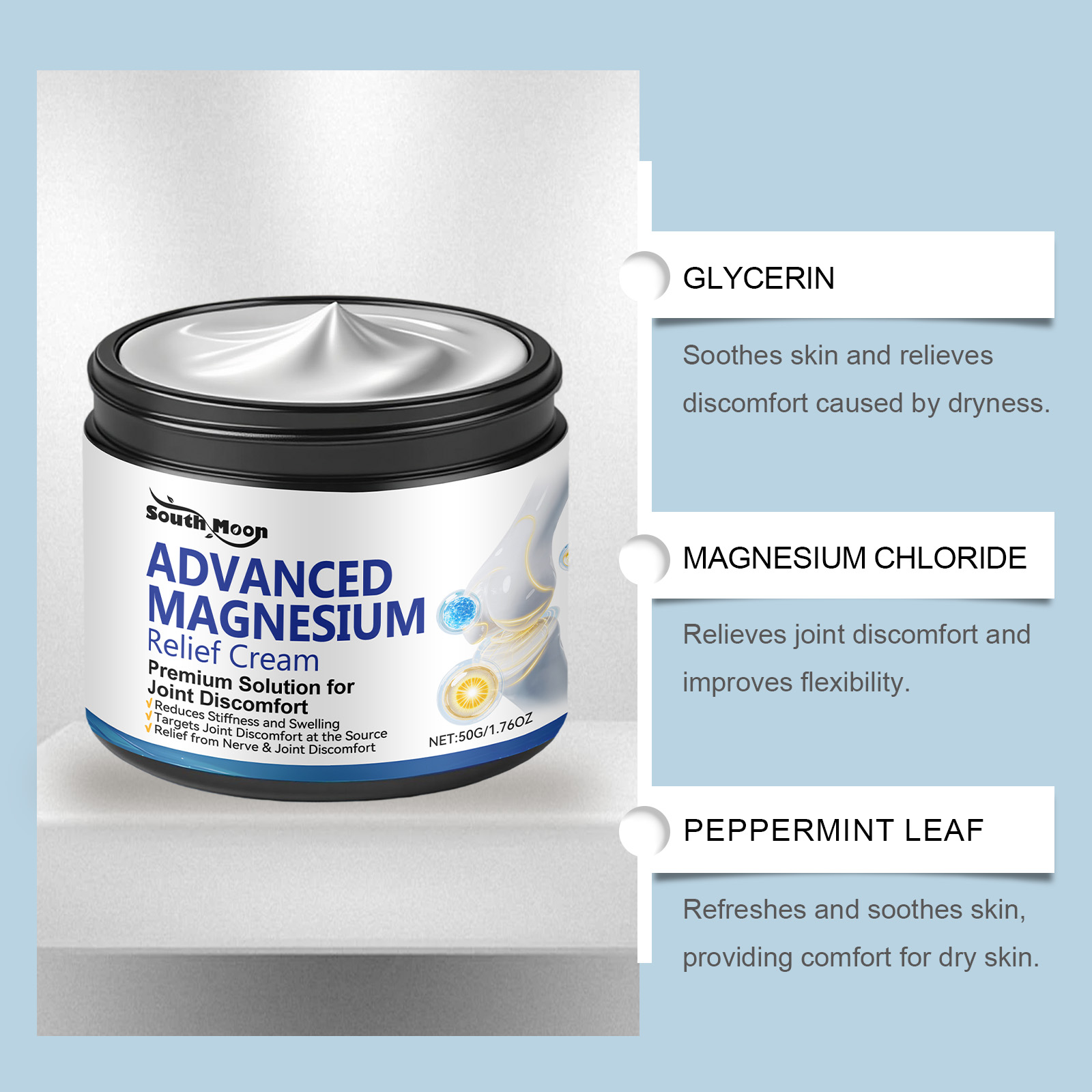 我们的关节舒适镁霜,由甘油、矿油、甘油硬脂酸酯精心调配而成。专为减少关节疼痛,缓解关节炎和骨骼疼痛设计。使用方法极为便捷:清洁肌肤并保持干燥,取适量本品均匀涂抹在关节处肌肤,轻柔按摩直至吸收。并且它可以减少关节肿胀,恢复运动能力,促进血液循环,提高关节灵活性。