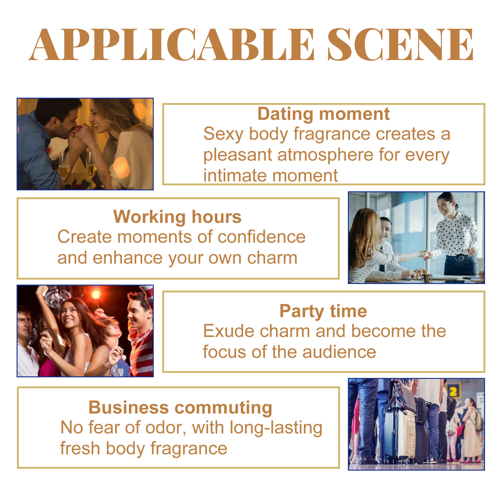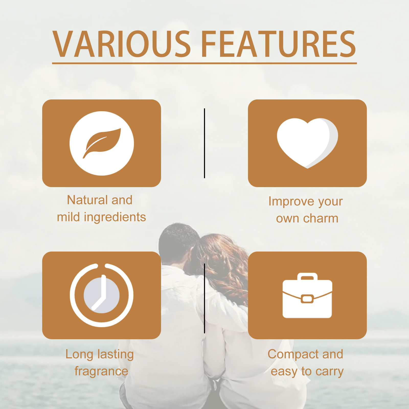 我们的香水含有丙二醇、柠檬果提取物。它可以帮助您吸引异性,增加您的浪漫,增加自信。它的使用方法很简单:取适量本品均匀喷于手腕、耳后、颈部等希望保持香味的部位,即可散发出迷人的香味。可以增强信心,便于展示你的魅力,味道持久留香。