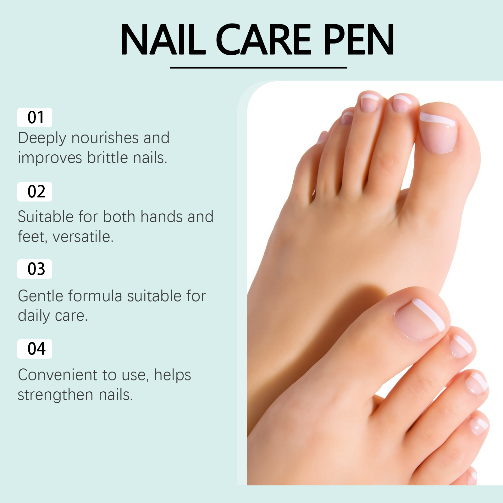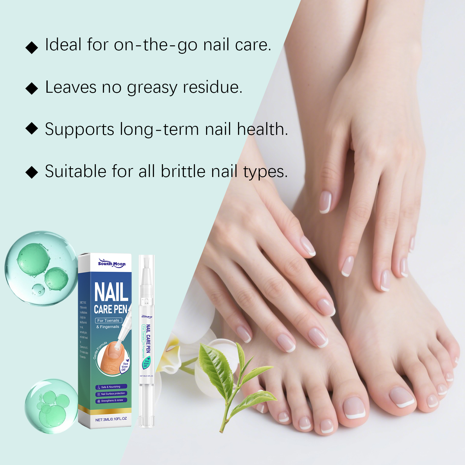 我们的指甲护理笔,由尿素、1,2-己二醇精心调配而成。专为指甲提供护理,深层滋养指甲,维持指甲健康状态设计。使用方法极为便捷:1. 清洗并擦干患处。2. 每日涂抹两次。涂抹于指甲、周围皮肤以及指甲尖下方。3. 停留 10 - 15 分钟,使其完全吸收。并且它可以帮助改善指甲不适,改善指甲表面,有助于恢复指甲光泽。