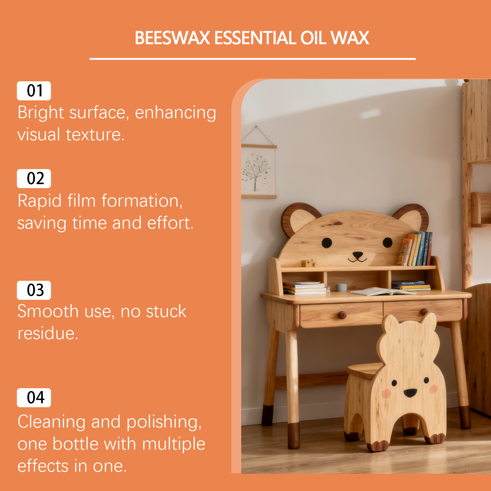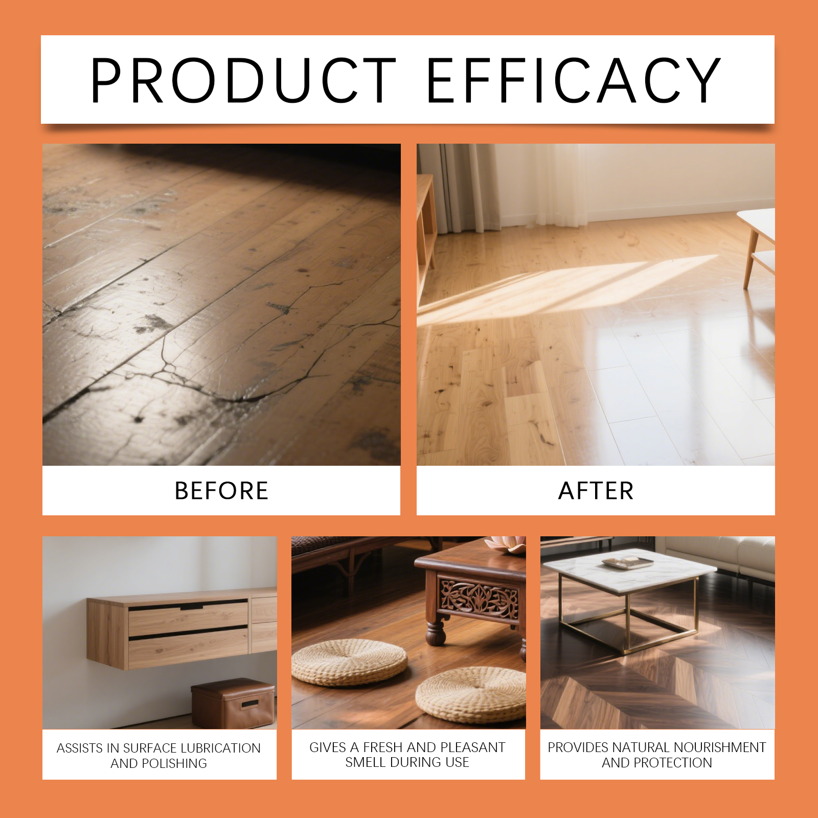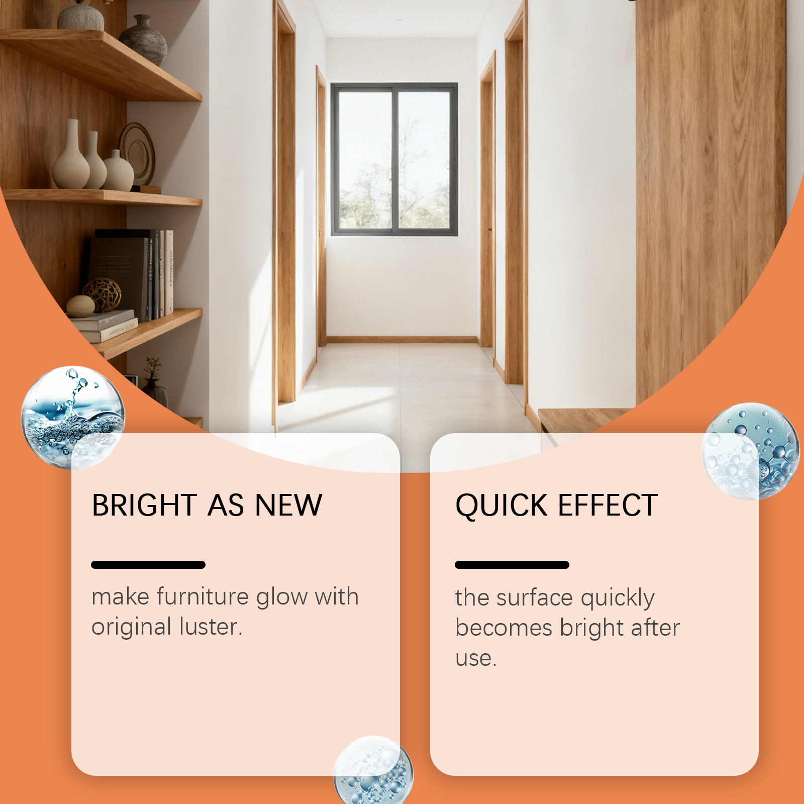 我们的木制家具抛光喷雾,由去离子水、异构醇聚氧乙烯醚精心调配而成。专为兼具多重功效,清洁同时抛光维护,让家具焕发持久光彩设计。使用方法极为便捷:1. 清洁家具表面。2. 将本品均匀喷洒在家具表面。3.沿着木纹方向,用海绵轻轻均匀打圈擦拭家具。4.静置3分钟充分反应,用毛巾抛光至透亮。并且它适用材质广泛,木材皮革不锈钢等皆能轻松应对,清洁无忧,一次喷洒操作,无缝实现清洁抛光维护,省时省力超高效。