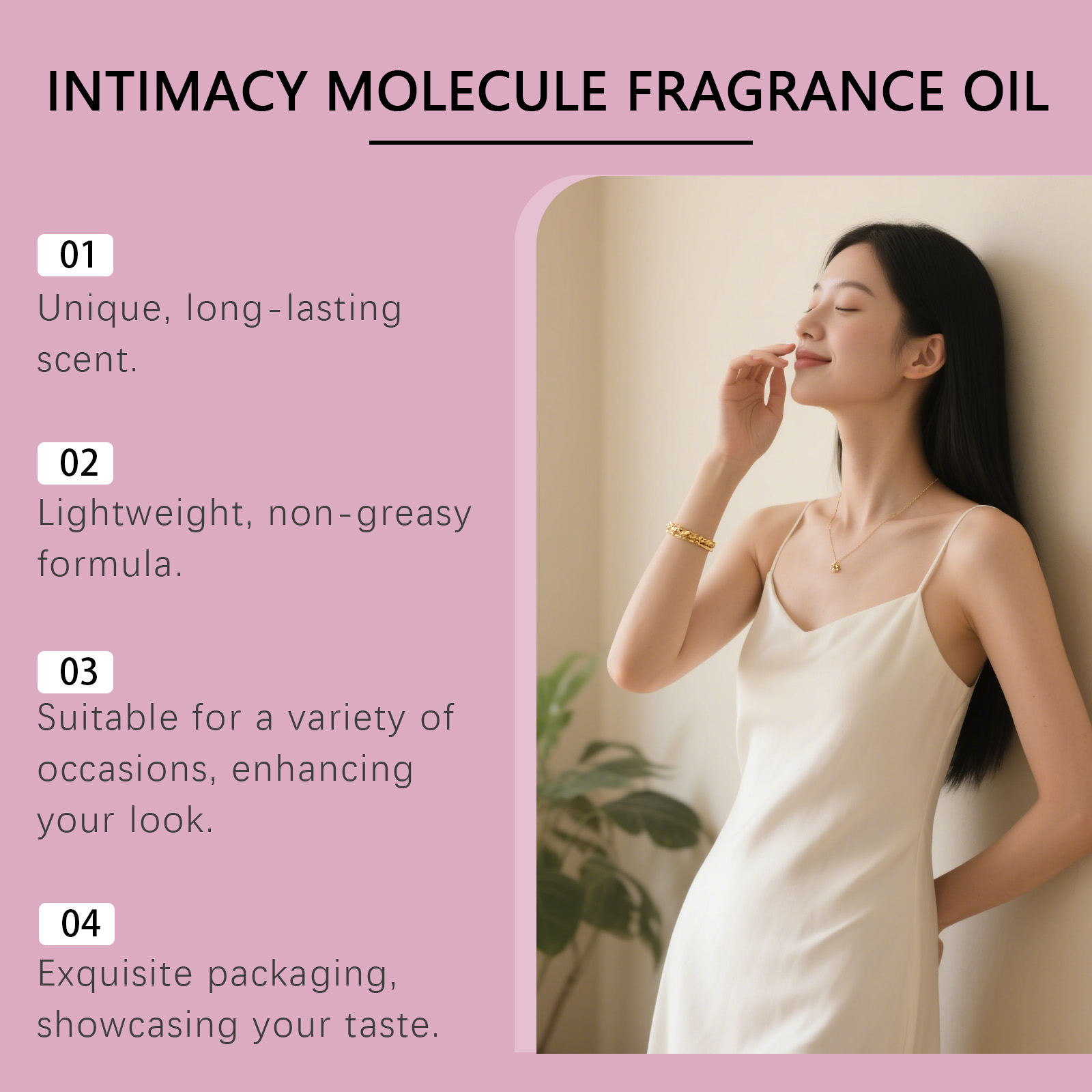 我们的女士香水,由甘油、PEG-40氢化蓖麻油精心调配而成。专为独特的香调营造出微妙的精致感,提升气场设计。使用方法极为便捷:彻底清洁皮肤并先擦干,轻轻滚动此产品并将其涂抹在手腕内侧、耳后颈部和其他身体皮肤上。并且它可以展现独特魅力,适合年轻活力女性,性感香气,提升女性魅力,适合各种场合。可以增添温暖甜香,舒缓情绪。带来浪漫花香,提升气质。散发清新幽香,令人愉悦。