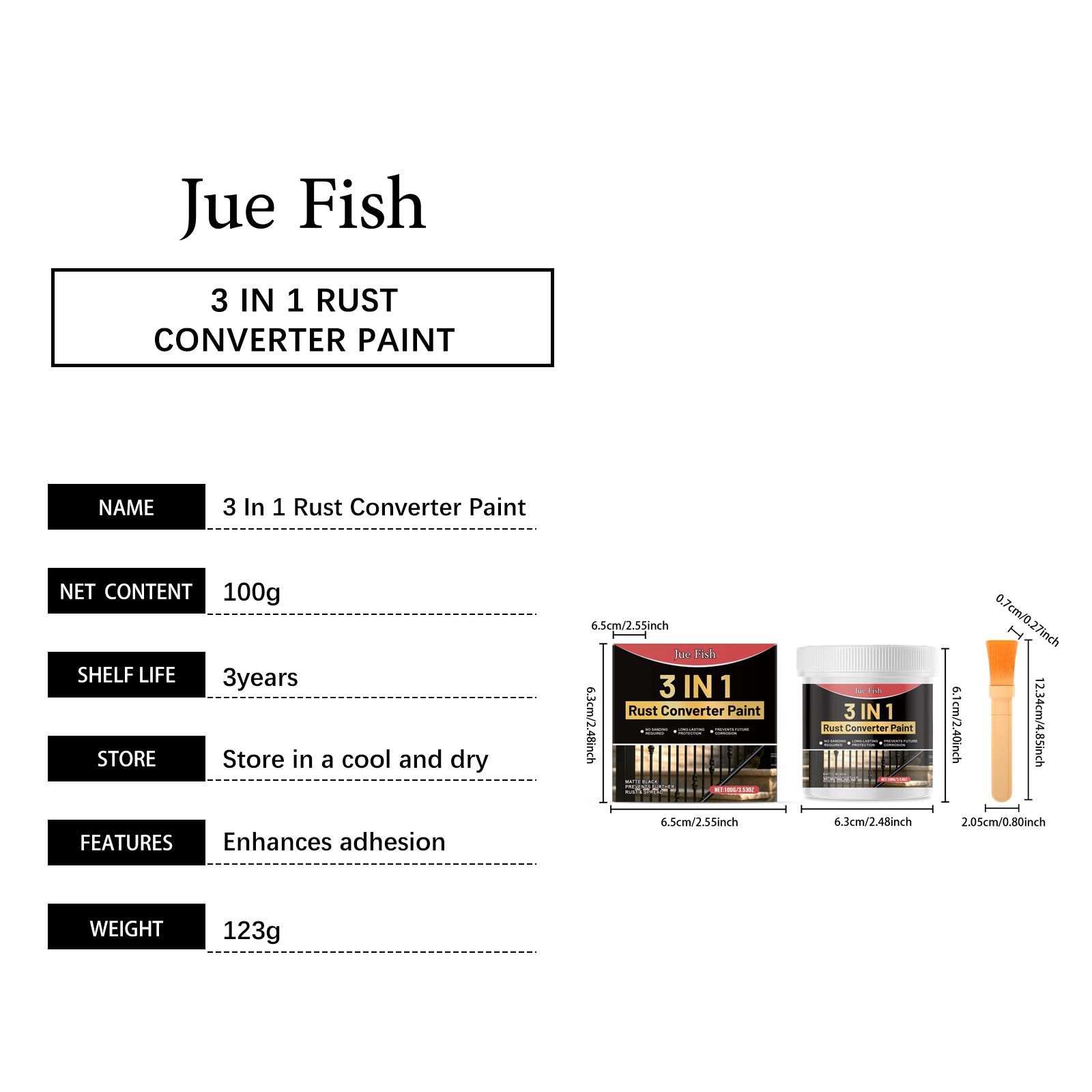 瓶子:6.3*6.1cm,刷子:2.05*0.7*12.34cm