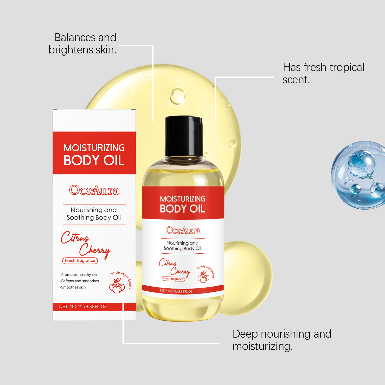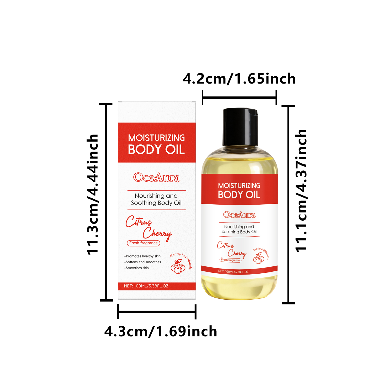 我们的滋润身体油(柑橘樱桃),由柑橘果提取物、樱桃提取物精心调配而成。专为深层滋养身体肌肤设计。使用方法极为便捷:1.清洁并擦干皮肤。2.将液体涂抹在皮肤上并按摩至吸收。并且可以锁住皮肤水分,适合所有肤质。