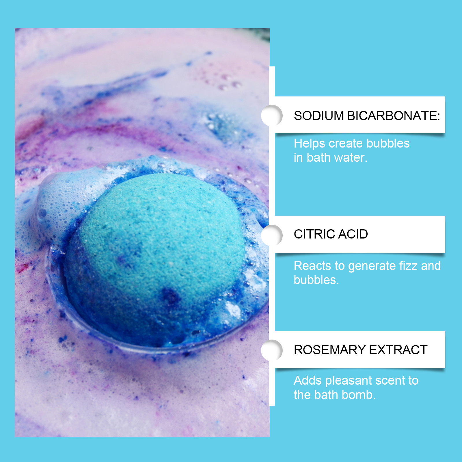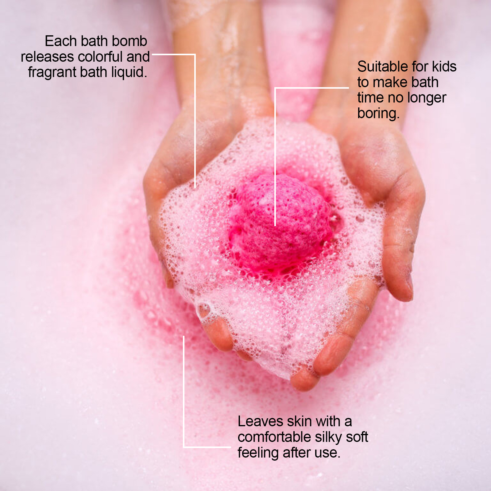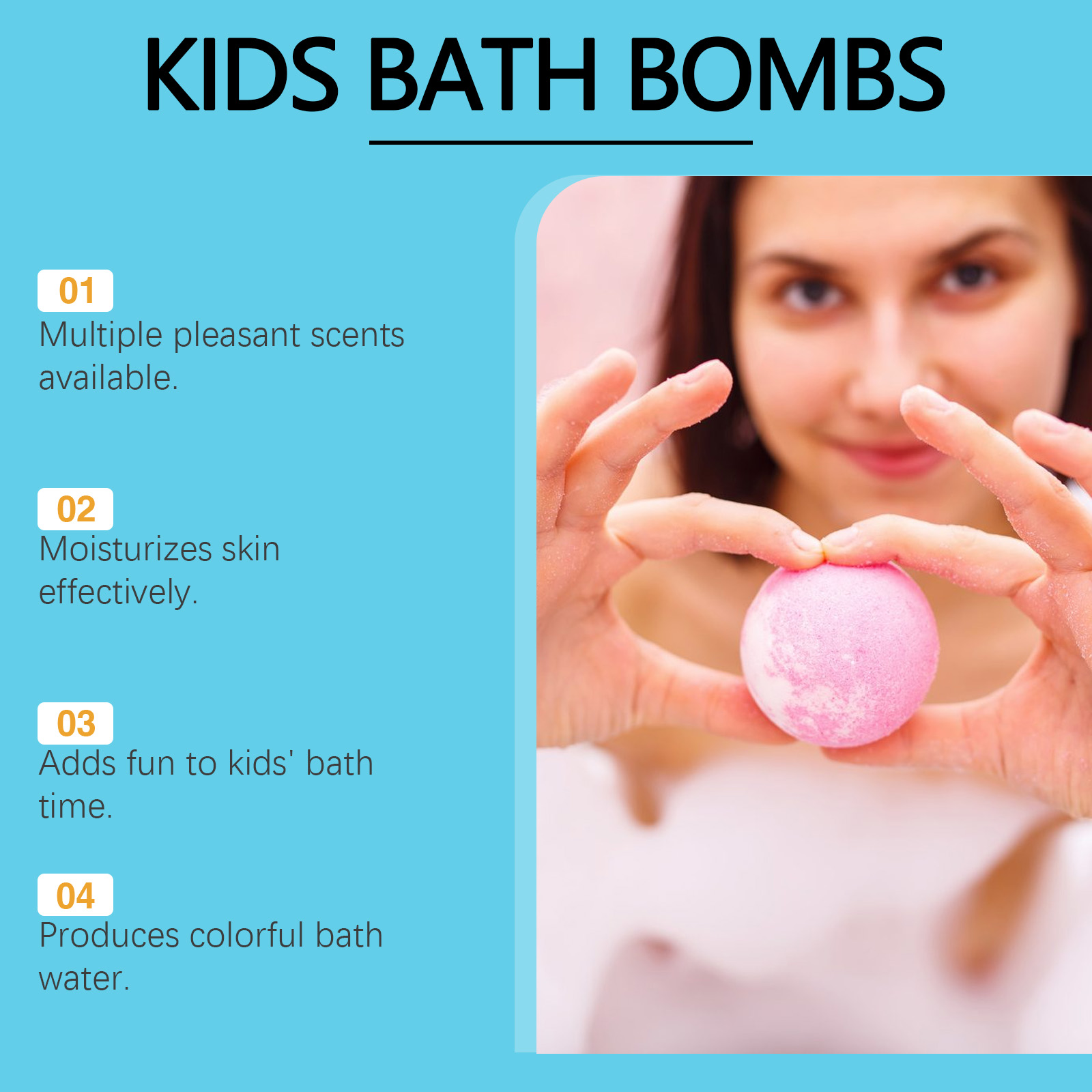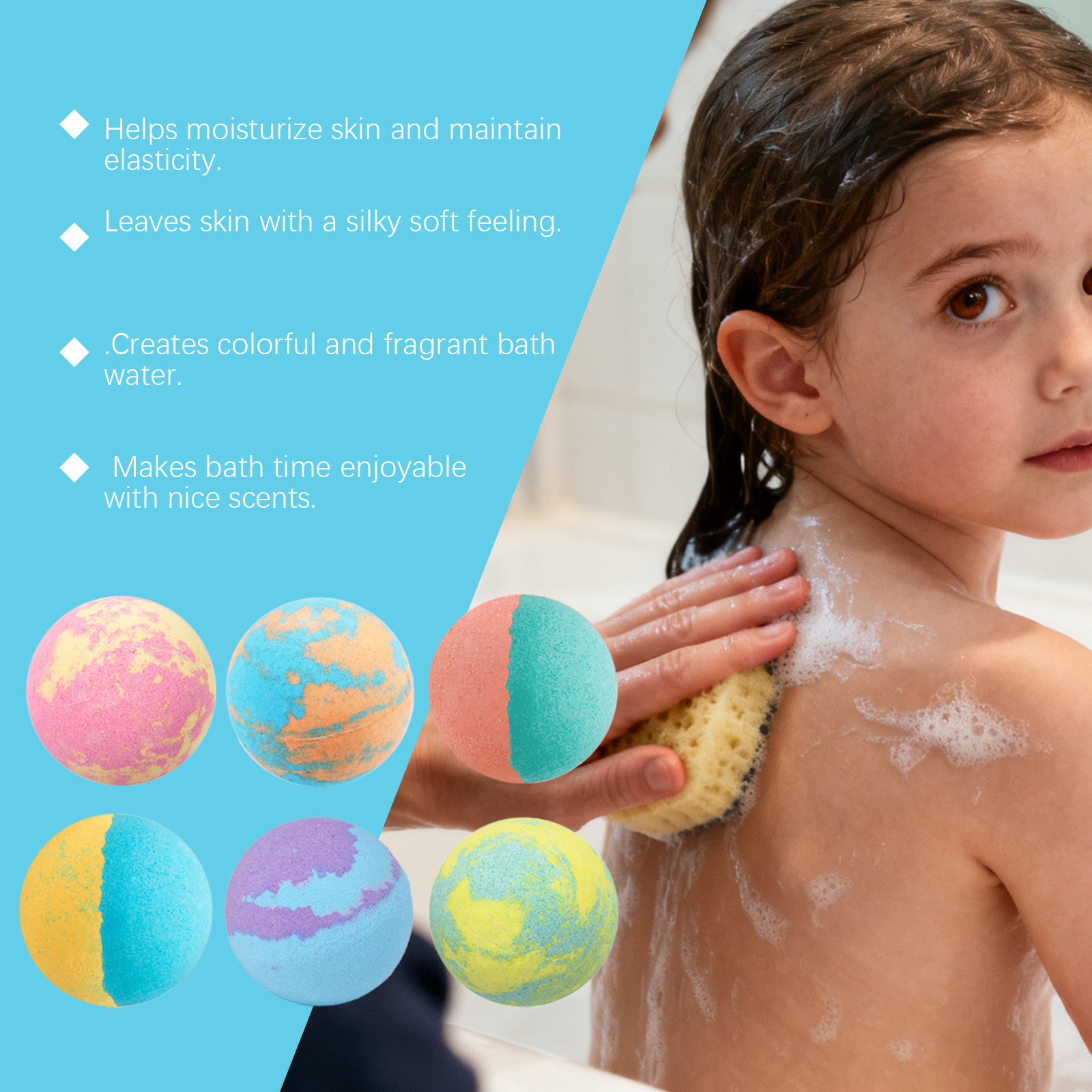 我们的儿童趣味泡泡沐浴球,由碳酸氢钠、柠檬酸精心调配而成。专为提亮肤色,令肌肤焕发光彩,展现健康透亮的肌肤,温和无刺激,让你在沐浴的同时享受舒缓和放松设计。使用方法极为便捷:1.将浴缸注满温水。2 .将一个沐浴球放入水中,等待它溶解。3 .享受20-30分钟的沐浴。并且它可以深层滋养肌肤,改善粗糙肌肤,令肌肤细腻光滑。
