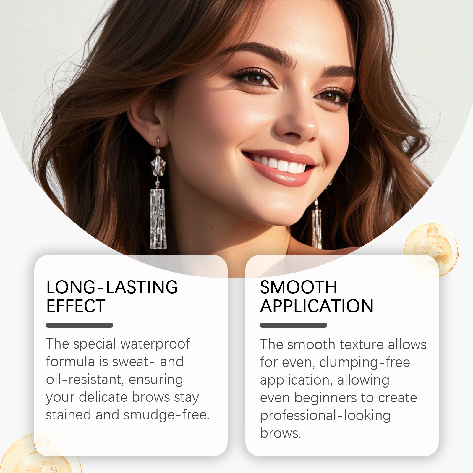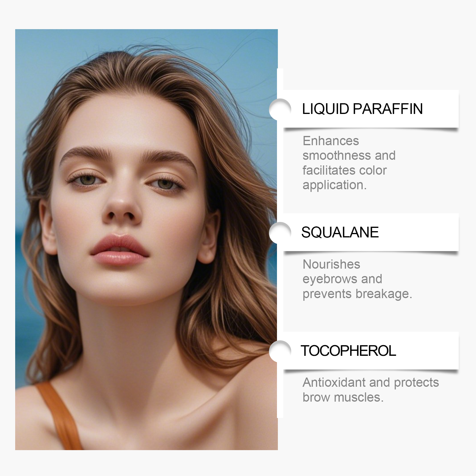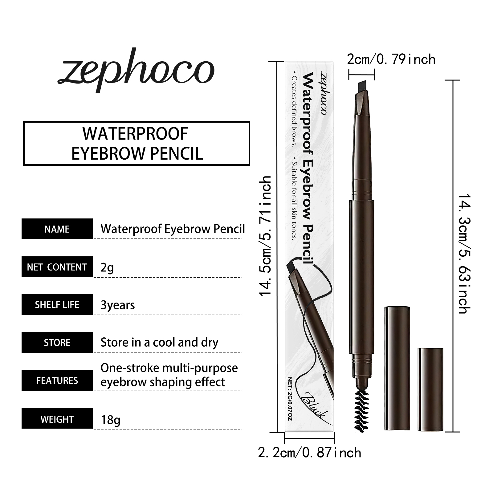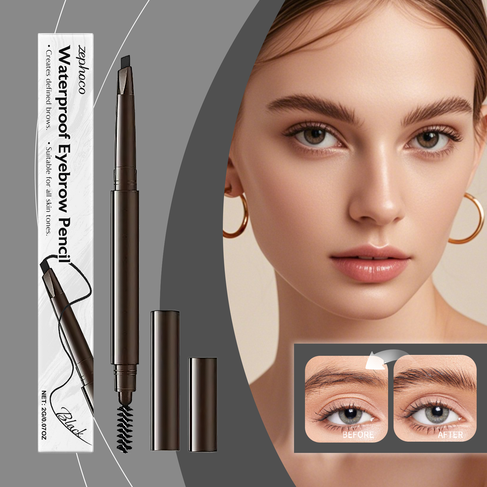 我们的黑色二合一防水眉笔,由液体石蜡、小烛树蜡精心调配而成。专为防水配方持久不脱妆,全天维持精致眉型效果,精准描绘,轻松打造根根分明的仿真眉毛设计。使用方法极为便捷:1.清洁眉毛肌肤并保持干燥。2.将本品沿着眉毛的边缘轻轻勾勒出眉形的轮廓,并填充出想要的眉毛效果,化出想要的眉毛造型即可。并且它不易晕染或褪色,适合各种肤质与气候条件,适配所有肤色,提升整体妆容精致感。