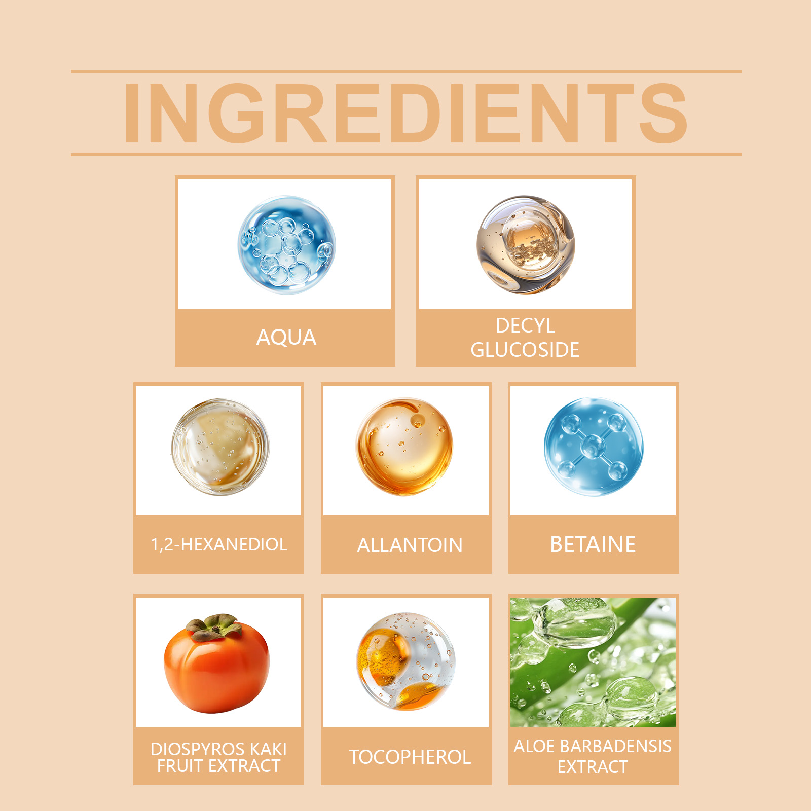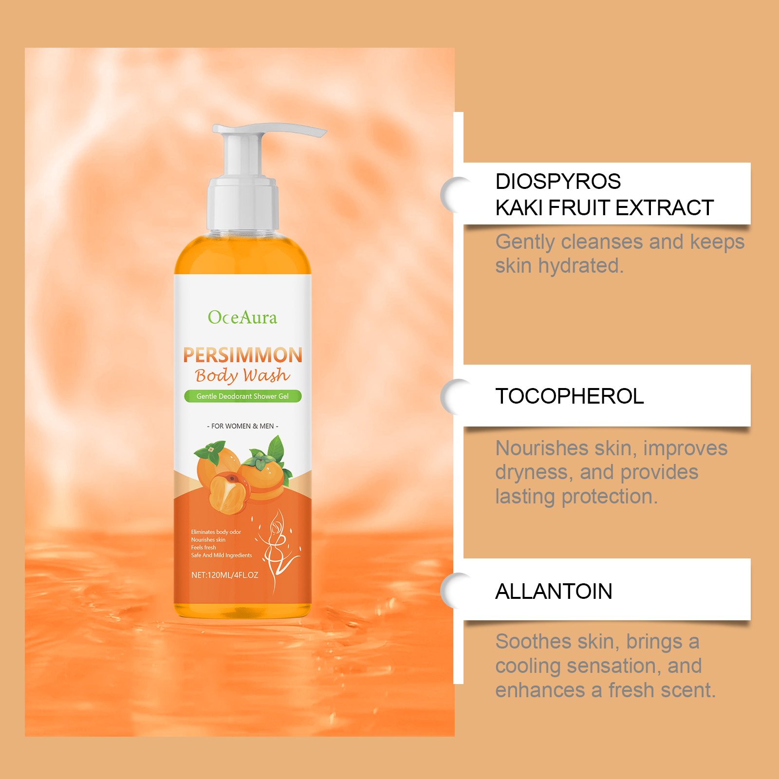 我们的柿子除臭沐浴露,由癸基葡糖苷、1,2-己二醇精心调配而成。专为温和保湿,保持肌肤光滑柔软,有效去除汗渍和异味,清爽不黏腻设计。使用方法极为便捷:用温水彻底湿润你的身体。取适量本品于掌心,揉搓起泡。将泡沫均匀涂抹于身体,并按摩2-3分钟。用温水冲洗掉。并且它可以有助于消除体味、脚臭及其他异味,让肌肤感受深层清洁的乐趣,全天保持清爽舒适。