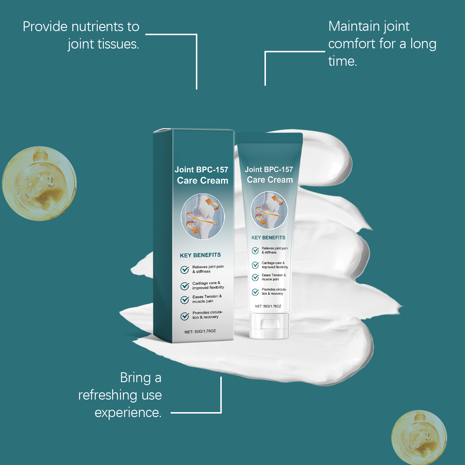我们的关节护理霜 ,由尿囊素、透明质酸精心调配而成。专为温和缓解关节不适设计。使用方法极为便捷:清洁并干燥皮肤,将适量本产品涂抹在受影响的关节上,并轻轻按摩直至吸收。并且可以帮助关节恢复灵活性。