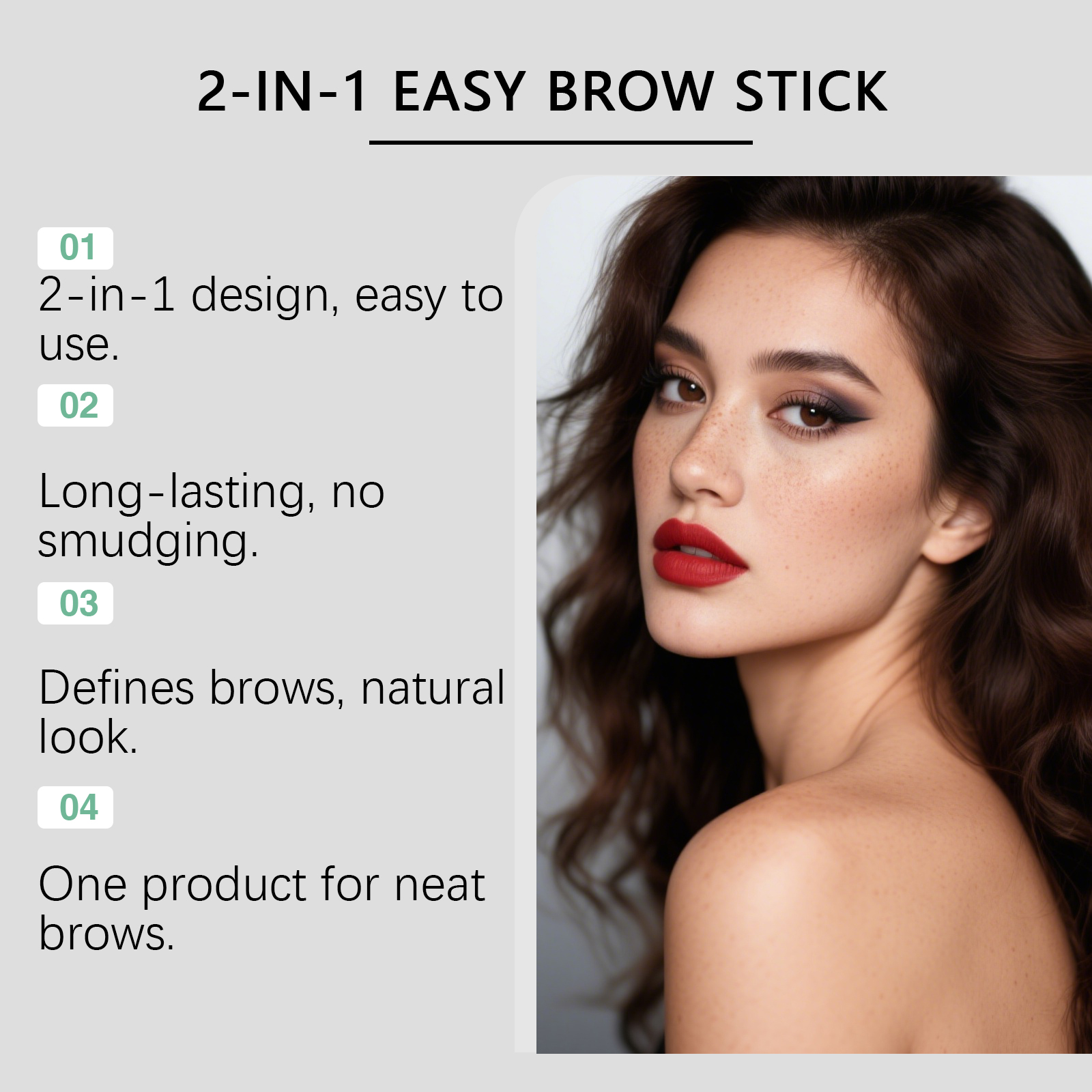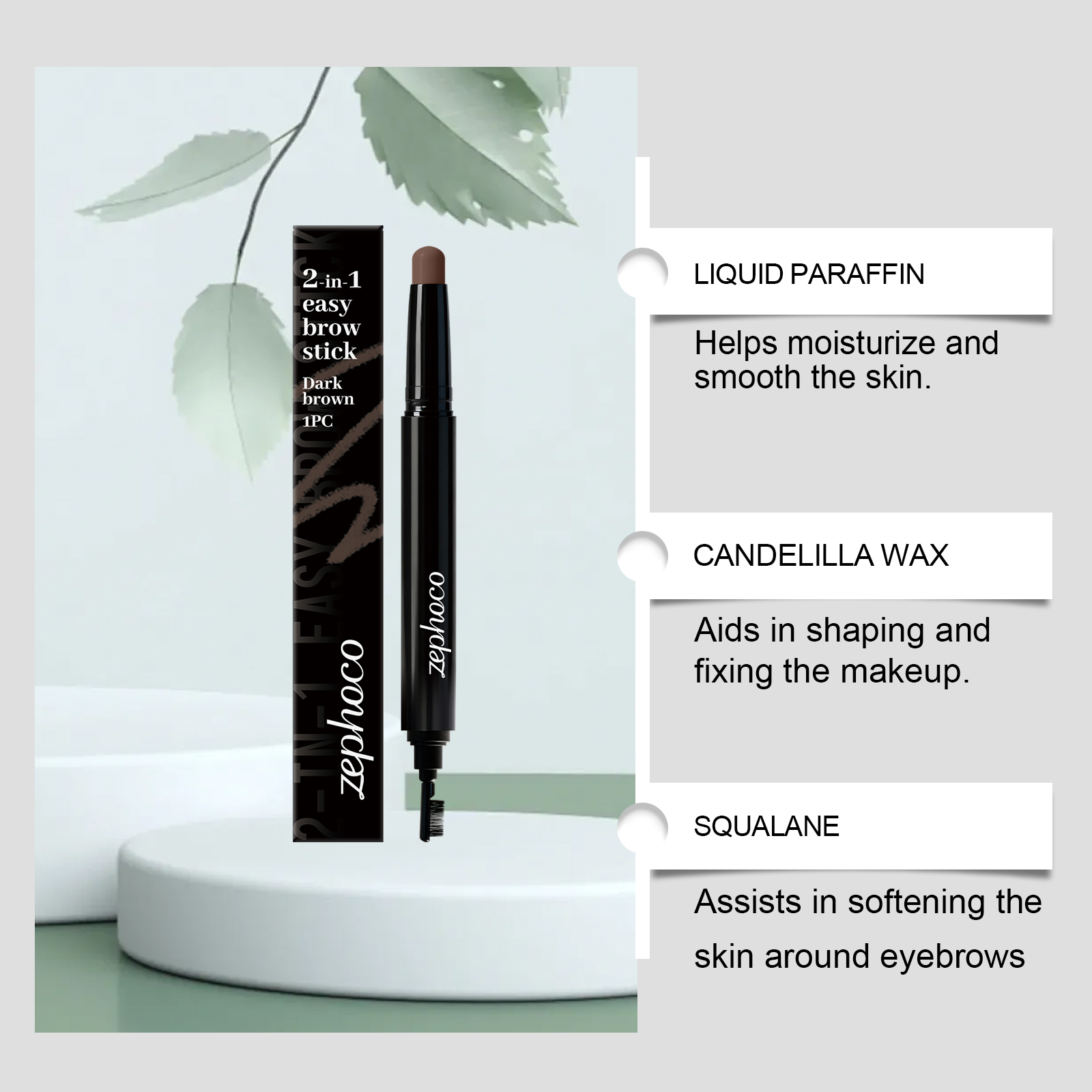 我们的二合一双头眉笔(深棕色),由生育酚(维生素E)、苯甲酸钠精心调配而成。专为打造自然且有定义的眉毛外观设计。使用方法极为便捷:用刷尖轻轻梳理眉毛。用铅笔尖轻轻勾勒眉毛并填补任何空隙。再次使用刷子尖梳理眉毛,进行混合和过渡,以达到自然的效果。并且易于涂抹并刷出理想的眉毛。