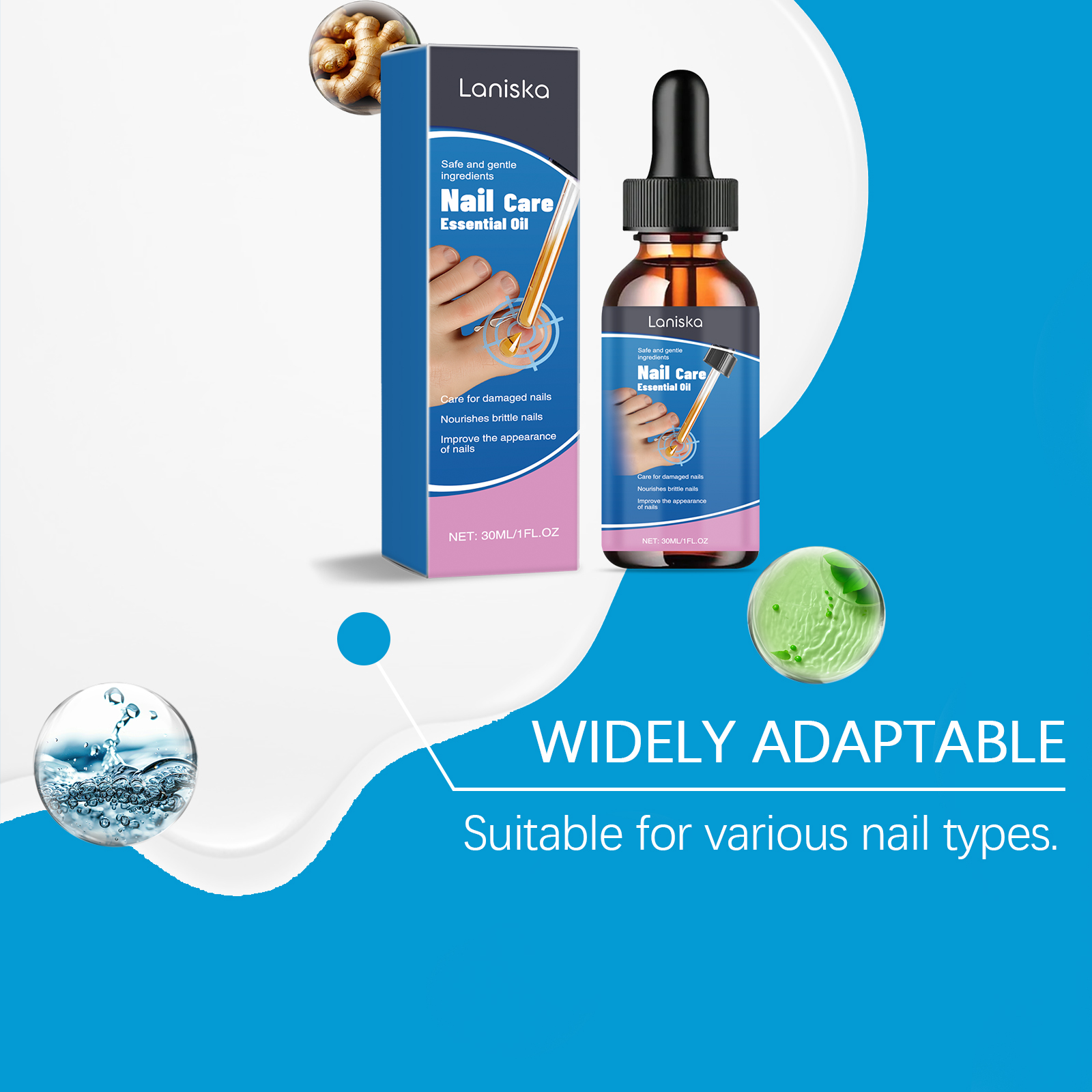 我们的指甲护理精华,由二硫化钠、甘油精心调配而成。专为平衡指甲的水分水平设计。使用方法极为便捷:清洁指甲并保持干燥。取适量本产品均匀涂抹在指甲受影响区域,并轻轻按摩至吸收。并且可以改善整体指甲质量。