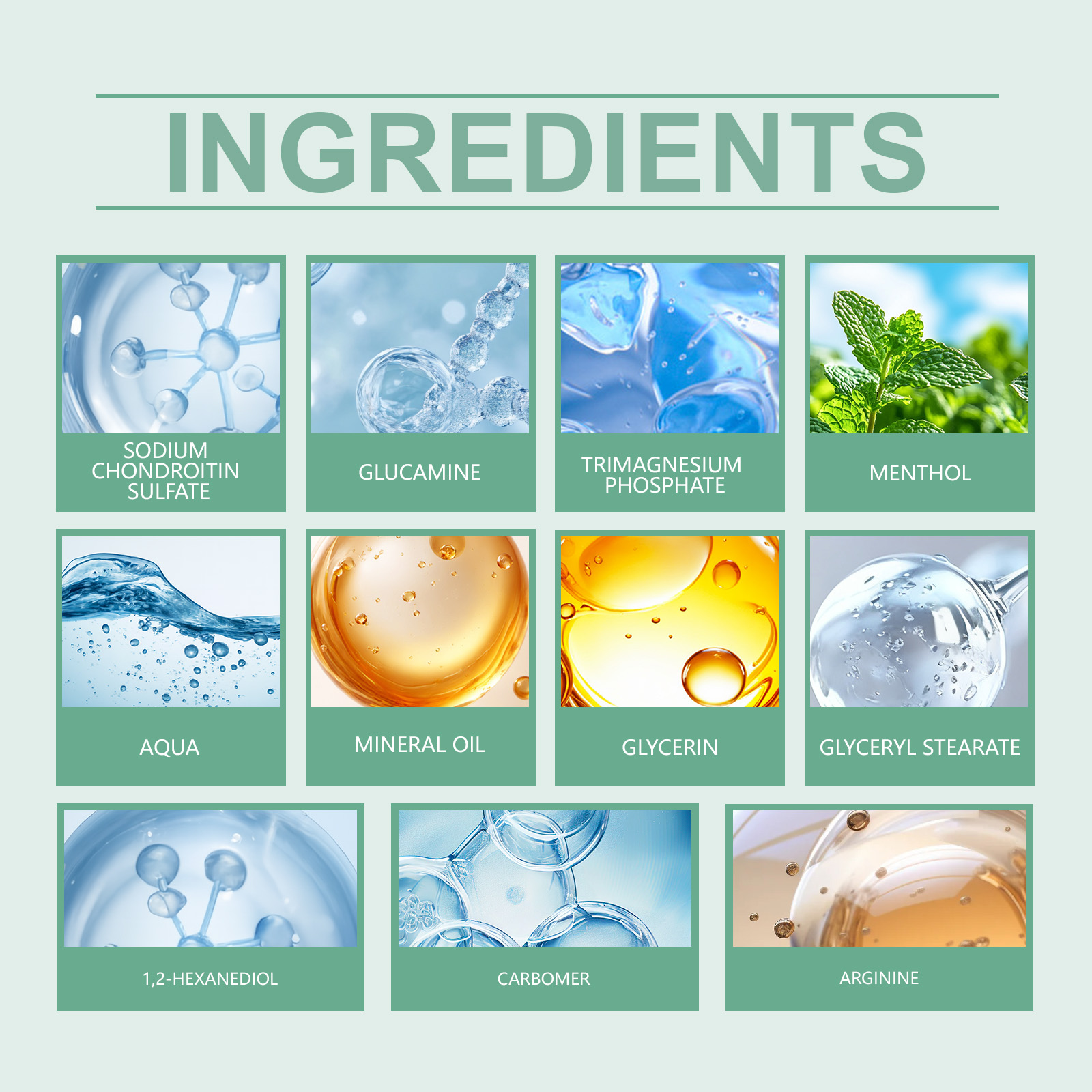我们的关节护理霜,由磷酸三镁、薄荷醇精心调配而成。专为有效缓解关节不适设计。使用方法极为便捷:1.清洁并擦干皮肤。2.将适量药膏均匀涂抹于关节周围的皮肤,并用指尖轻轻按摩,以促进吸收。并且涂抹后迅速吸收。
