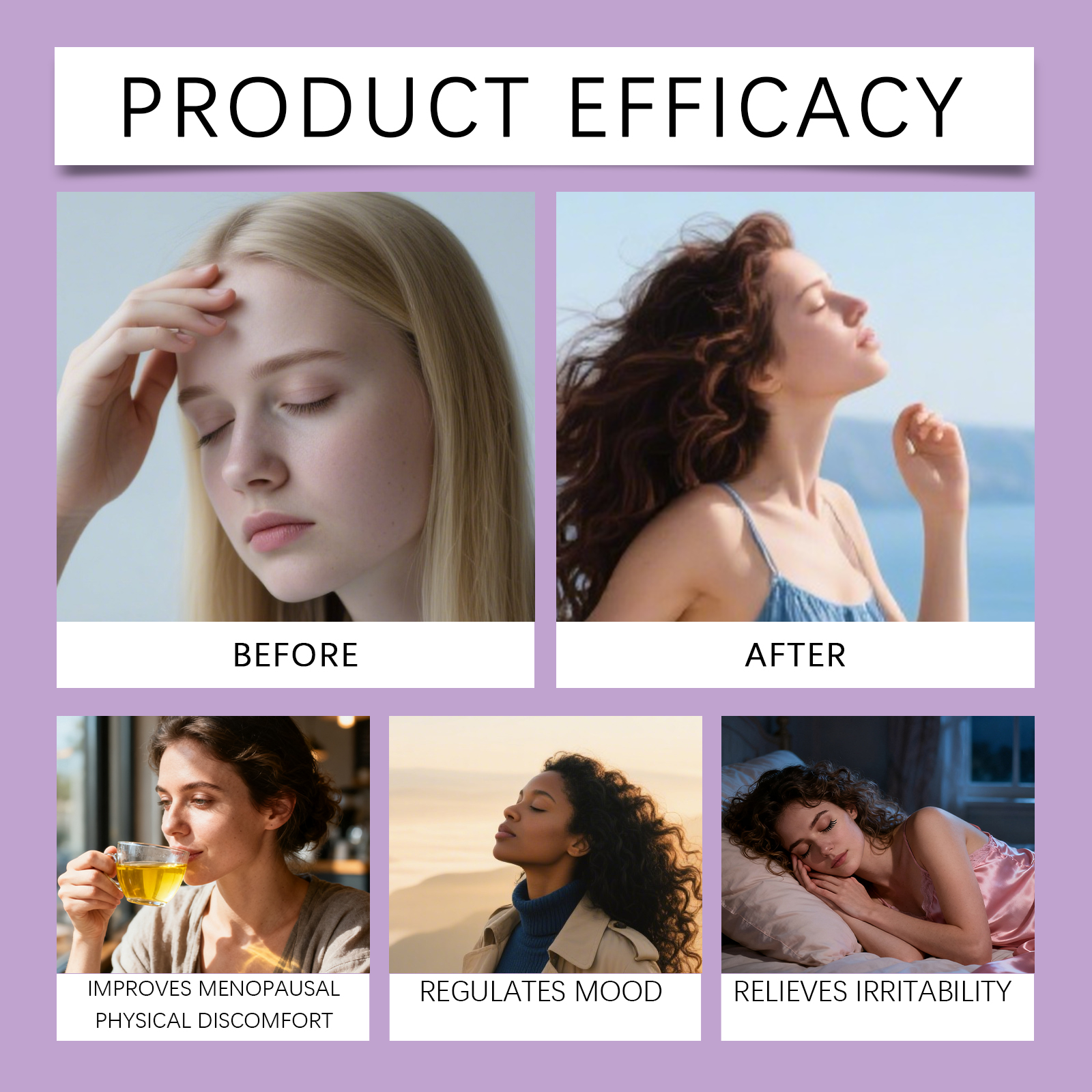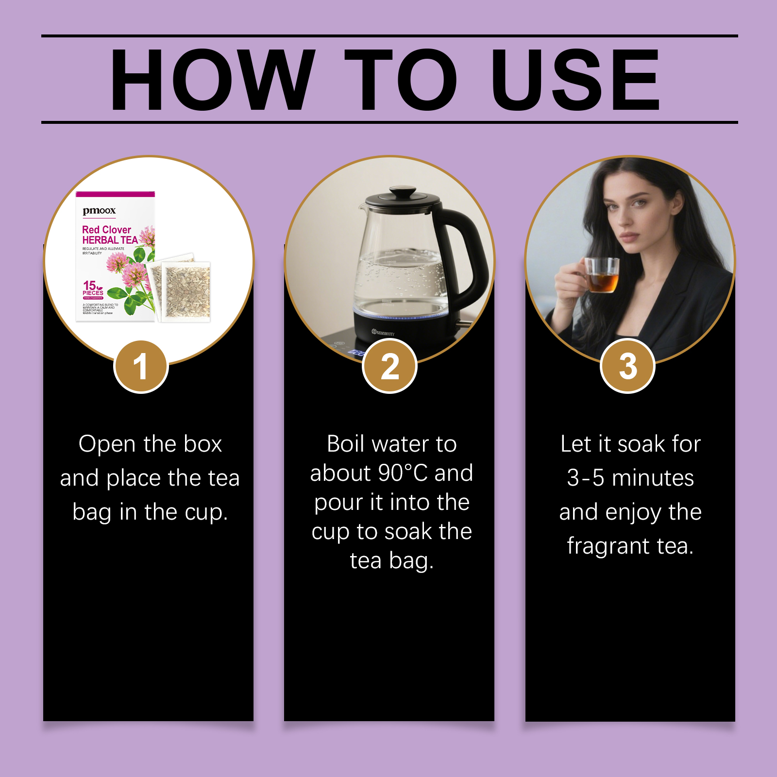 我们的红三叶草本茶,由红三叶草精心调配而成。专为稳定情绪并减少波动设计。使用方法极为便捷:打开盒子,将茶包放入杯中,将水煮至约90℃,倒入杯中浸泡茶包,浸泡3-5分钟,然后享用芳香的茶。并且可以缓解更年期期间的易怒情绪。