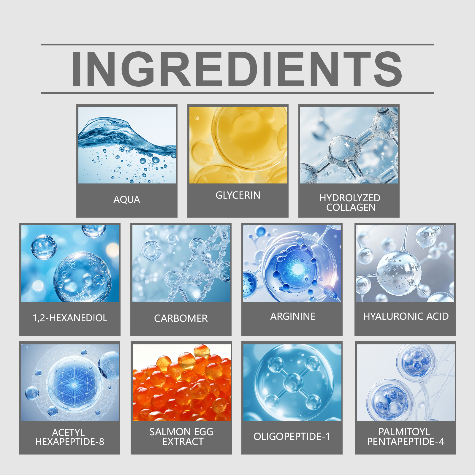 我们的保湿精华液,由精氨酸、透明质酸精心调配而成。专为提供持久保湿设计。使用方法极为便捷:1.清洁并擦干面部。2.将产品均匀涂抹在脸上。3.轻柔按摩至吸收。并且可以支持皮肤紧致,使皮肤感觉柔软和有弹性。