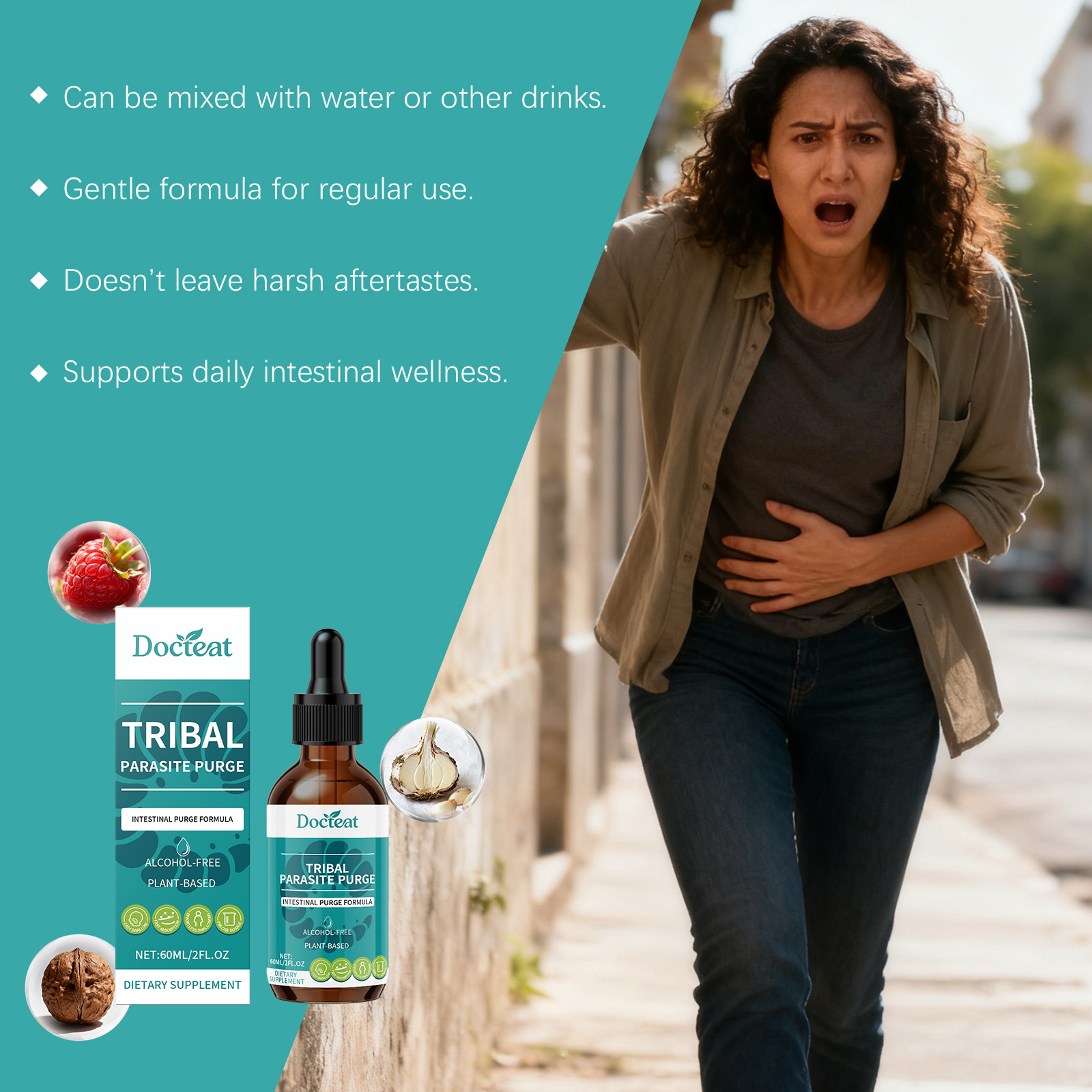 我们的肠道支持滴剂,由蔓越莓果、大蒜、黑胡桃壳精心调配而成。专为抑制有害细菌的附着并维持肠道菌群平衡设计。使用方法极为便捷:每天服用1毫升,可以直接服用或与其他食物混合。并且可以促进免疫韧性。