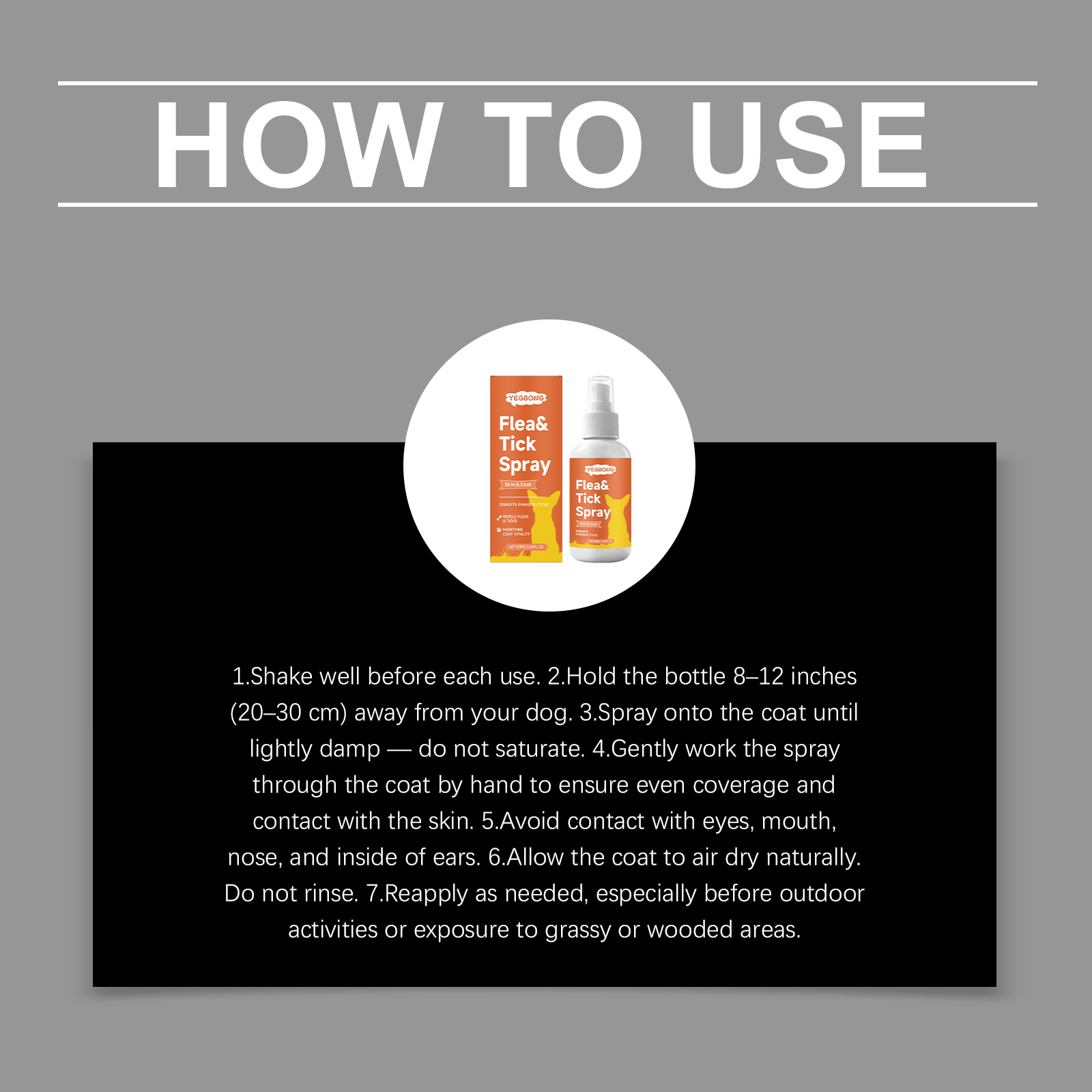 我们的狗狗皮肤护理喷雾,由1,2-己二醇、生姜根油精心调配而成。专为驱赶跳蚤设计。使用方法极为便捷:1.每次使用前请摇匀。2.将瓶子与你的狗保持8-12英寸(20-30厘米)的距离。3.向狗毛上喷洒,直到轻微湿润,不要过度湿润。4.轻轻用手将喷雾均匀涂抹于狗毛上,确保覆盖均匀并与皮肤接触。5.避免接触眼睛、嘴巴、鼻子以及耳朵内部。6.让狗毛自然风干。无需冲洗。7.根据需要重新使用,特别是在户外活动或接触草地或树林区域之前。并且有助于驱赶蜱虫。