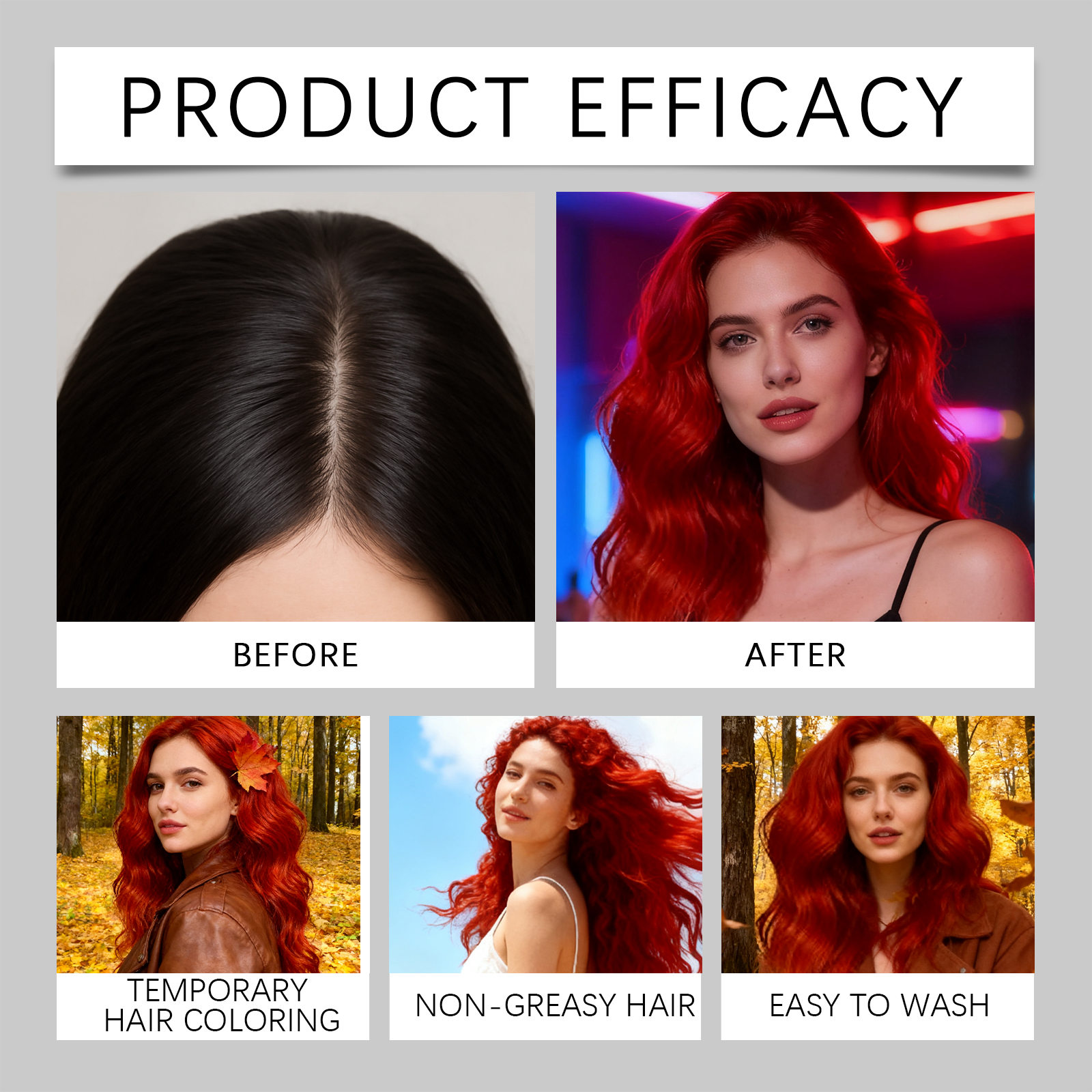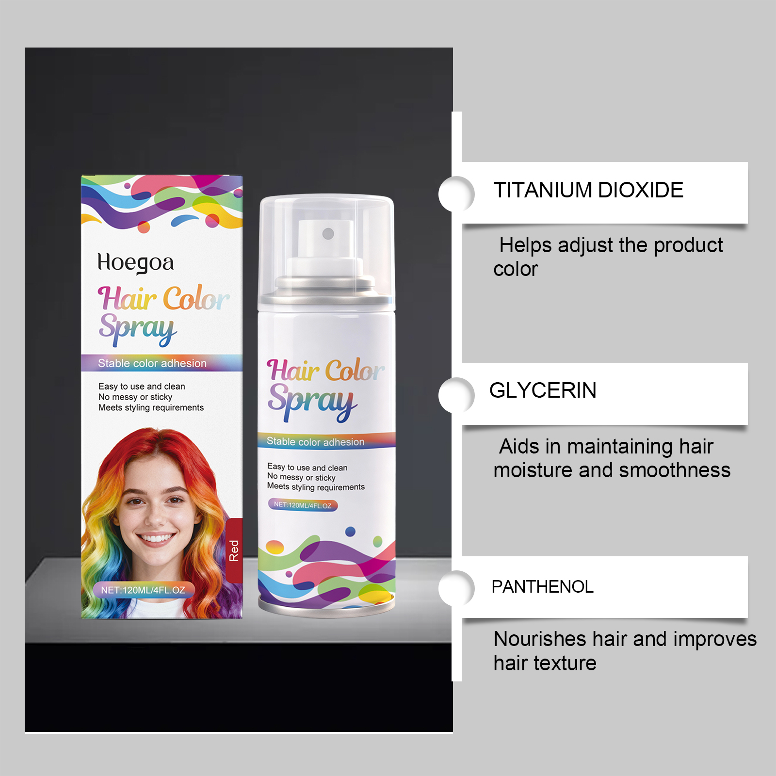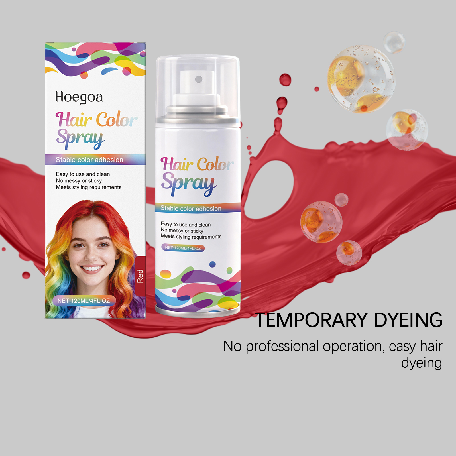 我们的红色临时美发喷雾,由红21、甘油精心调配而成。专为多种颜色可选,适应不同场景设计。使用方法极为便捷:只需将喷雾均匀地喷洒到头发上即可。用洗发水可以轻松洗掉颜色。并且它使用后头发依然不粘腻且顺滑,可用温水清洗,方便更换发型。