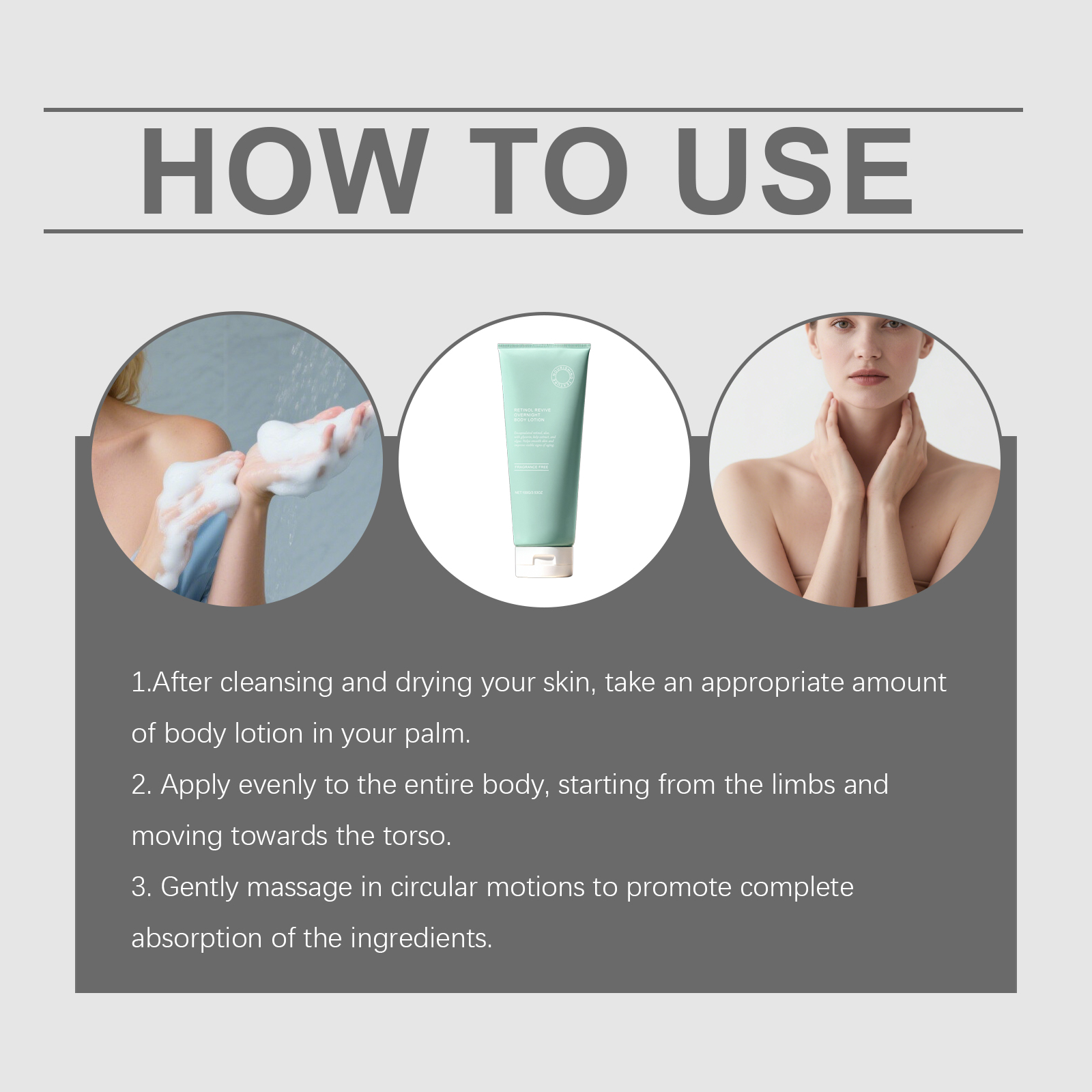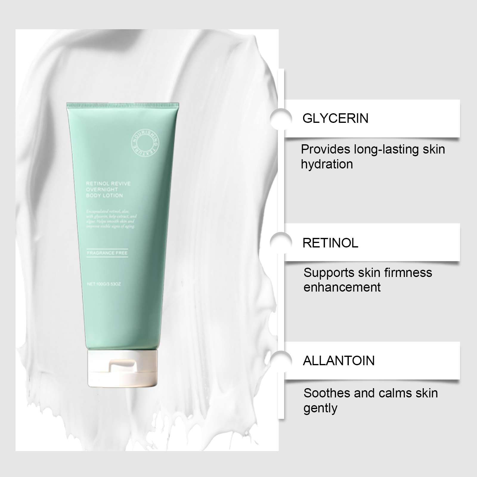 我们的夜间保湿身体乳,由尿囊素、视黄醇精心调配而成。专为深层滋润肌肤设计。使用方法极为便捷:1.清洁并擦干皮肤后,取适量身体乳于掌心。2.均匀涂抹于全身,从四肢开始向躯干方向涂抹。3.以打圈方式轻柔按摩,以促进成分充分吸收。并且可以提升紧致度和弹性。