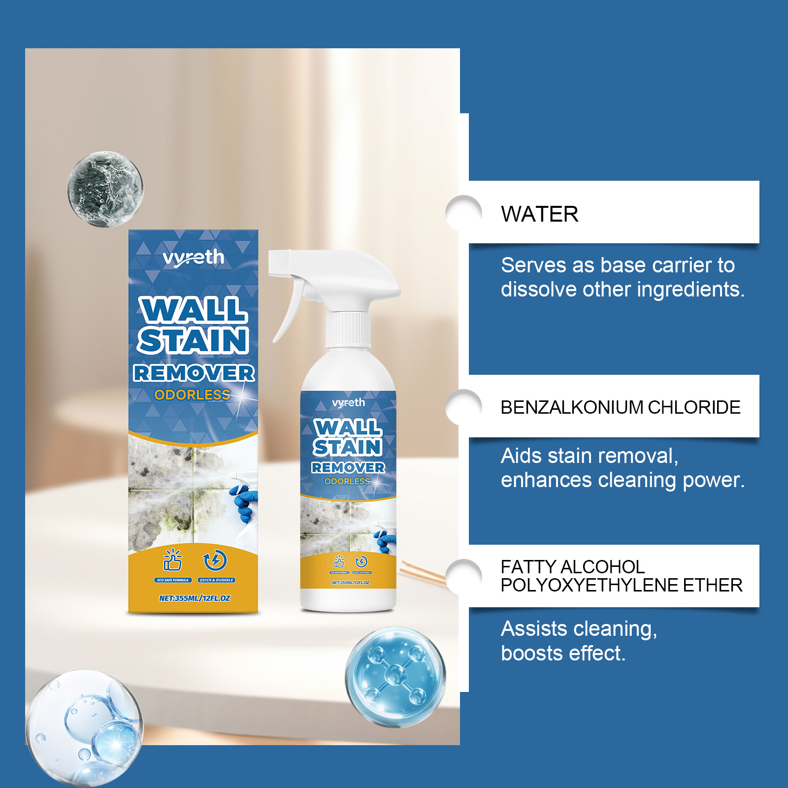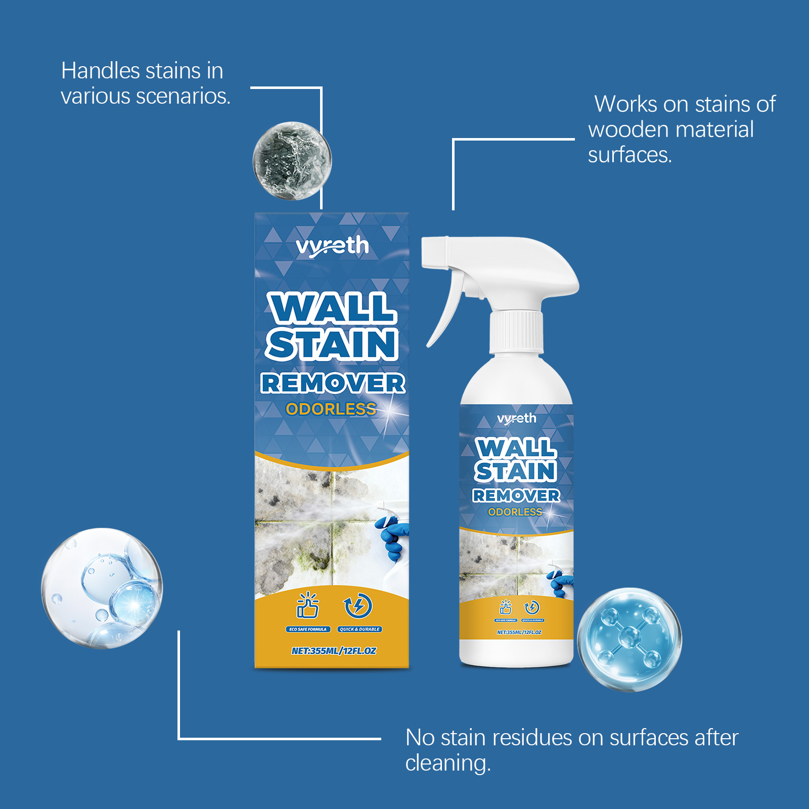 我们的墙面污渍清洁剂,由苯扎氯铵、脂肪醇聚氧乙烯醚精心调配而成。专为适用于浴室瓷砖、织物及其他材料,无需用力擦洗,操作简单设计。使用方法极为便捷:充分摇匀喷雾瓶并瞄准污渍,在距离10-15厘米处喷洒,静置数分钟后,用布擦拭干净,对于顽固污渍重复操作。并且它可以有效去除顽固污渍。