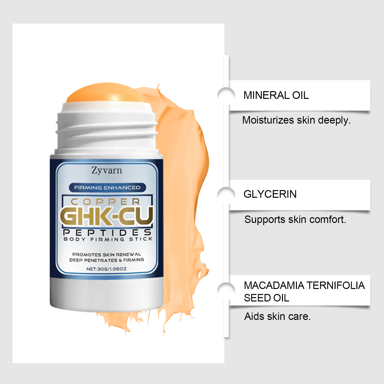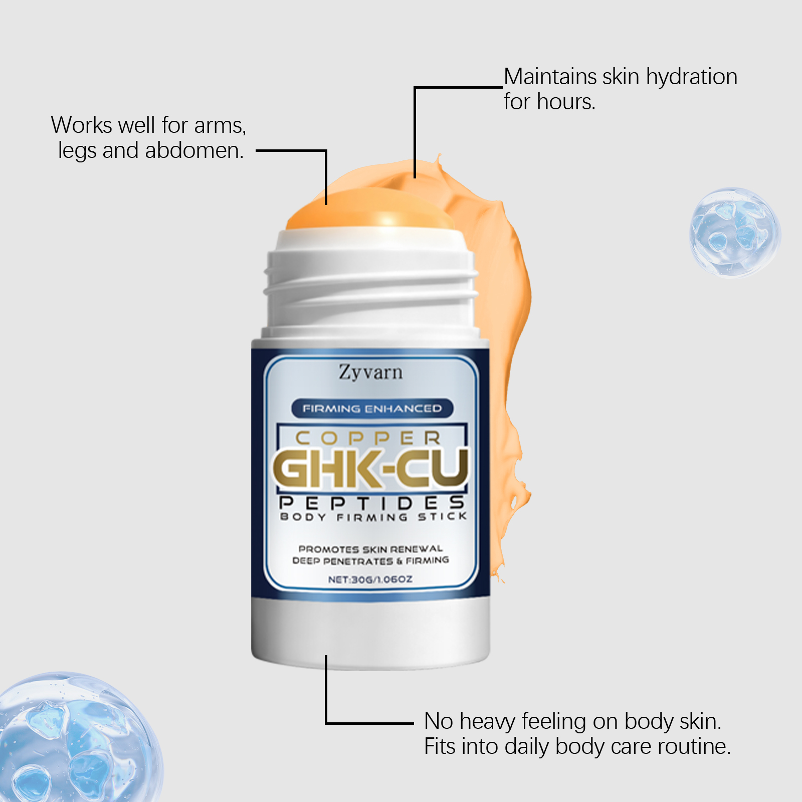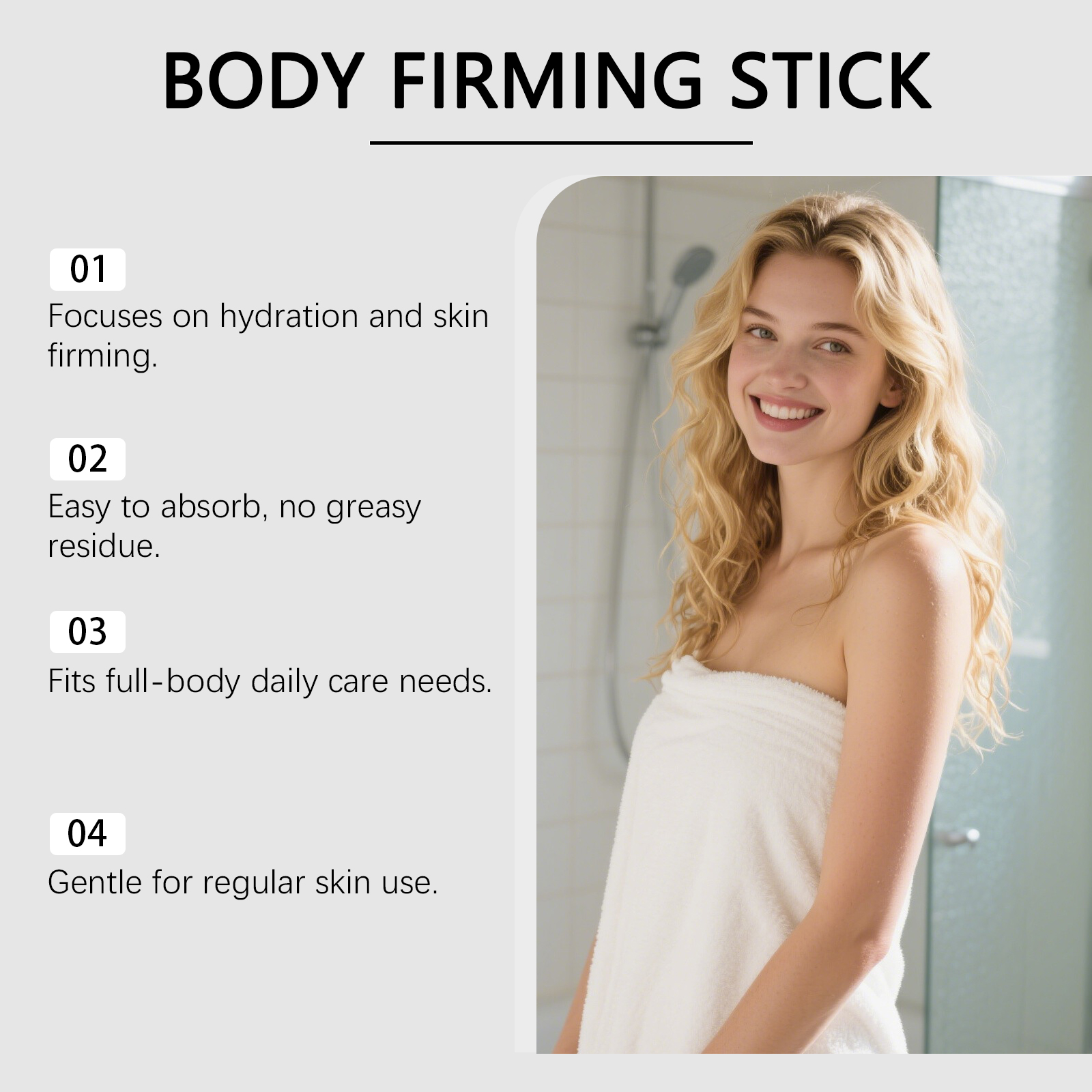 我们的身体护理棒,由矿油、甘油精心调配而成。专为提供持久保湿,有助于提升身体肌肤紧致度。可作为沐浴后护理步骤的补充设计。使用方法极为便捷:1. 请确保您要护理的区域清洁干燥。2.将紧致棒均匀涂抹于需要护理的肌肤部位。3.轻柔按摩直至吸收。并且它可以适用于所有身体部位,有助于改善皮肤的整体质地。