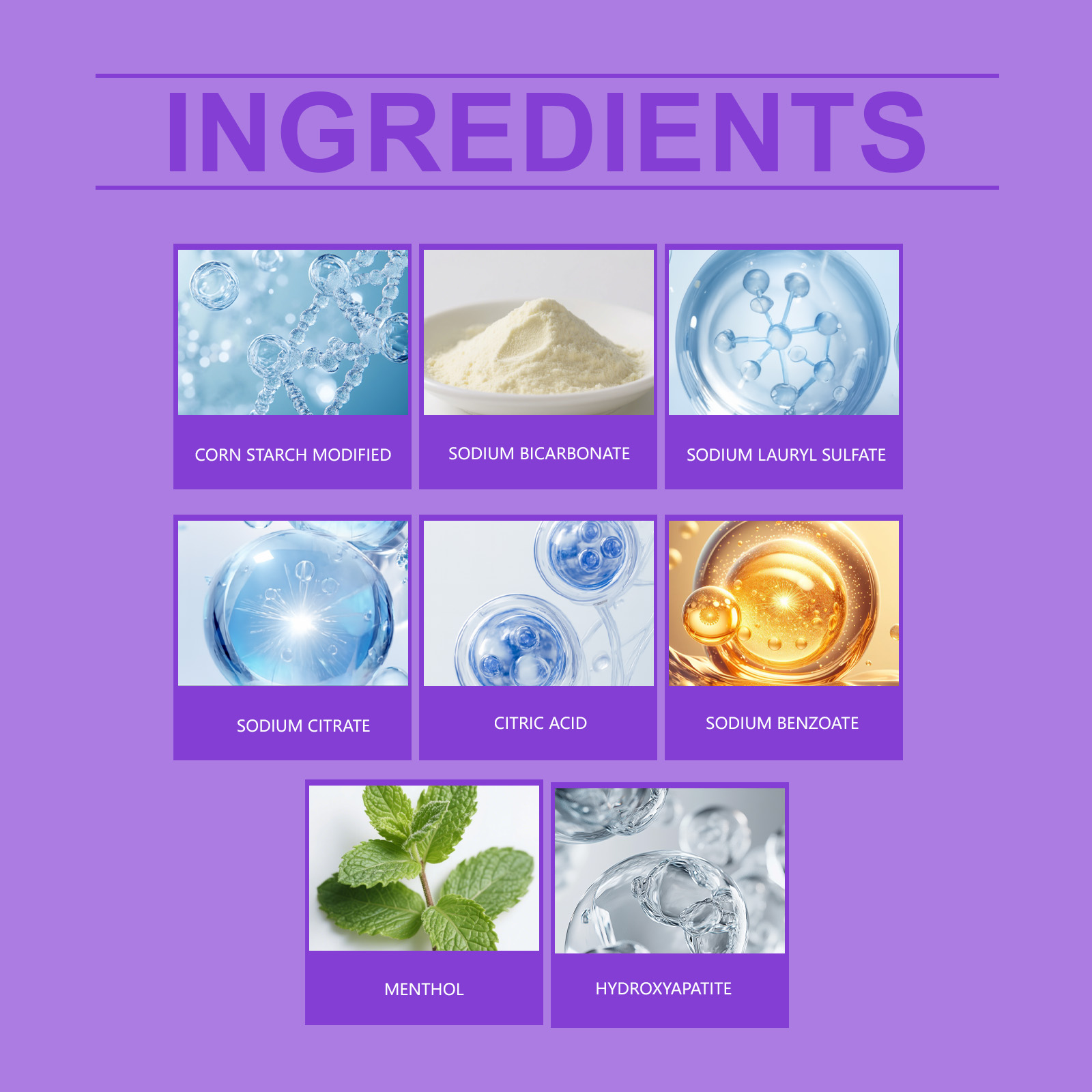 我们的亮泽护理牙粉,由改性玉米淀粉、碳酸氢钠精心调配而成。专为帮助清洁牙齿表面污渍,辅助维持牙齿洁净状态设计。使用方法极为便捷:1.先用清水口,湿润牙齿。2.取适量牙粉放在湿润的牙刷上,刷牙 2-3 分钟。 3.再用清水漱口至干净即可。并且它可以使用后口腔感觉清新,粉末质地易于溶解使用。