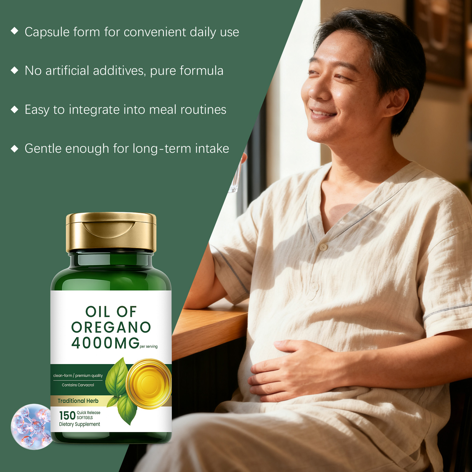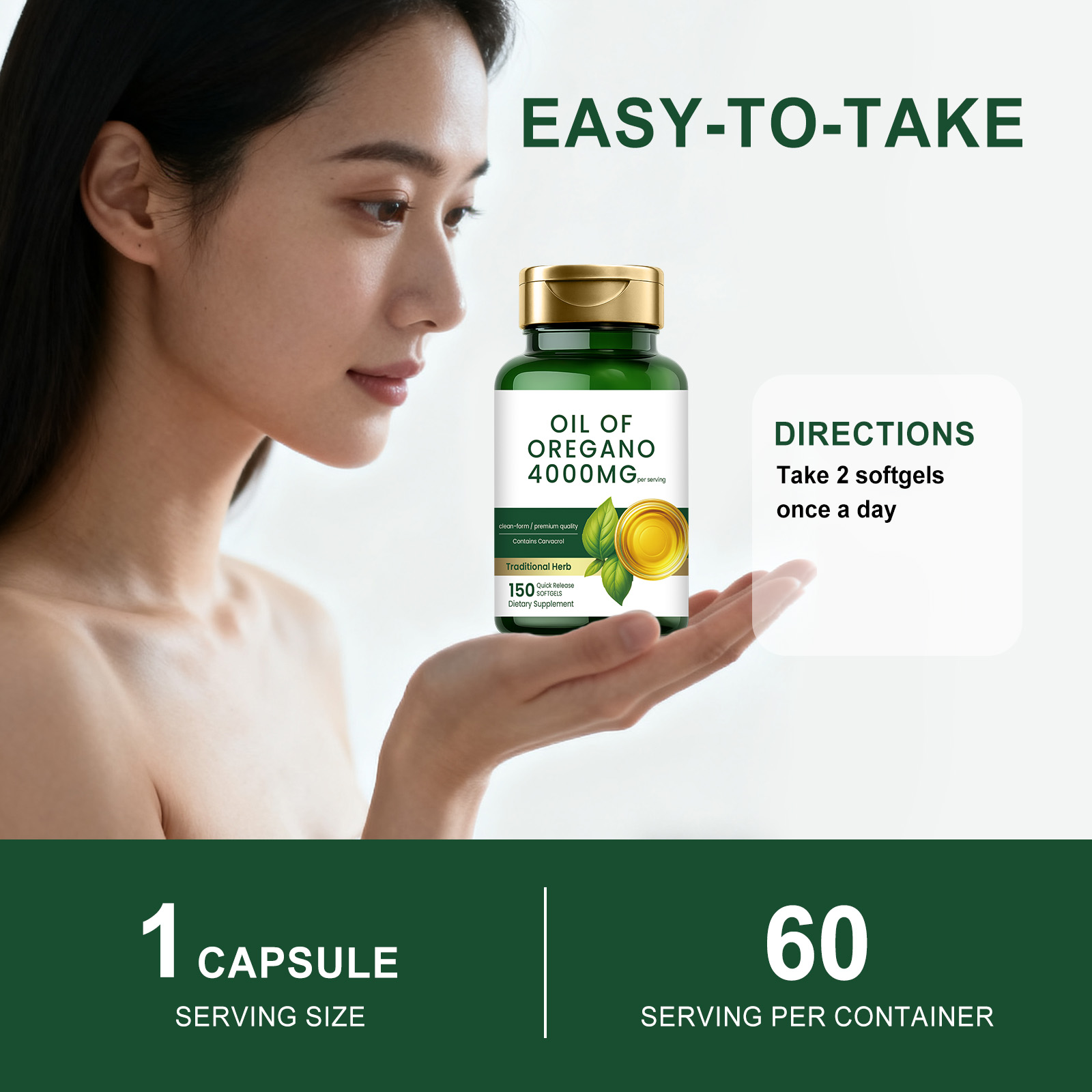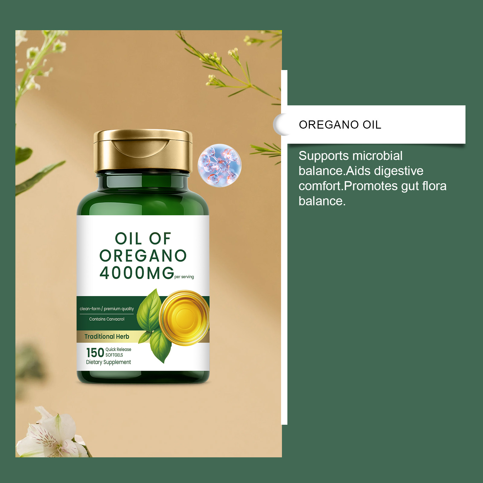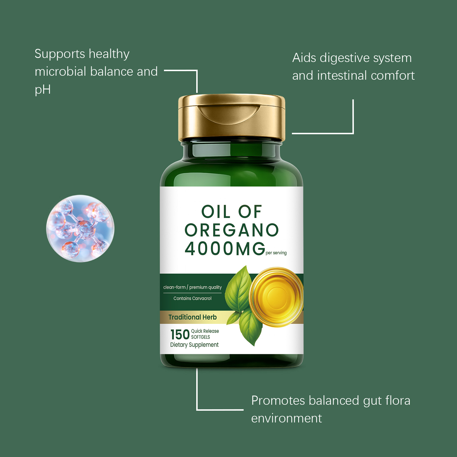 我们的牛至油软胶囊,由牛至油精心调配而成。专为支持健康的pH值,有助于肠道舒适设计。使用方法极为便捷:每天一次,每次2粒。并且它可以支持身体过程,采用核心牛至油配方。