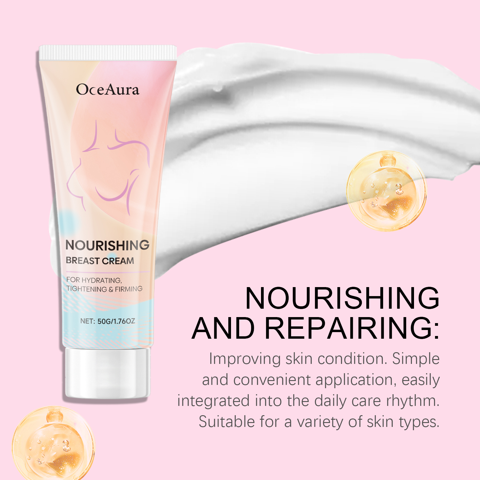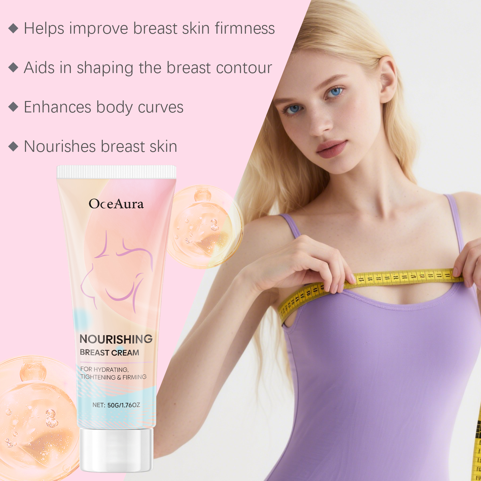 我们的紧致提拉丰胸霜,由三乙醇胺、卡波姆精心调配而成。专为塑造迷人的胸部形状设计。使用方法极为便捷:1.清洁并擦干胸部皮肤。2.取适量本品轻柔涂抹于胸部肌肤,向上向外按摩至完全吸收。并且可以重现年轻肌肤质感。