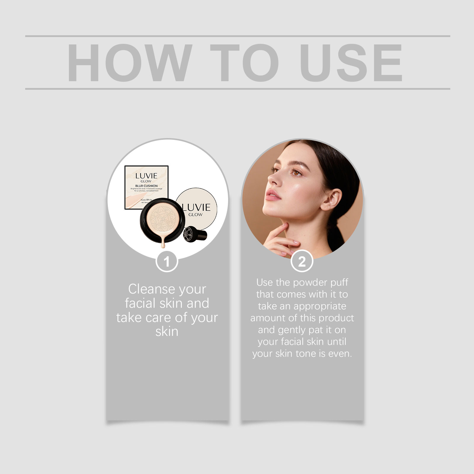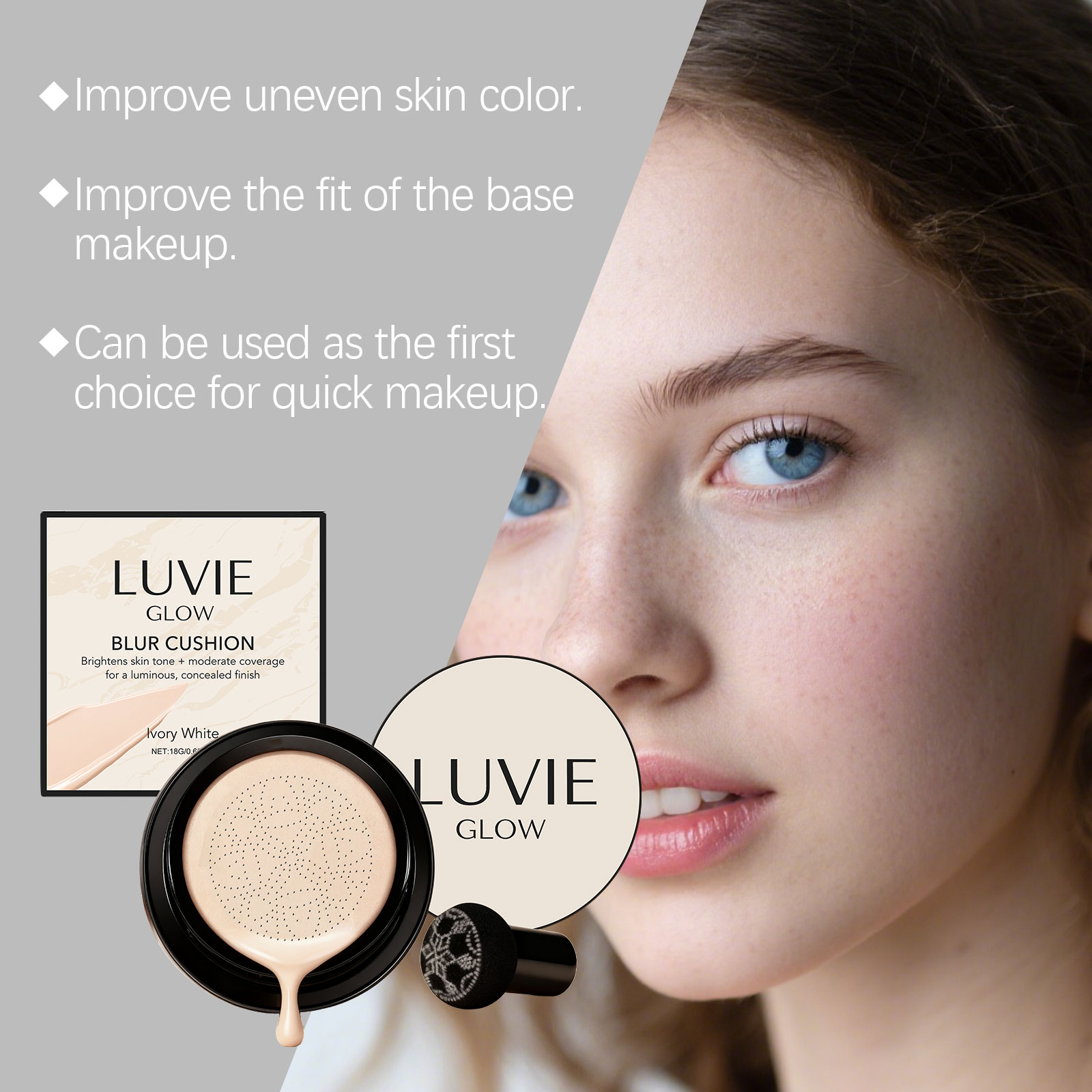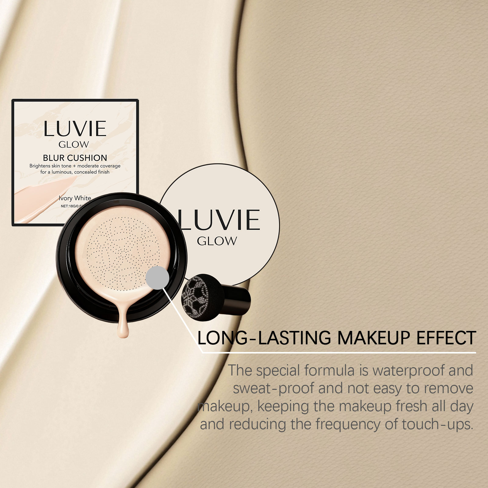 我们的焕亮无瑕气垫霜(象牙白),由丙二醇、矿油精心调配而成。专为精准匹配不同肤色,实现裸妆效果设计。使用方法极为便捷:清洁面部肌肤并护理皮肤。使用随附的粉扑取适量本产品,轻拍于面部肌肤,直至肤色均匀。并且具有奶油般顺滑的质地,具有良好的延展性,可以轻松推开而不粘粉,创造出均匀柔和的基础妆容。