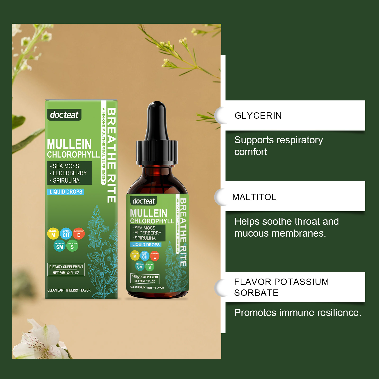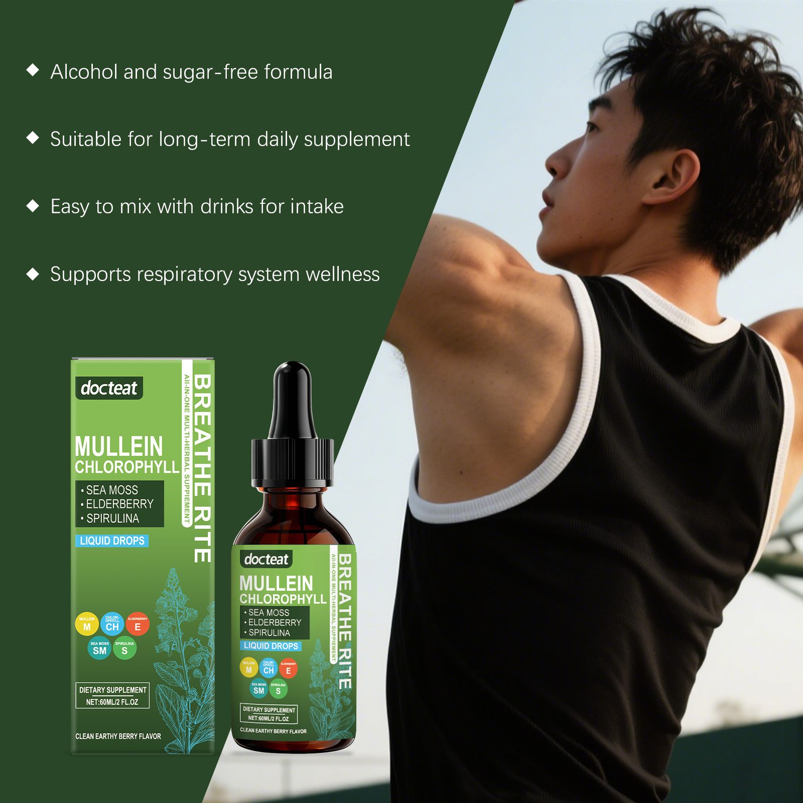 我们的植萃复合滴剂,由螺旋藻、爱尔兰海藻提取物精心调配而成。专为辅助呼吸健康设计。使用方法极为便捷:每天服用2毫升,可以直接服用或与其他食物混合。并且可促进免疫韧性。