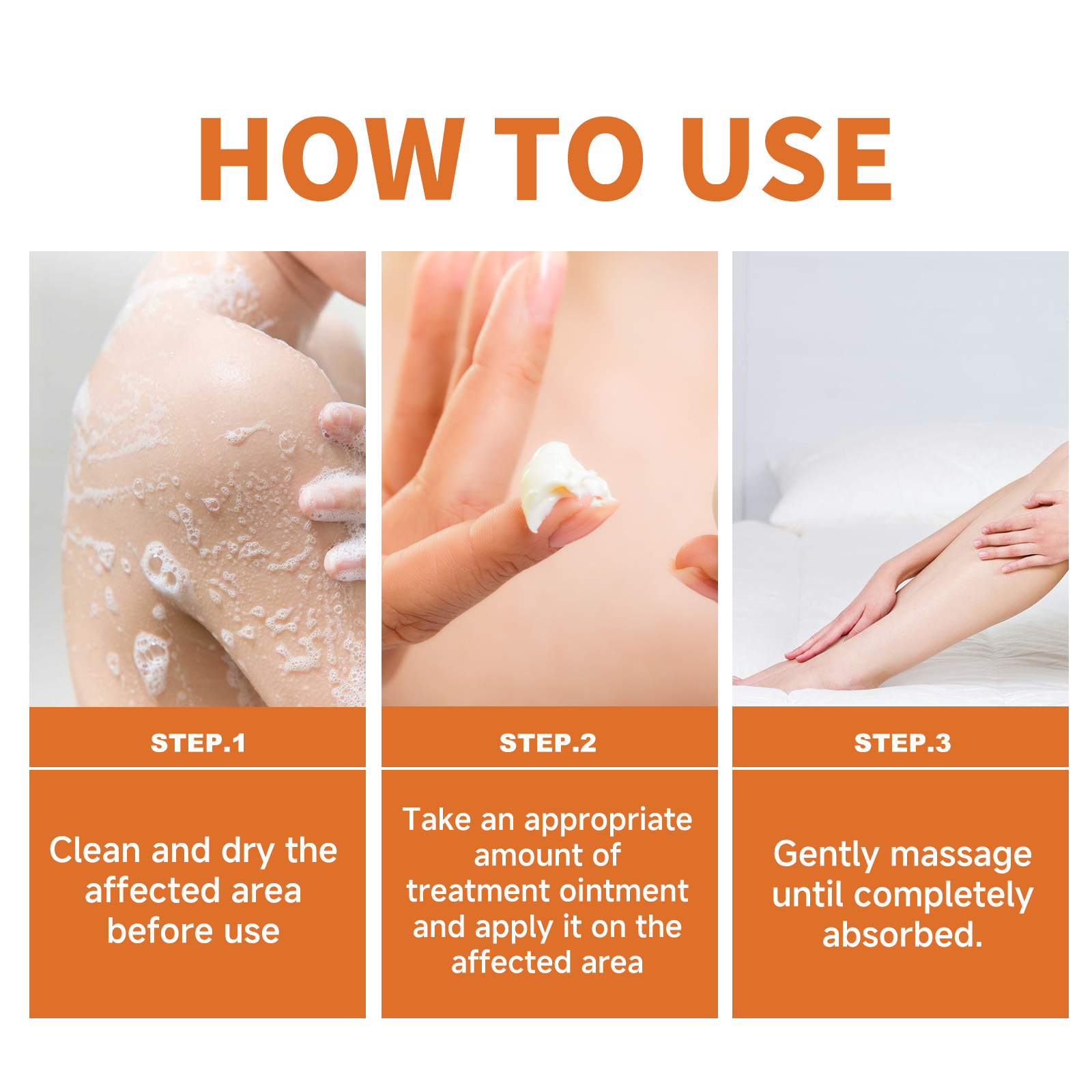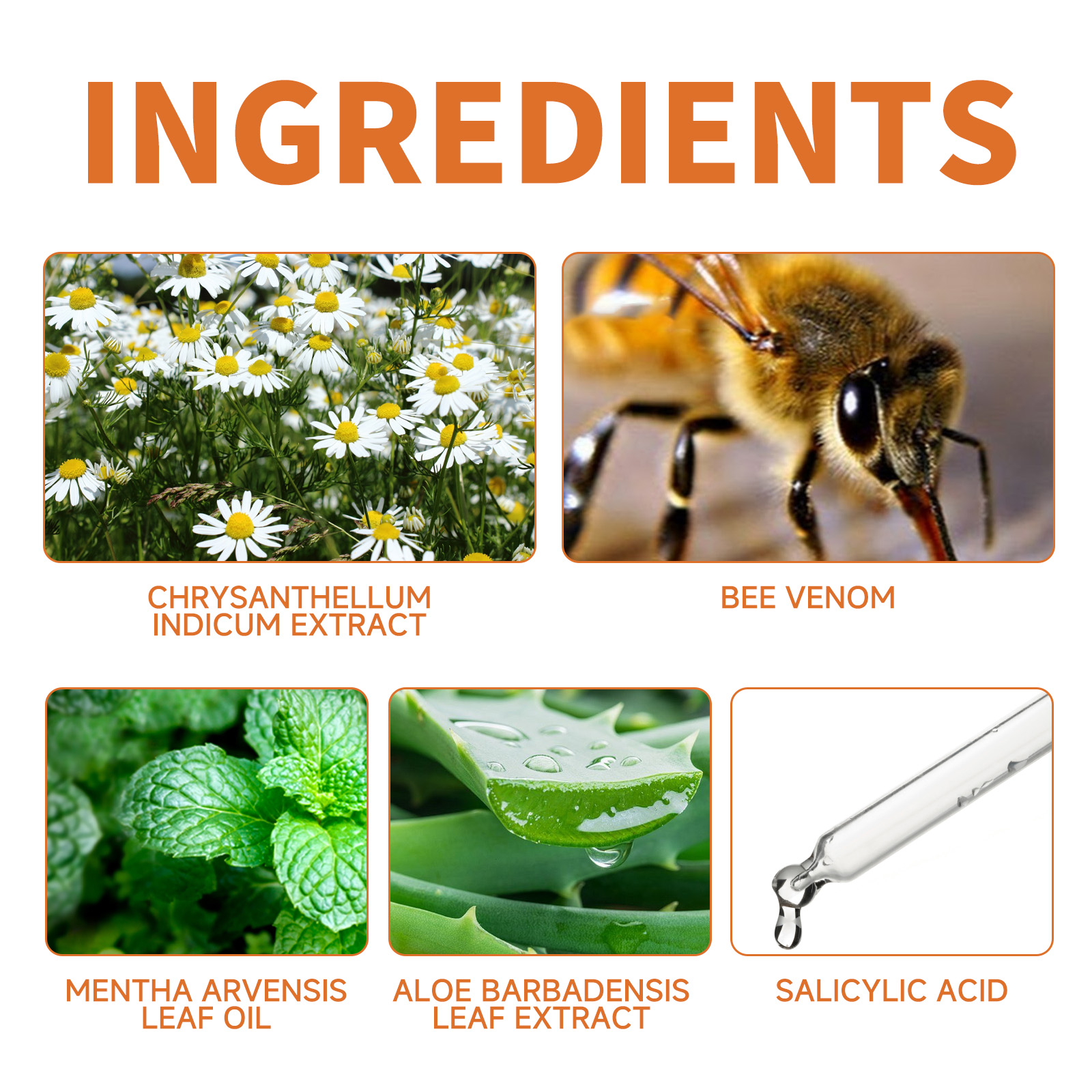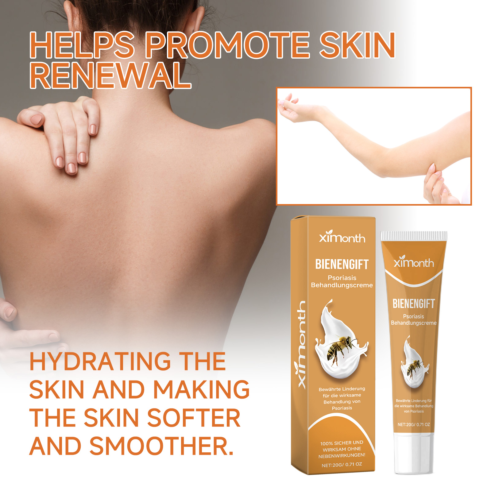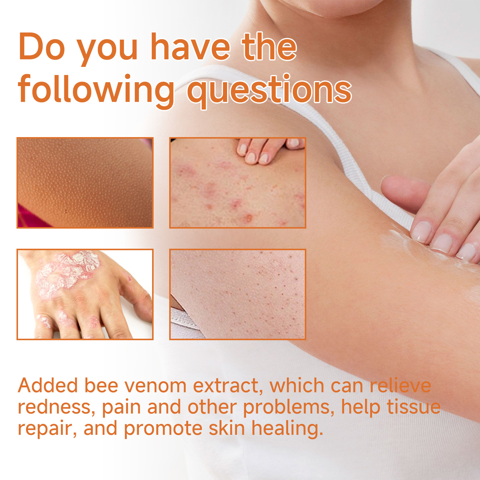 我们的蜂毒牛皮癣治疗膏含有菊花提取物,蜂毒,薄荷叶油。它可以缓解红肿、疼痛等问题,帮助组织修复,并促进皮肤愈合。它的使用方法很简单:使用前请清洁并擦干患处,取适量治疗药膏涂于患处,轻轻按摩至完全吸收即可。可以使牛皮癣永久消失,减少发痒发红,促进新皮肤细胞;舒缓保湿,抗瘙痒消炎,抑制复发,拥有健康的皮肤。