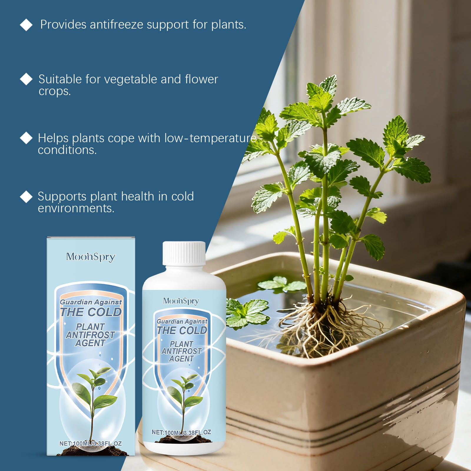 我们的植物防冻剂,由乙醇、1,2-己二醇精心调配而成。专为植物提供冷保护设计。使用方法极为便捷:将产品均匀涂抹在植物上,以确保有效的防霜保护,并根据需要重复使用。并且适用于蔬菜和花卉。
