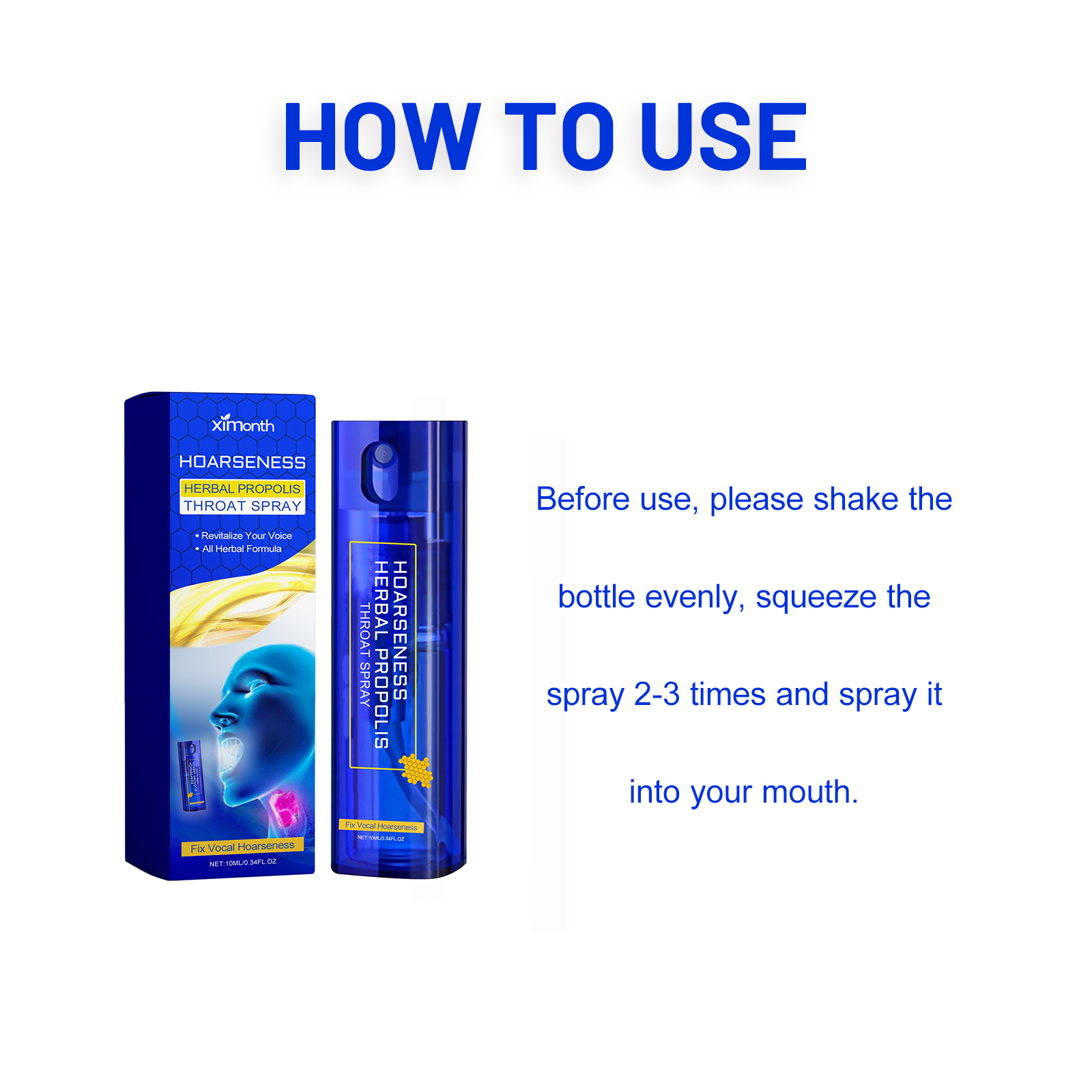 我们的草本蜂胶喉咙喷雾(入口)含有蜂胶提取物,甘草根提取物,芦荟提取物。它可以快速缓解喉咙干燥和瘙痒、声音嘶哑和其他情况,增强喉咙健康,使喉咙更舒适,加强了声带的健康。它的使用方法很简单:使用前,先摇动本品,将瓶子放进嘴里均匀挤压,喷2-3次,喷完就可以了。中草药成分具有清热解毒、润喉止痒的功效,可以缓解咽喉肿痛、口干等症状,为您营造一个舒适宁静的睡眠环境。