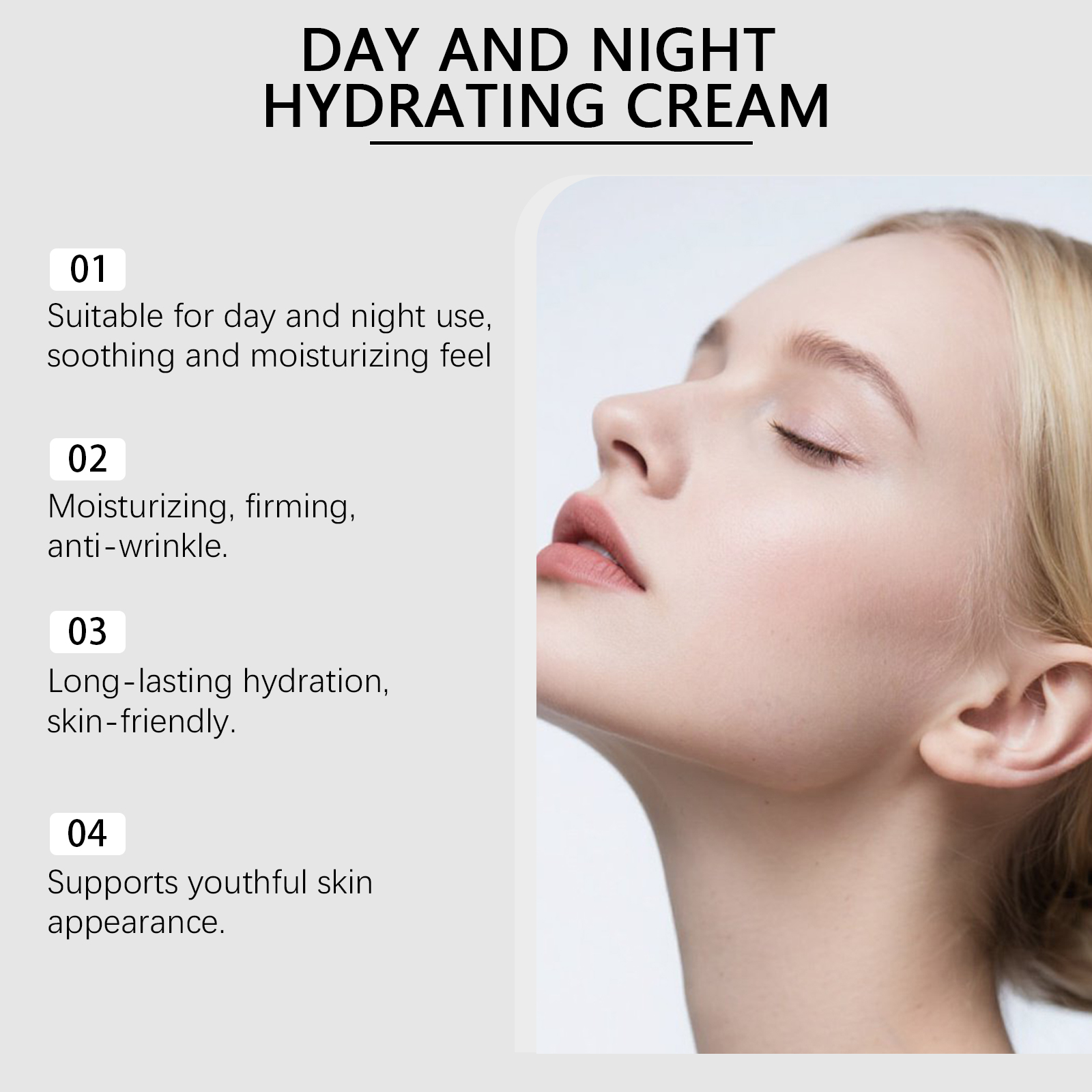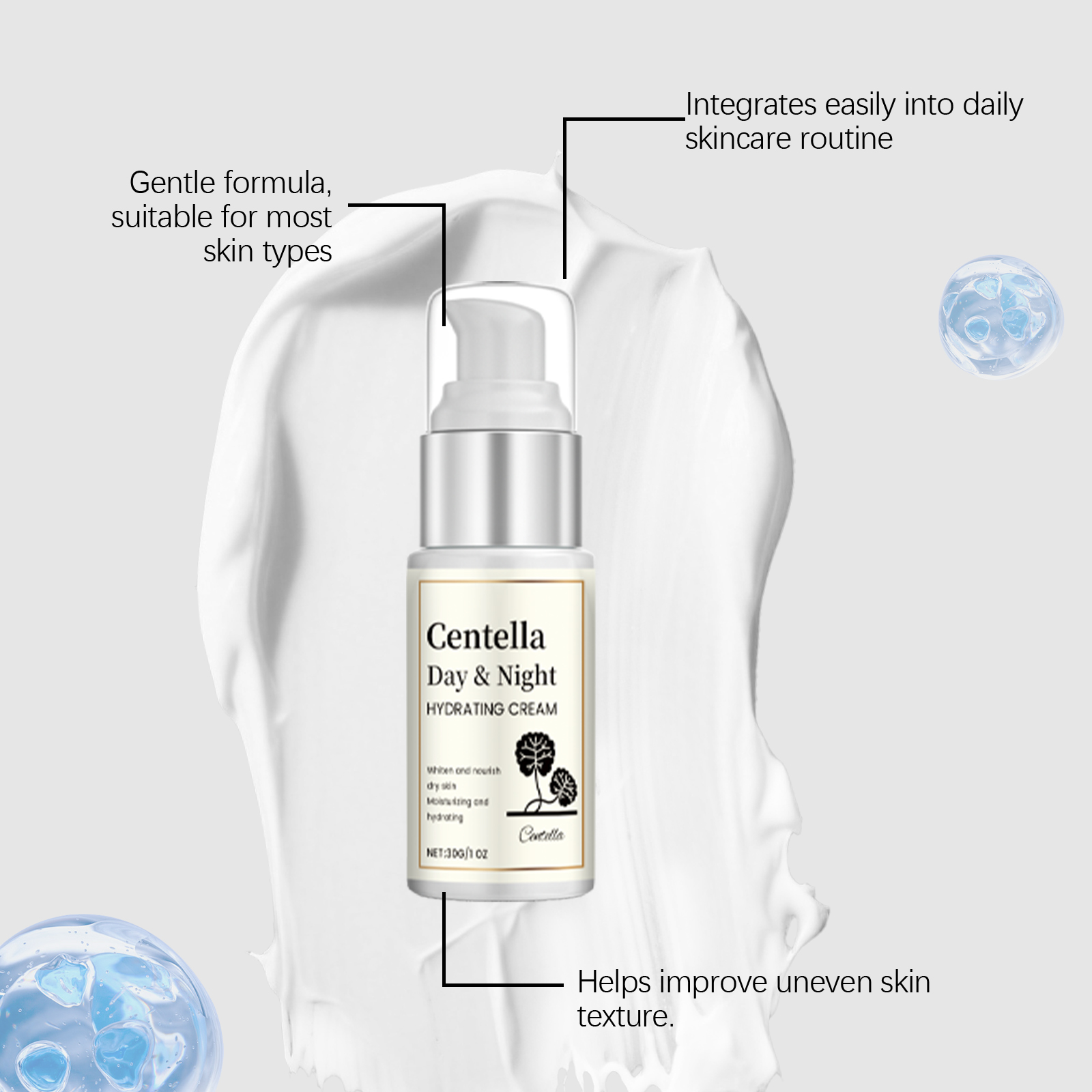 我们的积雪草日夜保湿霜,由透明质酸、积雪草提取物精心调配而成。专为全天候保湿肌肤设计。使用方法极为便捷:1.清洁并擦干面部。2.将适量本产品均匀涂抹于面部。3.轻柔按摩,以促进吸收。并且可以使皮肤感觉柔软和光滑。