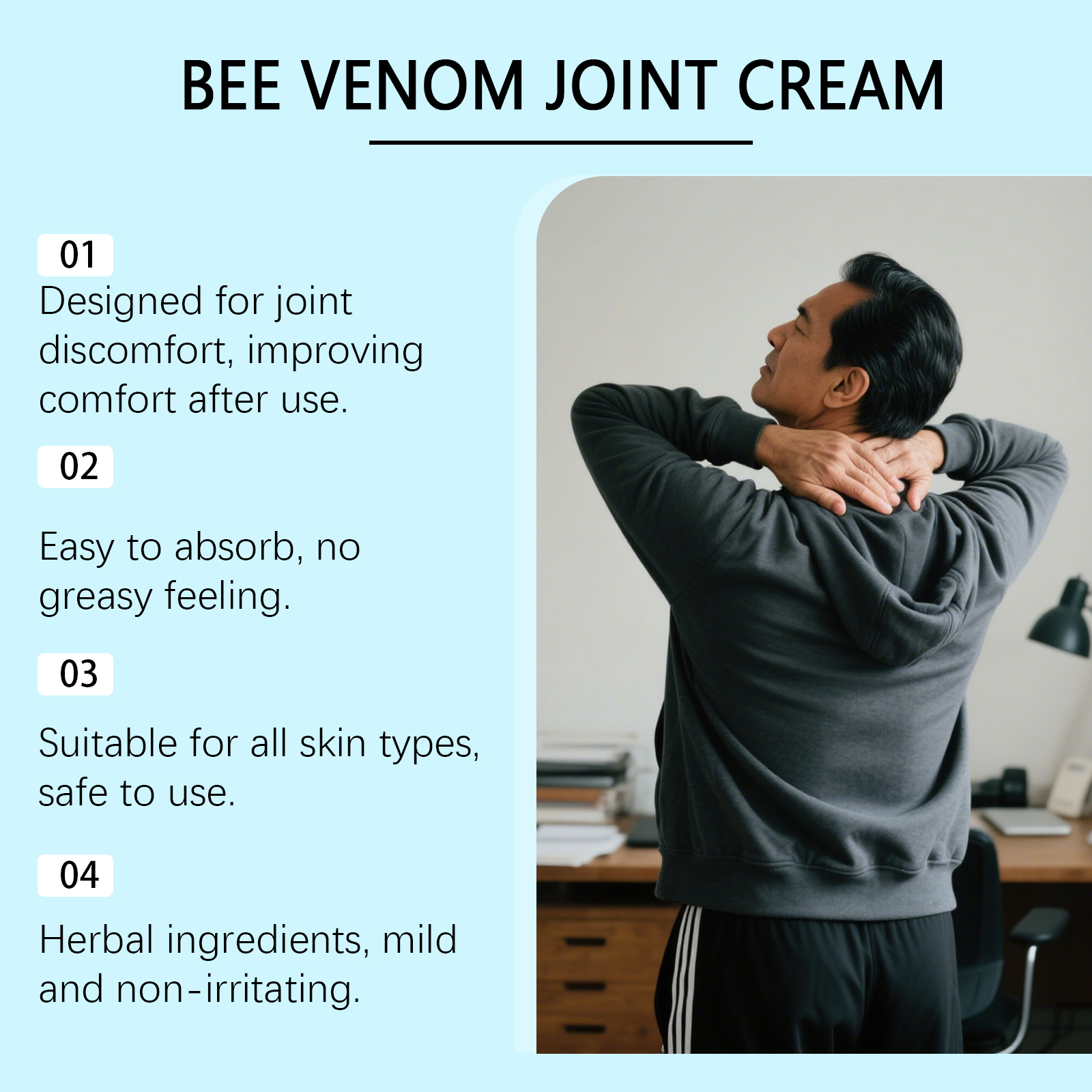 我们的关节护理霜,由蜂毒、水解胶原精心调配而成。专为放松关节周围的紧张肌肉设计。使用方法极为便捷:清洁并擦干皮肤,取适量本品涂抹于患处关节,并按摩至吸收。并且可以改善受影响区域的血液循环并恢复活力。