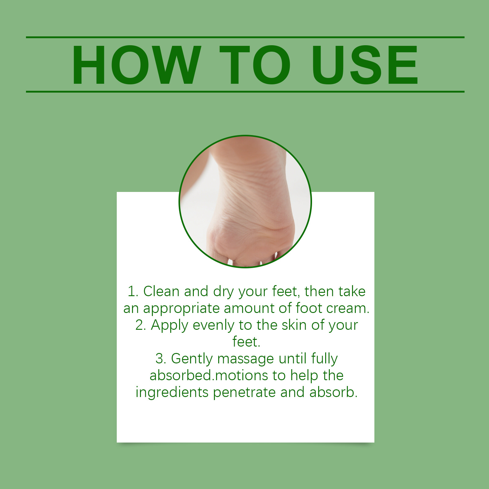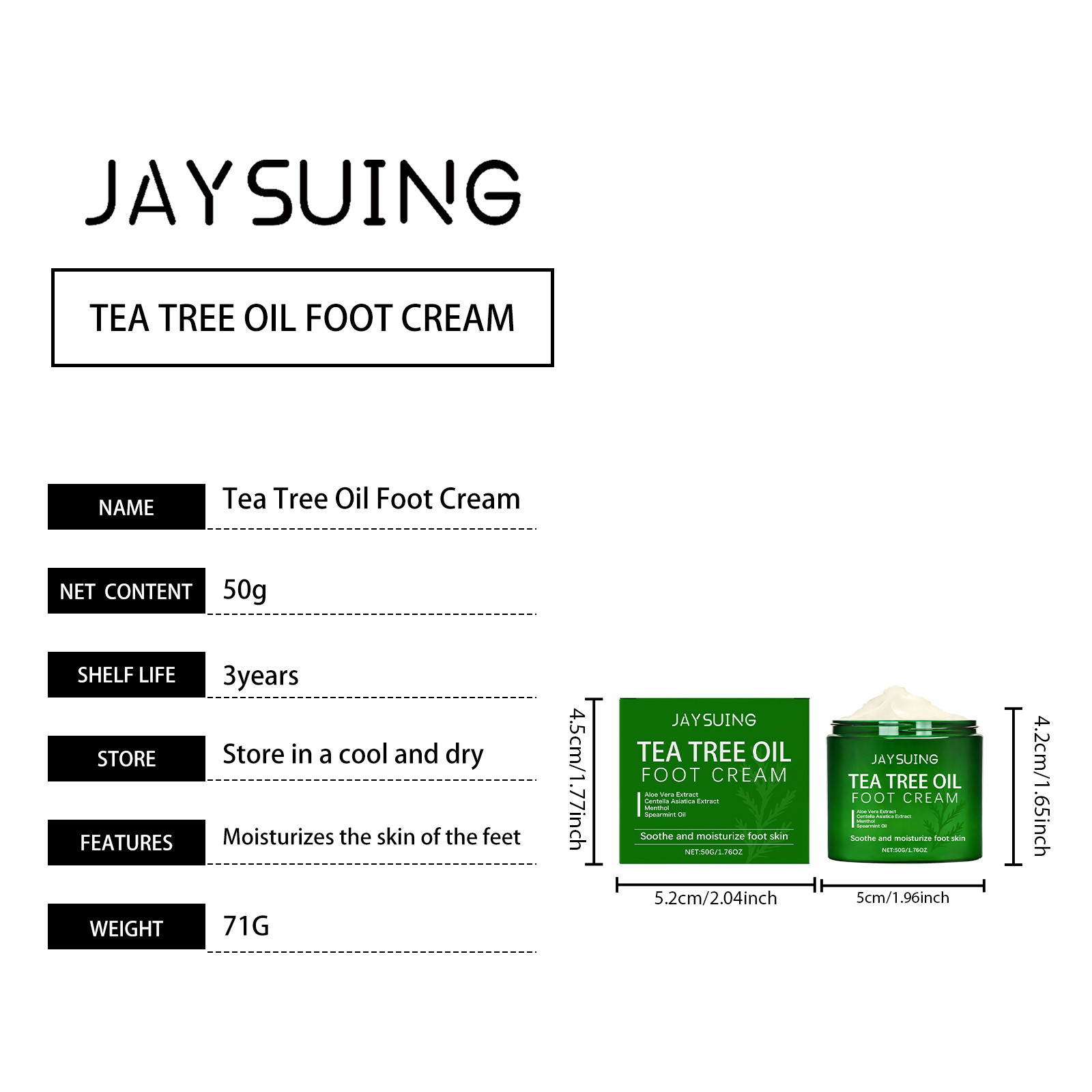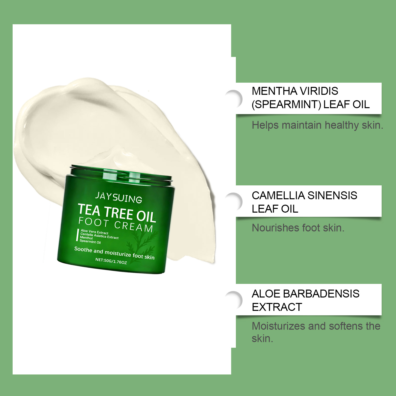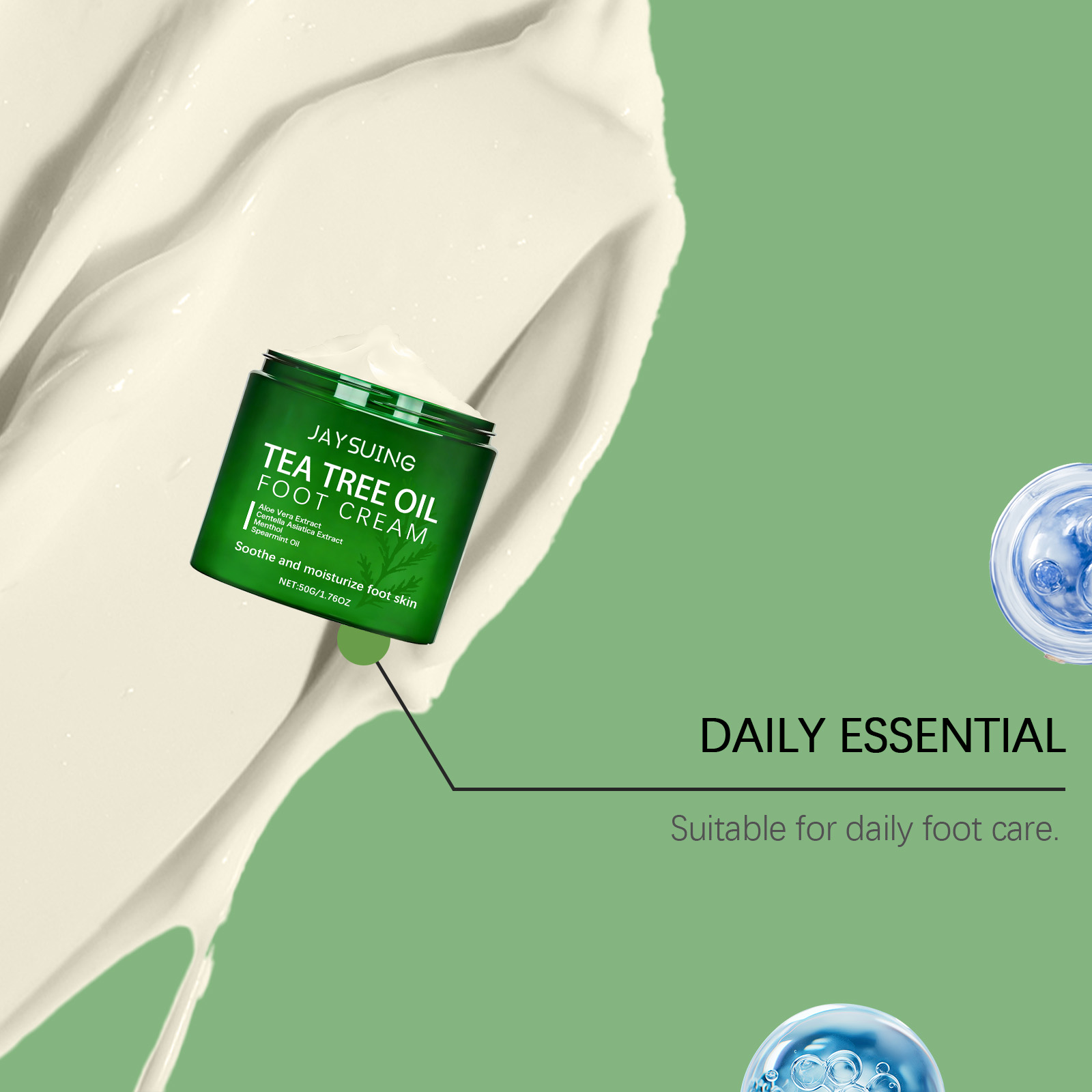 我们的茶树油护理足霜,由薄荷脑、留兰香叶油精心调配而成。专为让您的双脚感到水润设计。使用方法极为便捷:1. 先将双脚清洁并擦干,然后取适量的足霜涂抹在脚上。2. 均匀地涂抹于双脚肌肤上。3. 轻轻按摩直至完全吸收。有助于让食材更好地渗透和吸收的措施。并且可以改善脚部干燥。