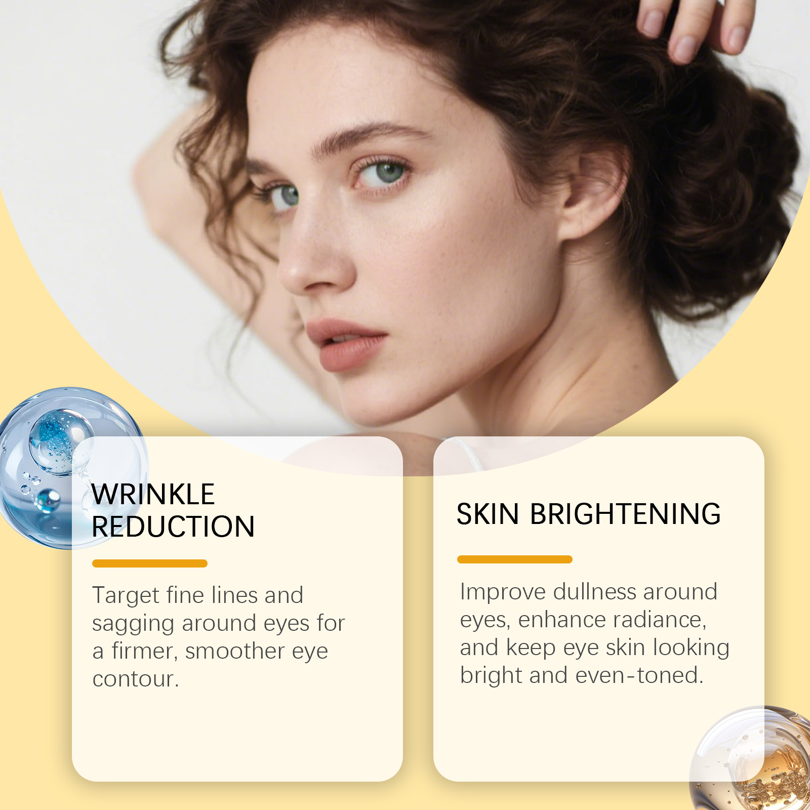 我们的眼部凝胶精华,由透明质酸、泛醇精心调配而成。专为针对眼部细纹和松弛,使眼周轮廓更紧致平滑设计。使用方法极为便捷:1.清洁皮肤并轻轻拍干。2.将适量本产品均匀涂抹于眼部肌肤。3.轻柔按摩至完全吸收。并且可以改善眼部暗沉,提升光泽度,使眼周肌肤看起来明亮均匀。