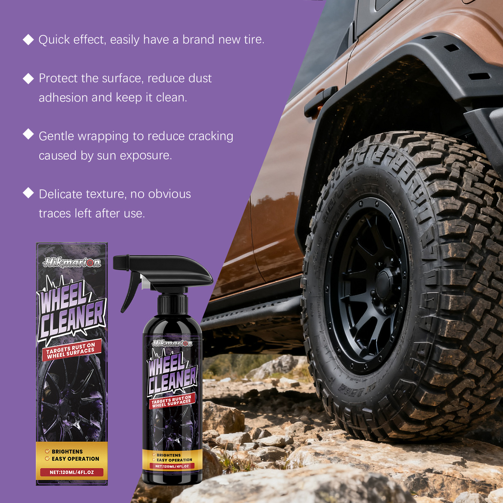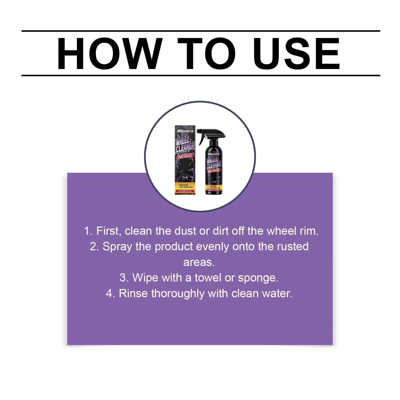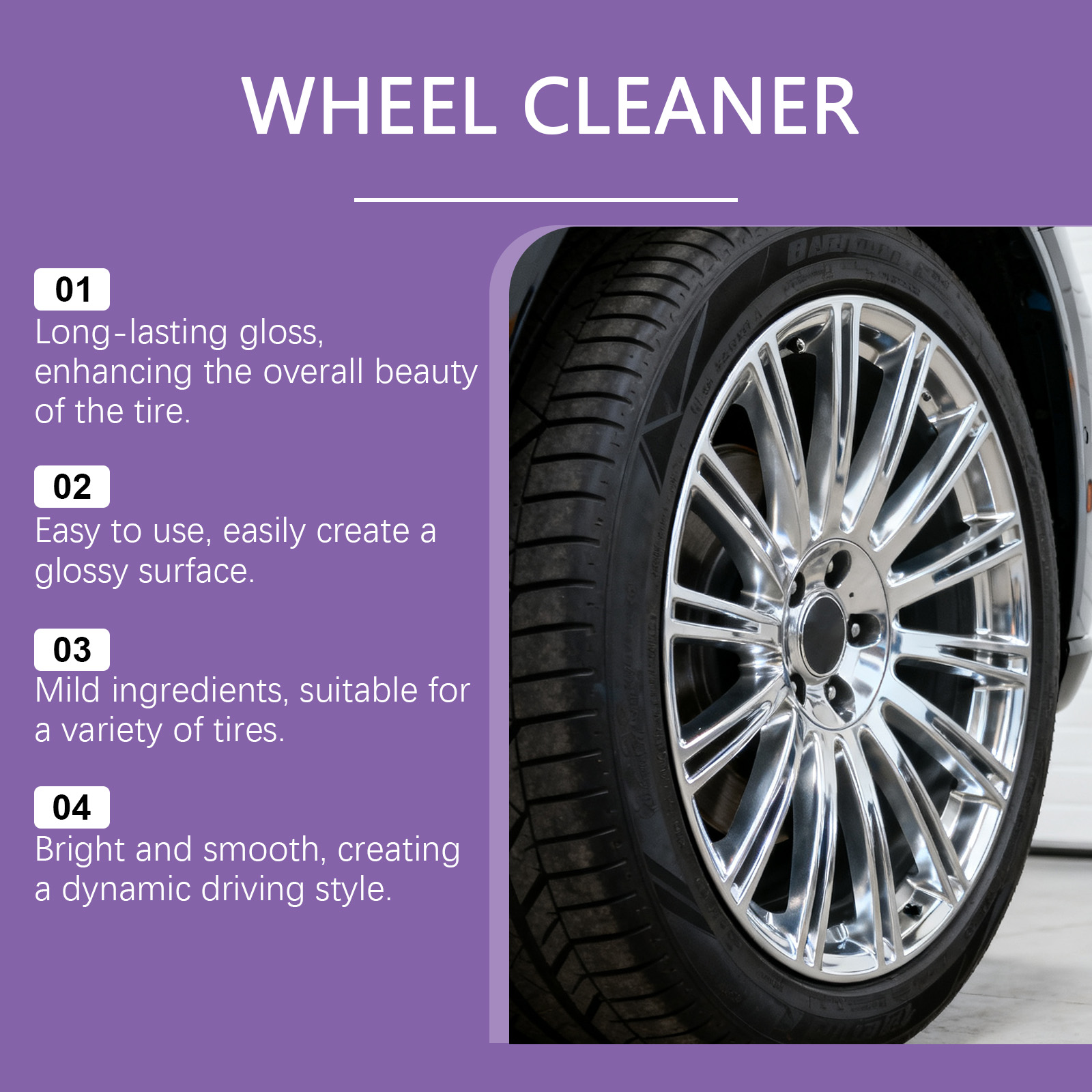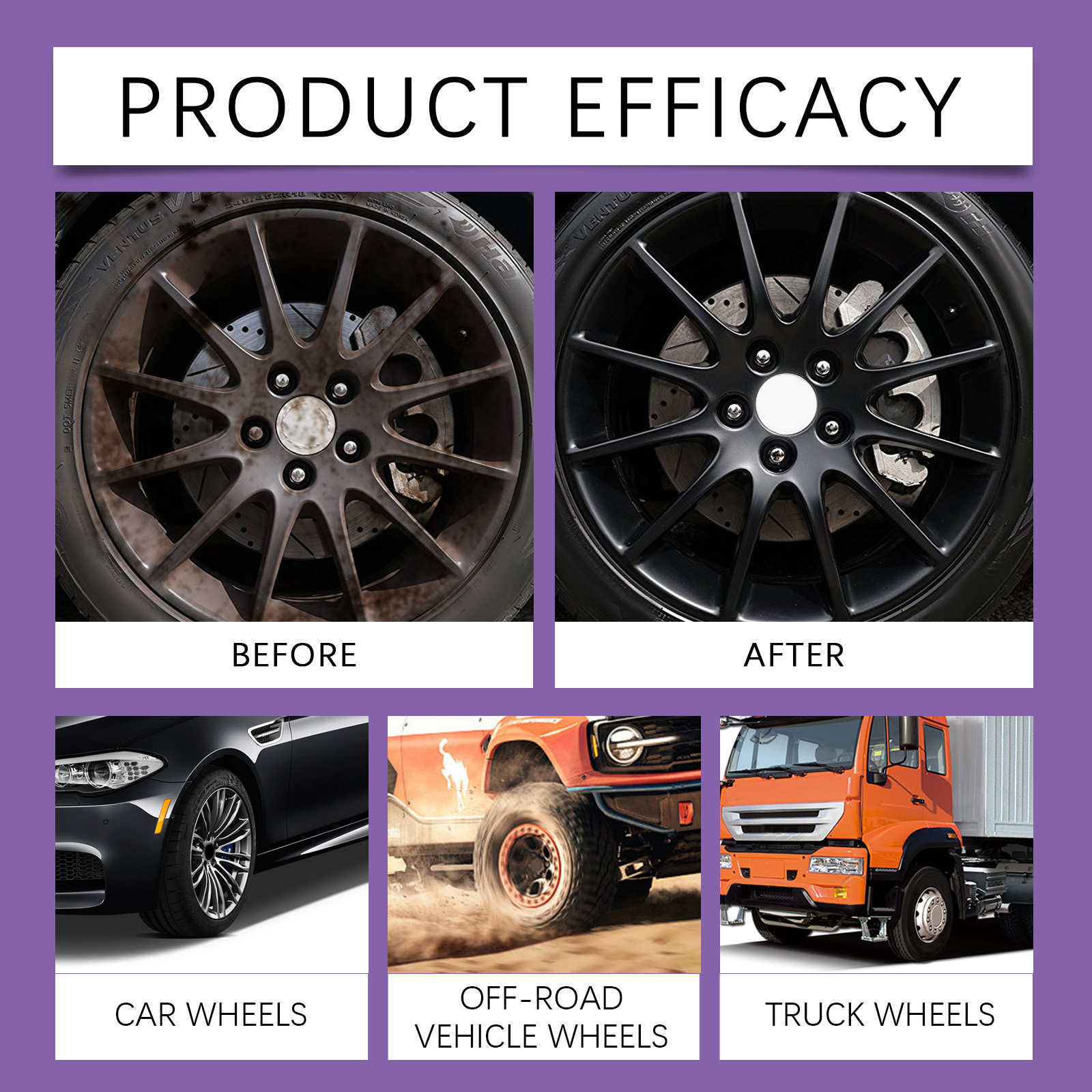 我们的汽车车轮清洁喷雾,由柠檬酸、氨基磺酸精心调配而成。专为彻底清除刹车粉尘设计。使用方法极为便捷:1.首先,清理轮圈上的灰尘或污垢。2.将产品均匀喷洒在生锈区域。3.用毛巾或海绵擦拭。4.用清水彻底冲洗。并且适用于合金和钢制轮毂。