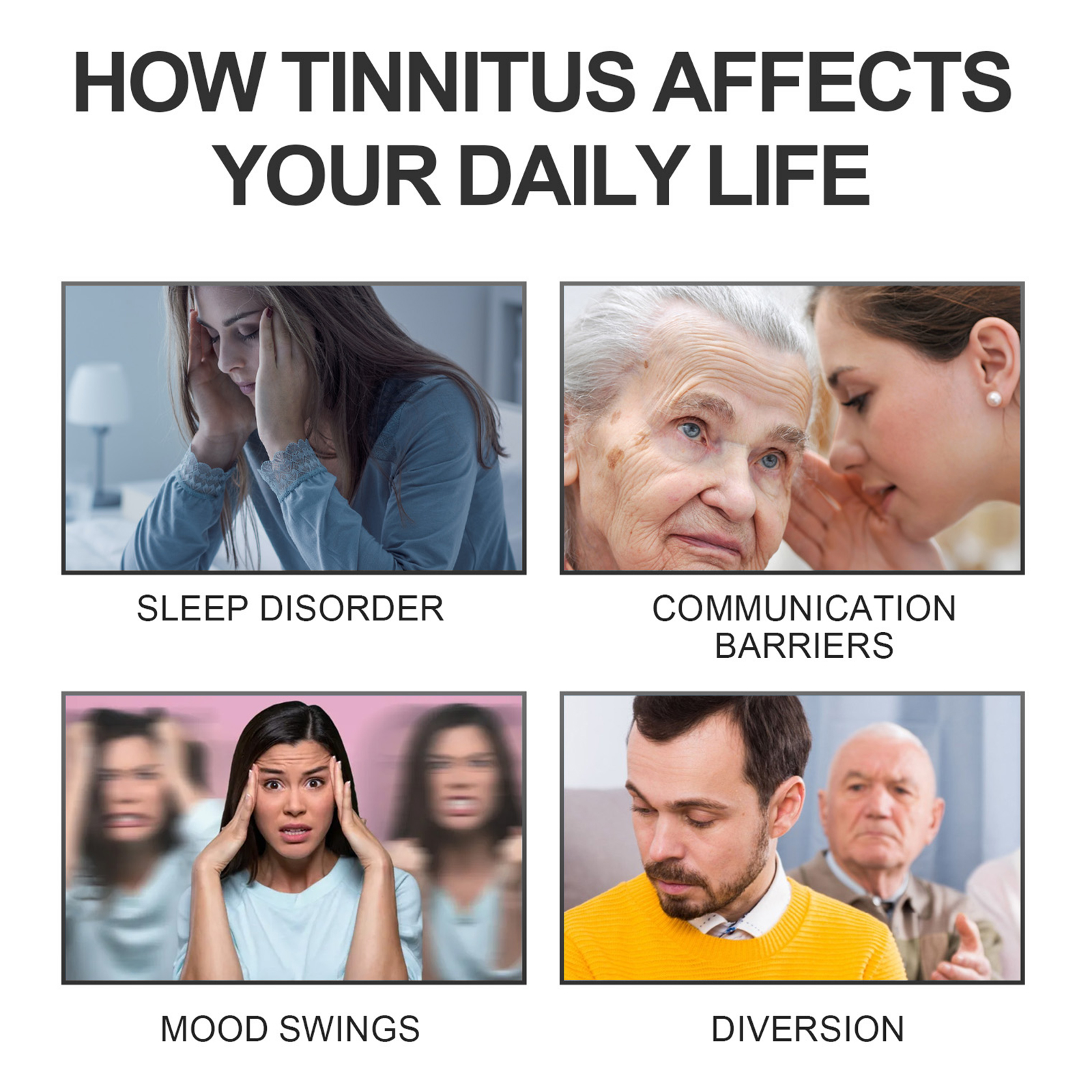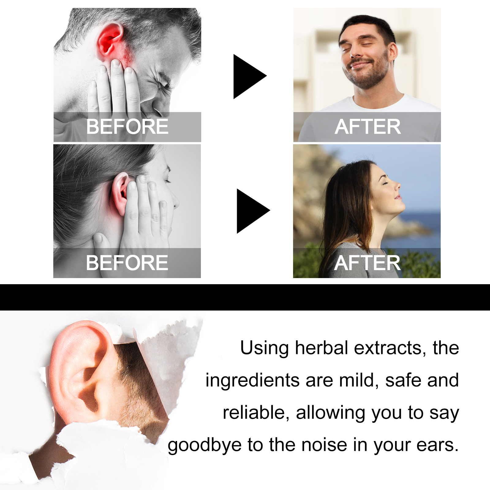 我们的耳鸣治疗喷雾含有蜂胶提取液,银杏叶提取液,甘草叶提取液。它可以缓解听力障碍,恢复听力,治愈耳鸣症状,快速清除耳内深层污垢和堵塞,高效治疗耳部炎症,缓解疼痛。它的使用方法很简单:清洁并擦干耳朵,使用前先摇匀,保持直立,将喷嘴置于患耳入口附近,轻轻挤压喷雾以释放液滴,静置10分钟,使其充分吸收,然后擦掉多余的液体即可。可以带来安静和舒适,提高生活质量,消除混乱的耳朵声音。