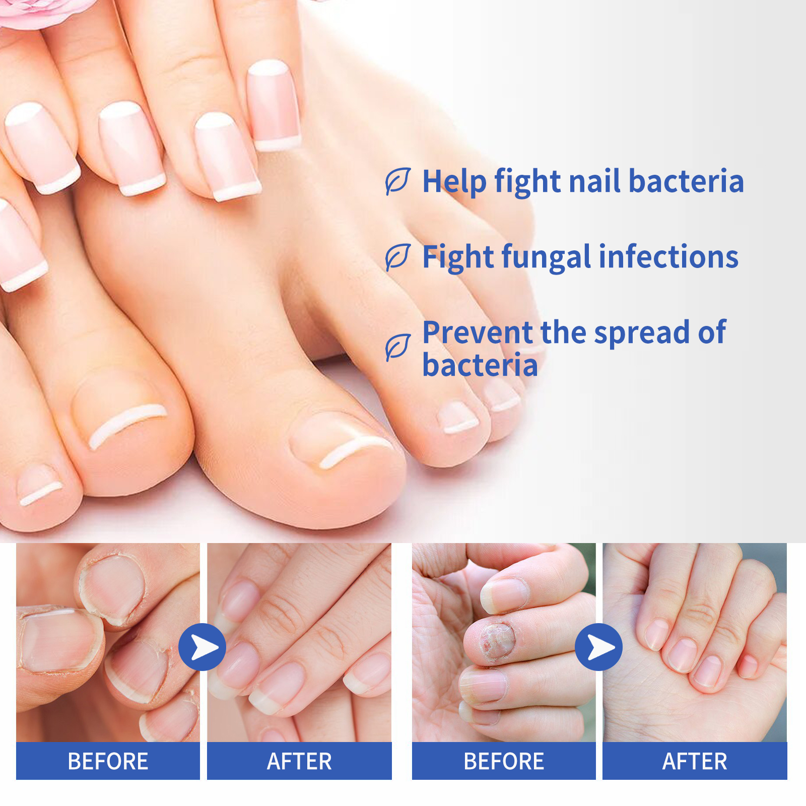 我们的指甲滋润精华液含有维生素E、透明质酸、人参提取物。它可以提使脆弱的指甲恢复活力,减少变色和厚度,帮助改善外观,消除指甲受损的真菌。它的使用方法很简单:首先锉削指甲受影响的部位,增强精华的渗透性,用干棉签/抹布清洁指甲,将精华液涂抹在感染指甲的整个表面,每天两次(早晚)使用,使用4周以上,有助于使指甲厚度正常,并滋润脆弱的指甲,缓解疼痛和肿胀,改善指甲状况,支持健康的指甲再生。