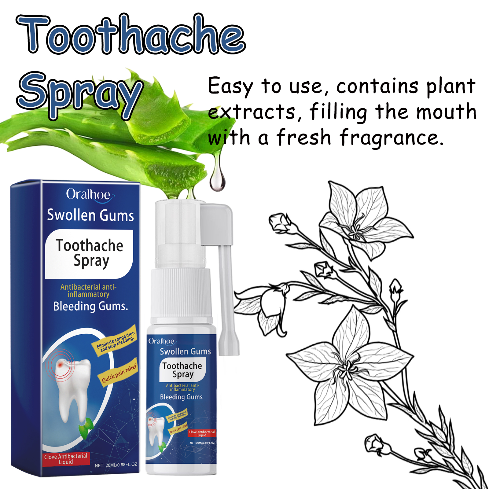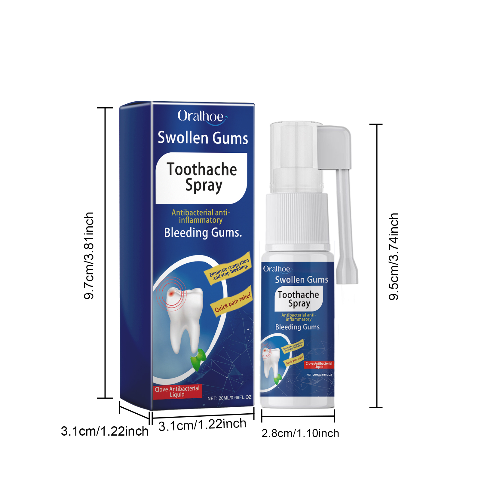 我们的牙痛止痛喷雾含有甘油、薄荷提取物、苦集液。它可以能有效减轻牙龈肿痛,快速缓解疼痛,有效减少牙龈不适,修复受损牙龈,并减少炎症。它的使用方法很简单:使用前先摇晃瓶子,喷2-3次在受影响的牙齿或牙龈区域,每天喷3-5次即可。可以防止牙龈出血,为您提供全面的口腔健康保护。