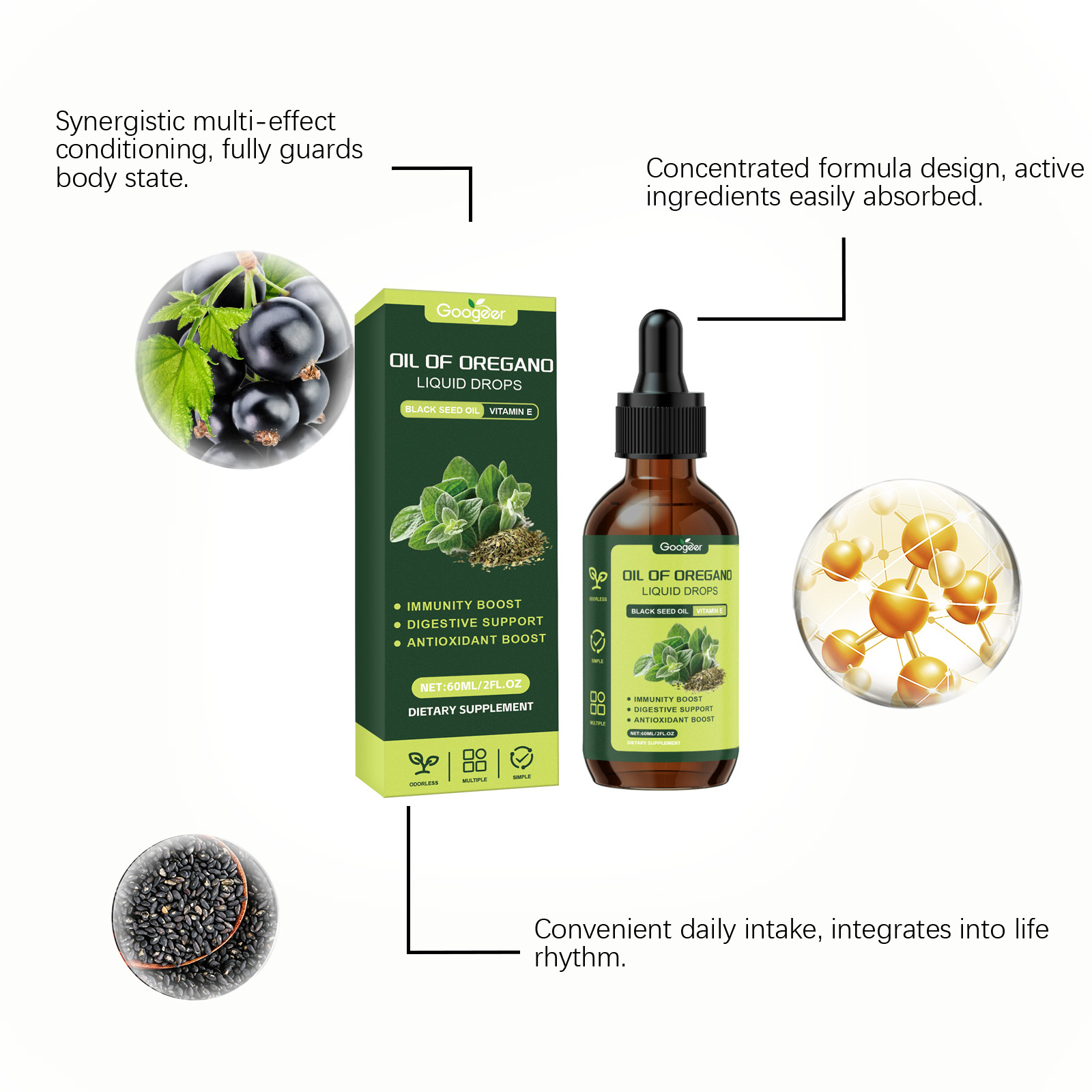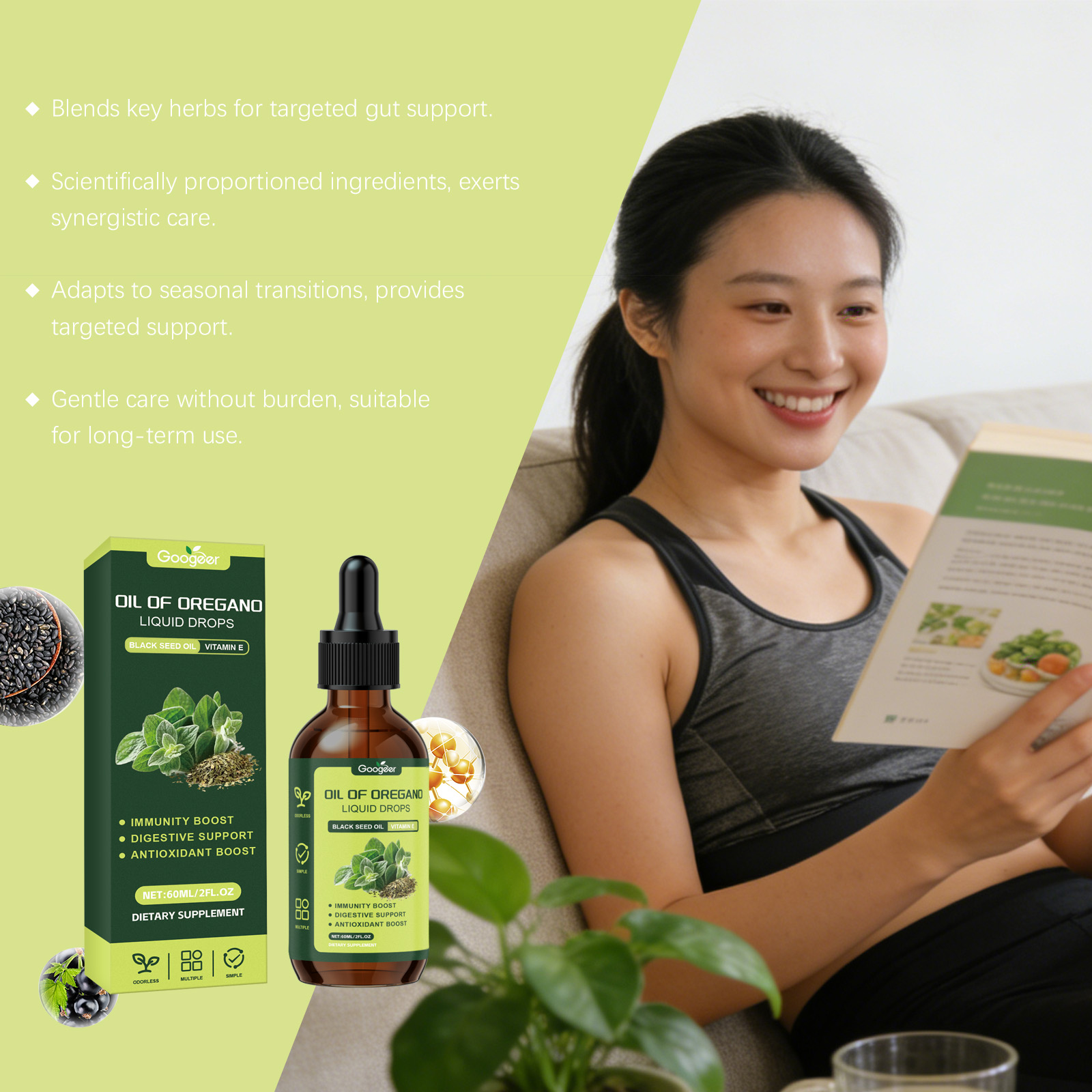 我们的牛至油液体滴剂,由维生素E、黑籽油精心调配而成。专为增强防御能力,适应多样的环境设计。使用方法极为便捷:使用前请充分摇匀。每日一次每次2毫升。可直接服用或与食物混合服用。并且它可以调节消化,改善肠道舒适度。
