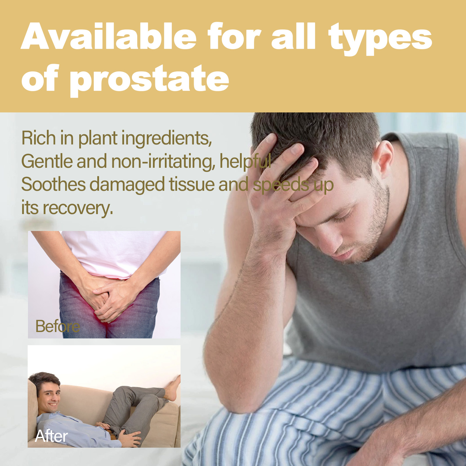 我们的前列腺治疗胶囊含有甘油、羟乙基纤维素。它可以从根本上保障前列腺和全身的健康,提高男人的战斗力,优化身体性能,恢复你的男子气概,并解决勃起功能障碍的问题。它的使用方法很简单:清洗私人部位并洗手后,用手指将胶囊放入私处,静置10分钟,胶囊缓慢溶解吸收即可。含有丰富的植物成分,温和无刺激性,有助于舒缓受损组织,加速其恢复。