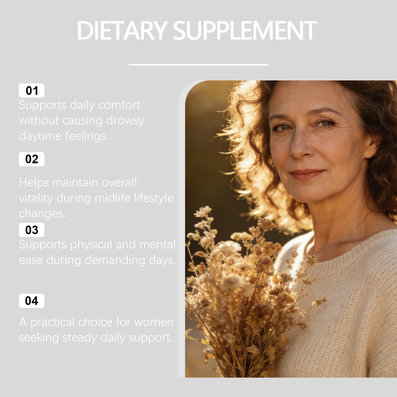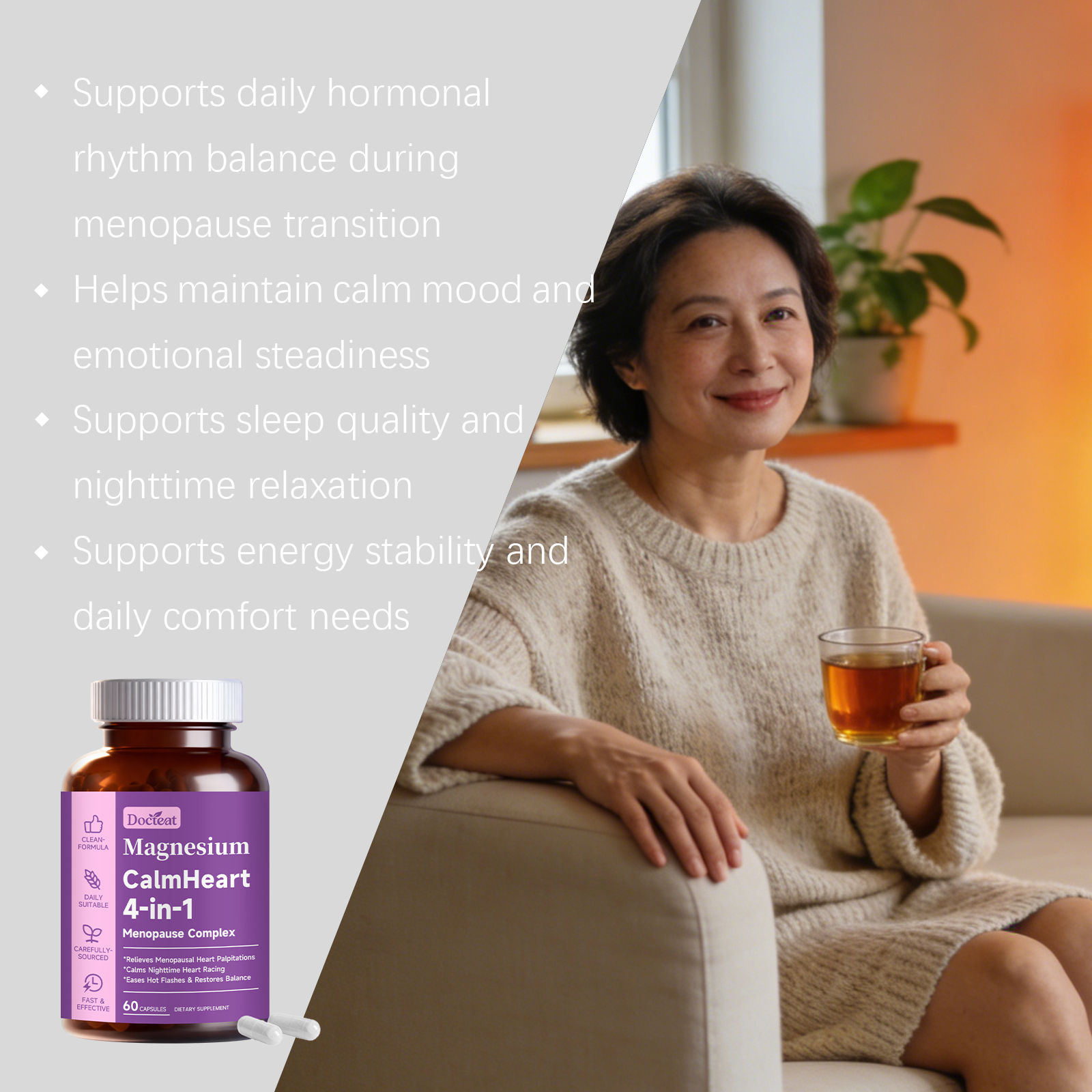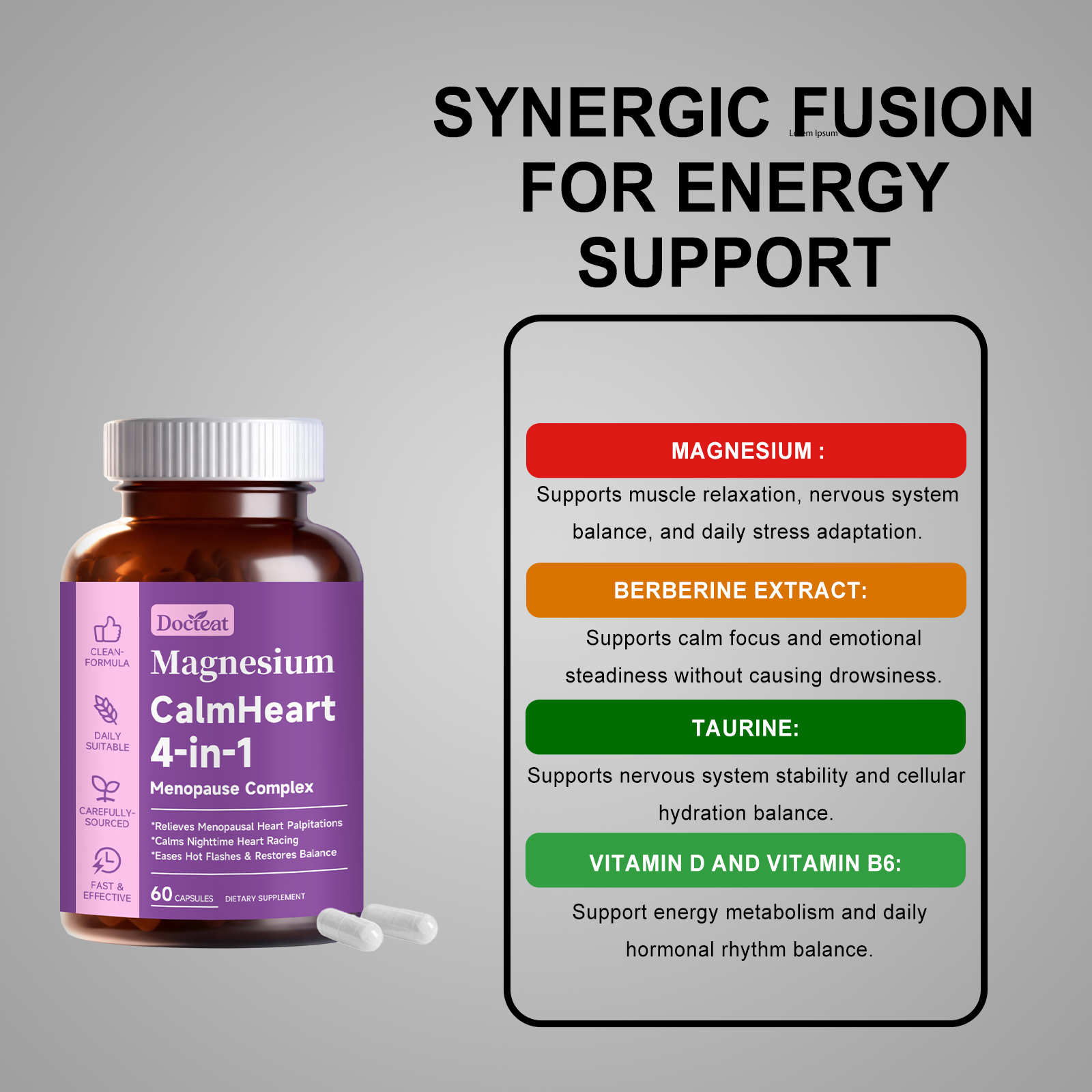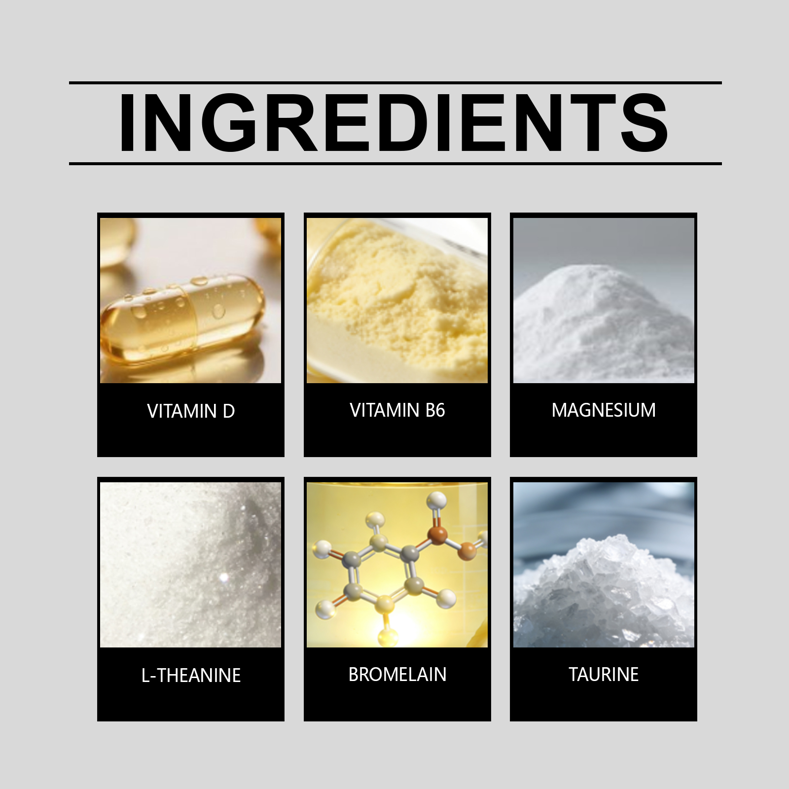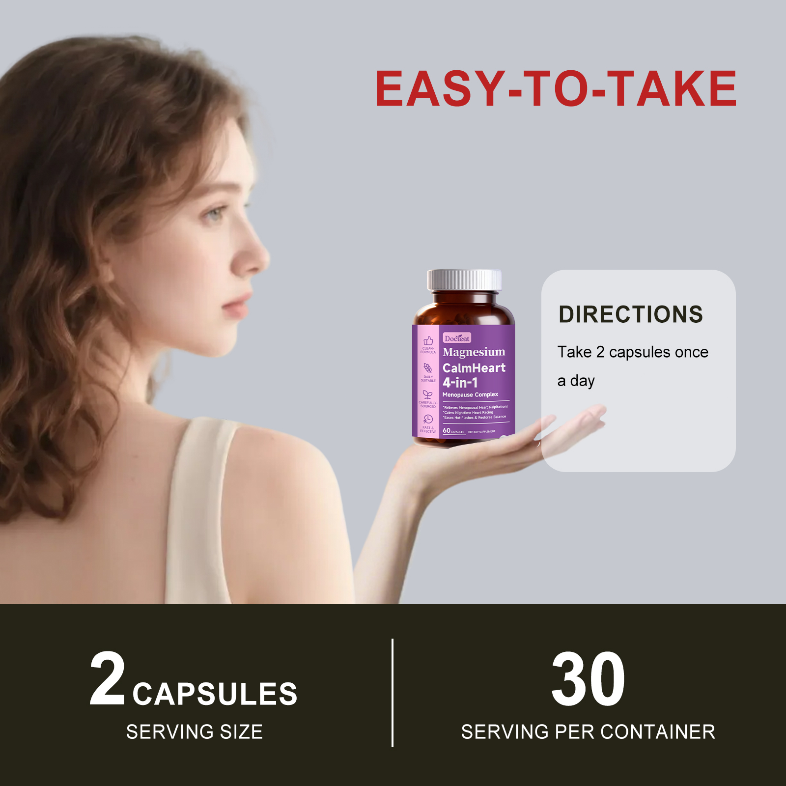 我们的4合1复合胶囊,由维生素D、维生素B6精心调配而成。专为有助于肌肉放松、神经系统平衡和日常压力适应设计。使用方法极为便捷:每日服用 2 粒胶囊。并且它可以有助于保持冷静专注和情绪稳定,且不会引起困倦。