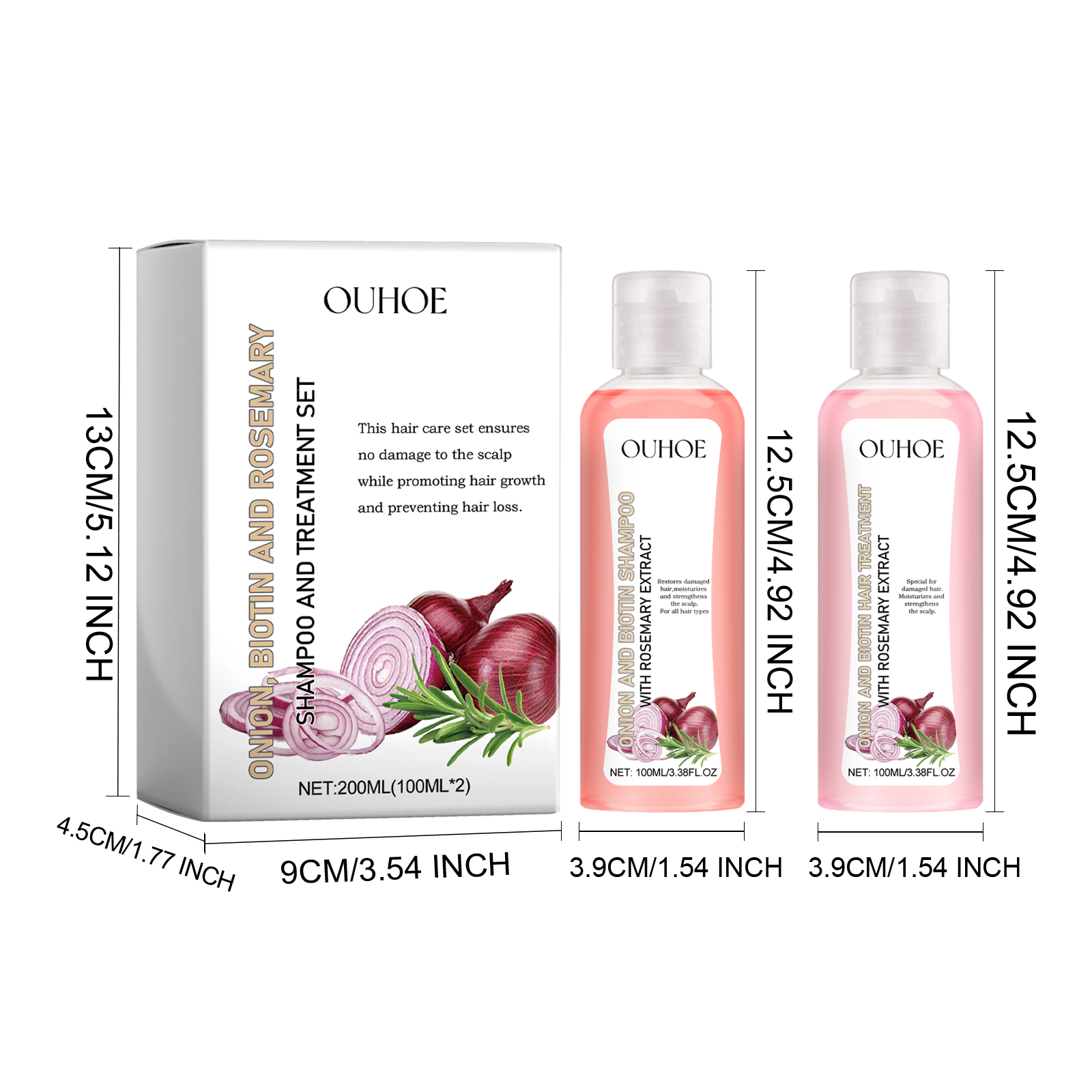 我们的洋葱生物素迷迭香洗发套装含有洗发水:聚季铵盐-10、洋葱鳞茎提取物;护发素:生物素、迷迭香叶提取物。它可以滋养和保护头发,还能改善毛囊的健康,促进头发生长,增强头发的自然光泽。它的使用方法很简单:先用温水把头发弄湿,取适量洗发水于手心,搓成泡沫,然后涂抹在头发上,用指尖轻轻按摩头发和头皮,用温水冲洗头发和头皮,直到所有泡沫都冲洗干净,然后取适量护发素均匀涂抹在发尾,使护发素均匀分布,然后戴上浴帽等待3分钟,最后用温水冲洗干净护发素即可。在清洁头发的同时,有助于强化头皮,提高头发的光泽度。