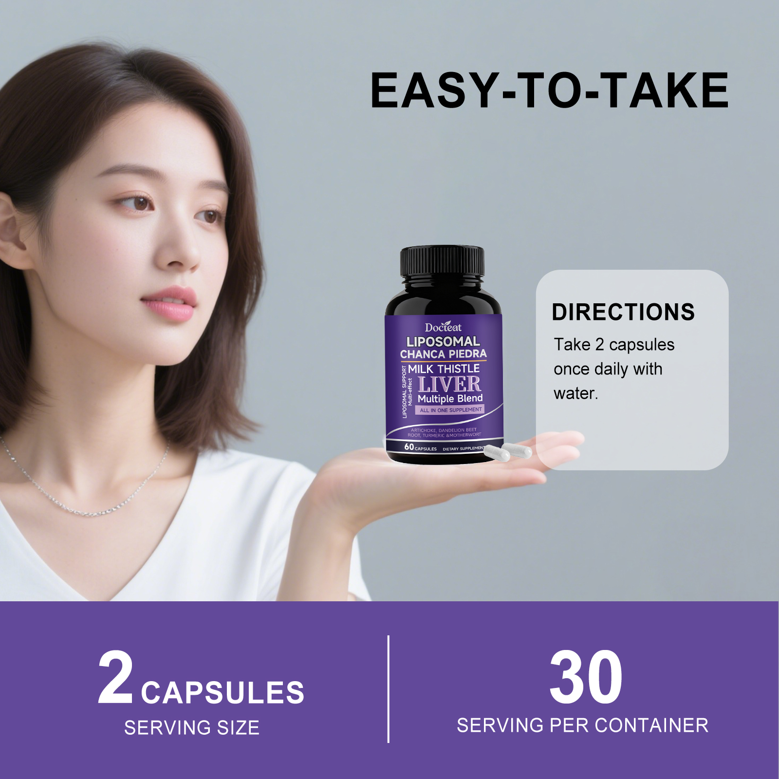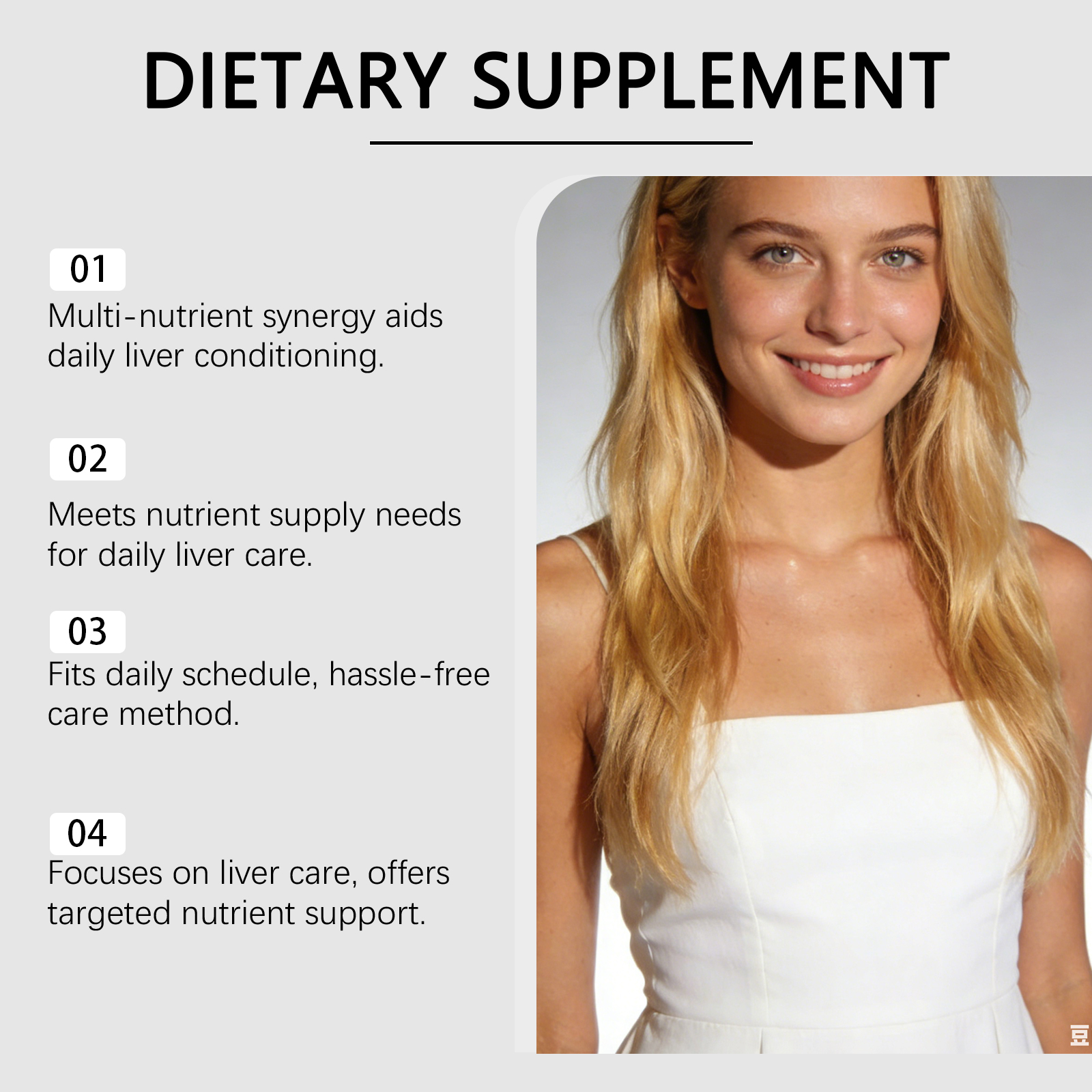 我们的身体护理胶囊,由锌、奶蓟草提取物精心调配而成。专为支持肝脏日常养护与状态维持,依托成分助力维持肝脏健康状态设计。使用方法极为便捷:每日1次,每次服2粒胶囊,用水送服。并且它可以多成分搭配适配肝脏日常调理,高吸收特性辅助肝脏营养补充。