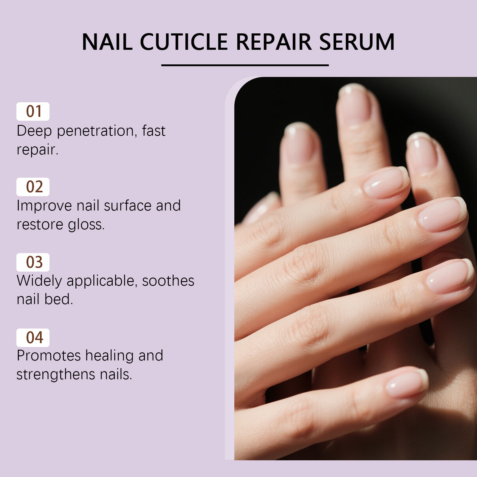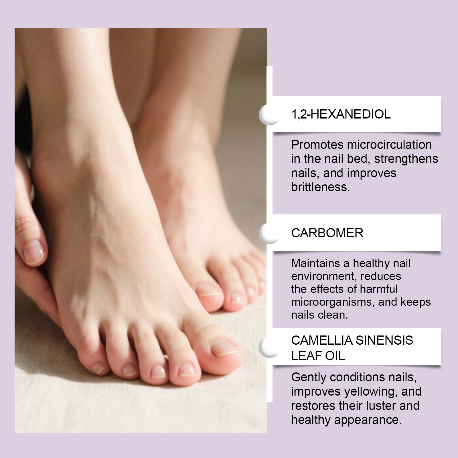 我们的指甲护理液,由卡波姆、精氨酸精心调配而成。专为深入渗透指甲表面,改善变黄和增厚问题设计。使用方法极为便捷:清洁指甲表面并保持干燥。将适量本产品均匀涂抹于指甲表面及周围皮肤,并等待其自然风干。并且可以恢复健康、光泽和光滑的外观。