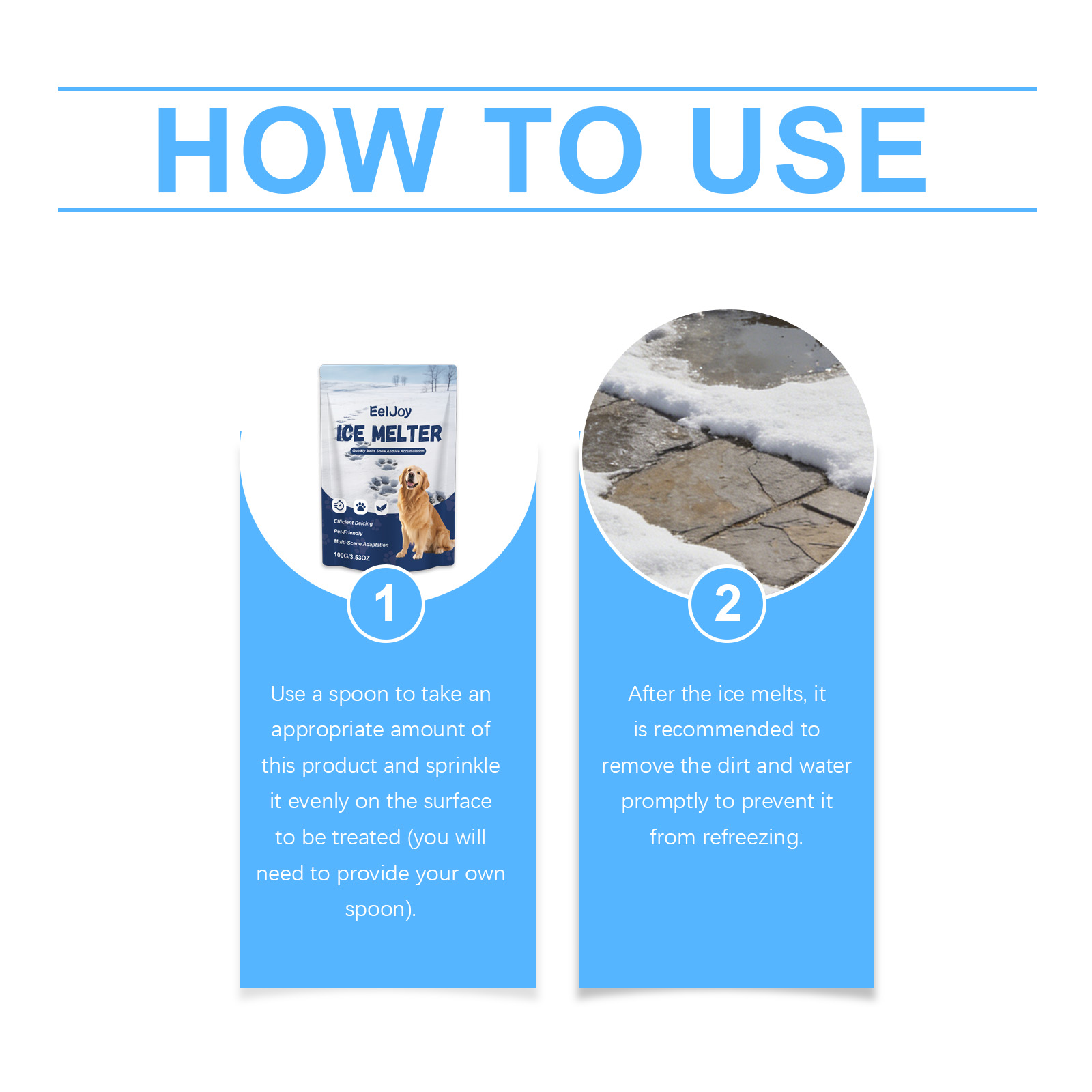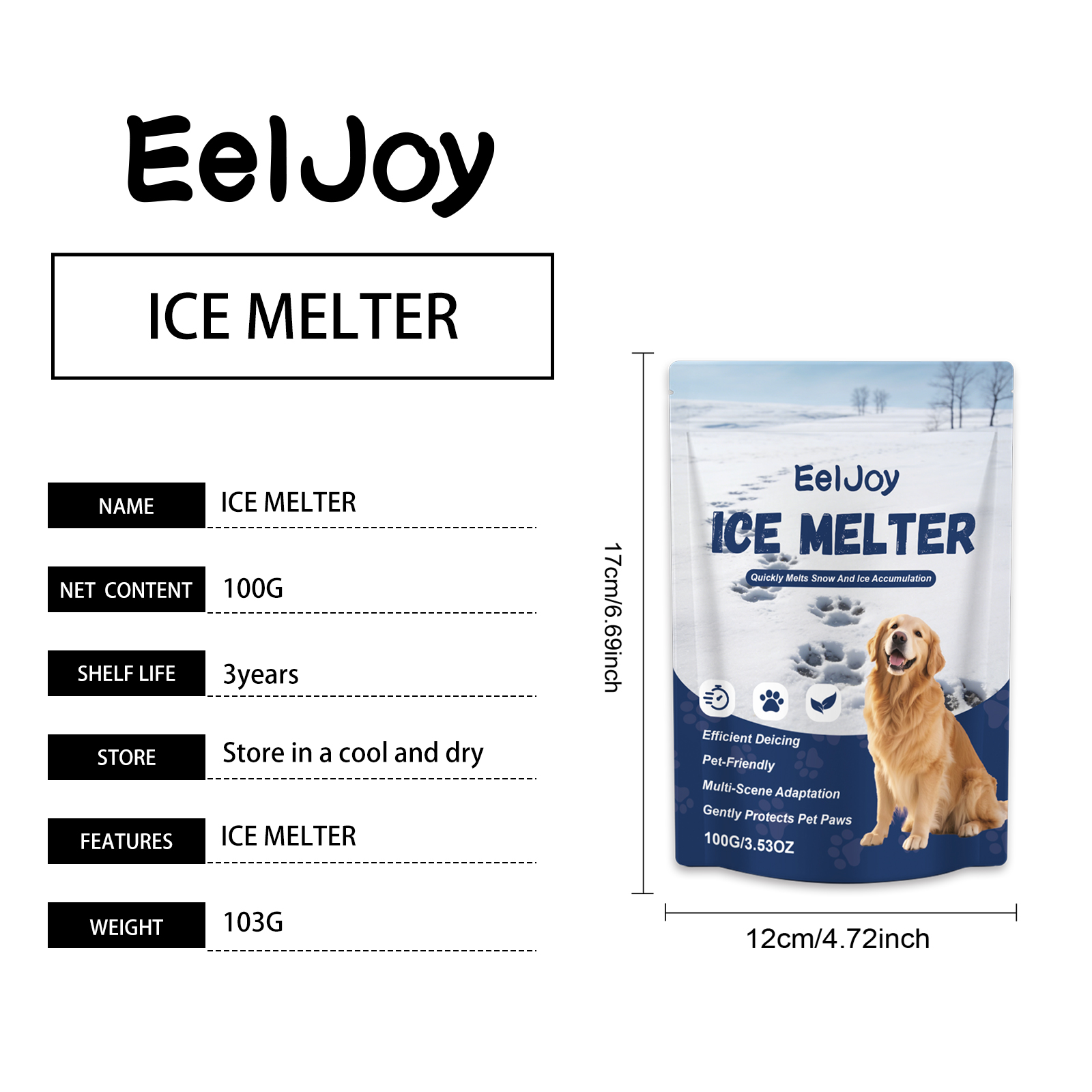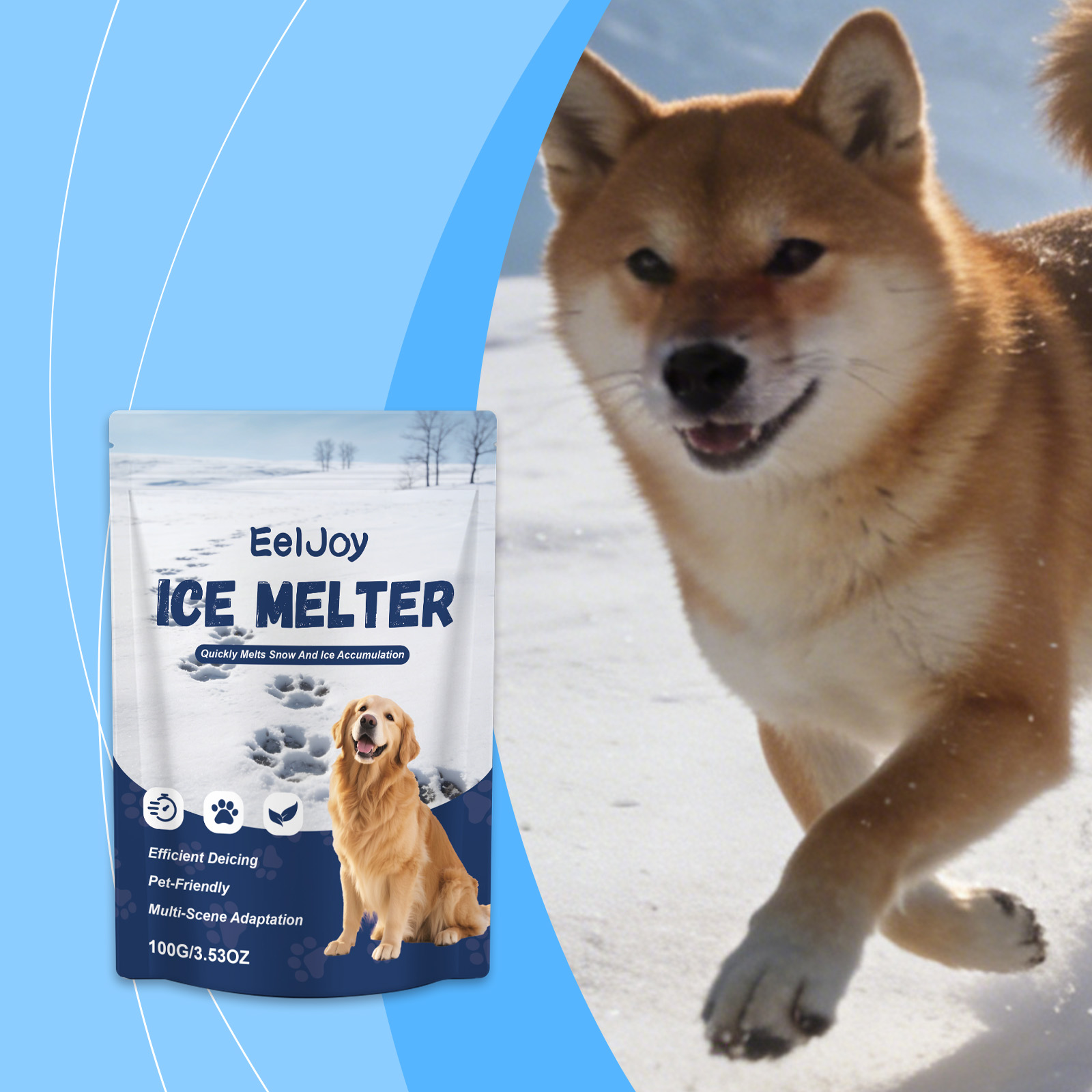我们的宠物融冰剂,由二氧化硅、滑石粉精心调配而成。专为快速融化积雪和冰层设计。使用方法极为便捷:使用勺子取适量本产品,均匀撒在待处理表面(您需要自备勺子)。冰融化后,建议及时清除污垢和水分,以防再次结冰。并且对爪子温和且无刺激。