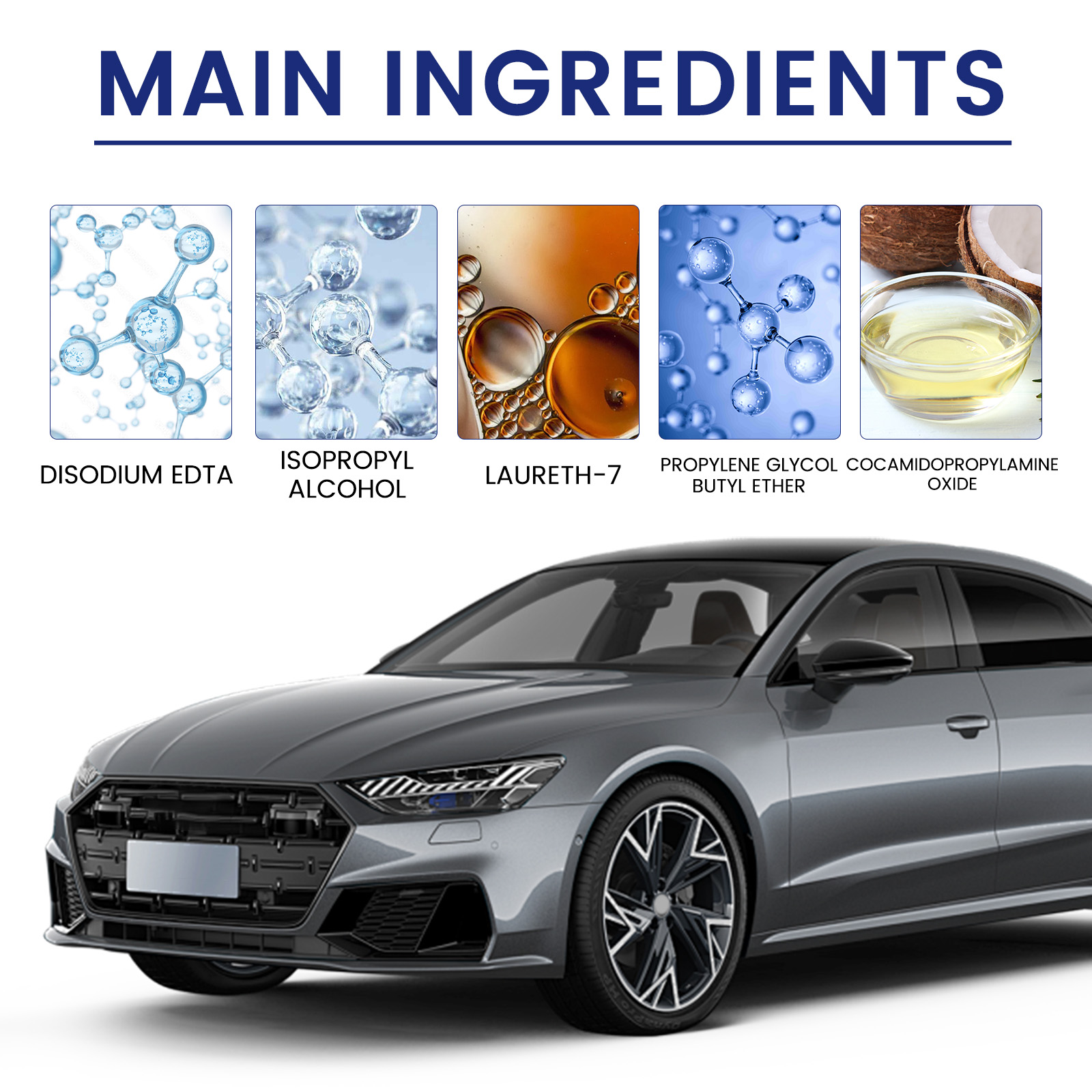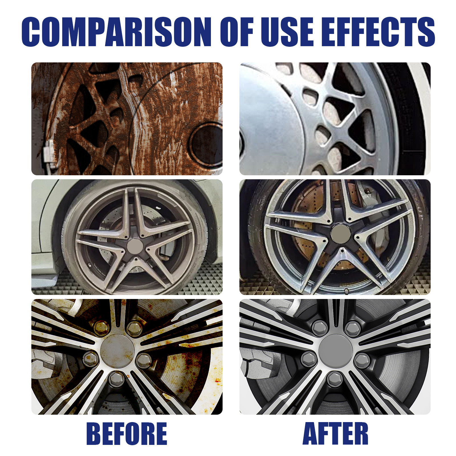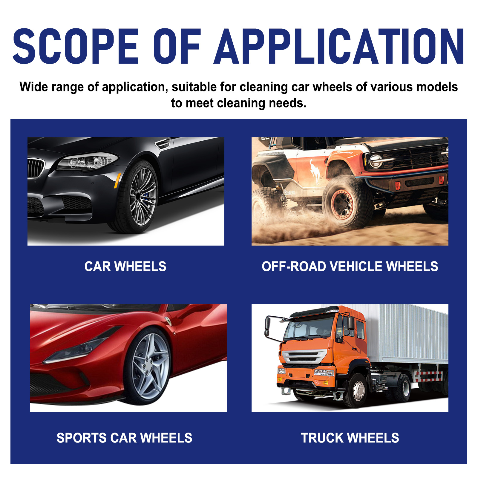 我们的汽车不锈钢车轮毂清洁膏含有二钠Edta,异丙醇,丙二醇丁醚。它可以去除污渍速度快,只要短短几分钟即可去除车轮毂上的污渍,让汽车车轮恢复原来的光泽。它的使用方法很简单:用海绵蘸取适量的清洁膏,在汽车车轮有较多污垢的地方来回擦拭,擦去污渍残留物,等待晾干即可。适用范围广,适用于各种车型的汽车车轮清洗,满足清洁需求。