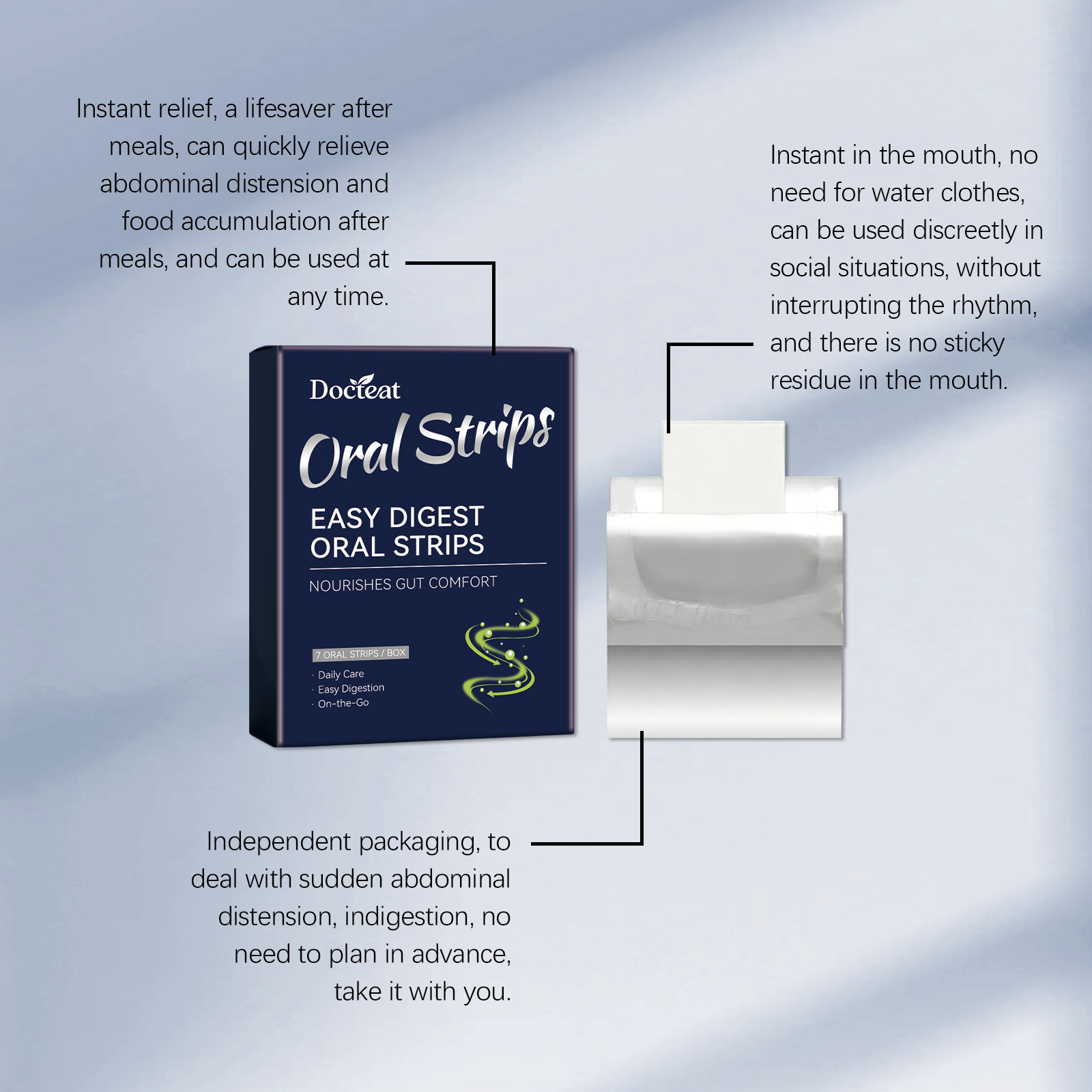 我们的身体护理口溶片,由洋车前子壳粉、果胶精心调配而成。专为快速缓解餐后腹胀、积食,辅助护肠,改善消化代谢效率,维持消化节奏稳定设计。使用方法极为便捷:从铝箔中取出可溶片,放在舌头上,无需水即可溶解。使用后入口即溶无颗粒感,无黏腻残留,独立单片轻薄便携,可放入口袋、餐包,突发腹胀、消化不良时随时补救,不含泻药,温和安全无刺激,不会引起腹泻或依赖,帮助肠道恢复稳定状态。
