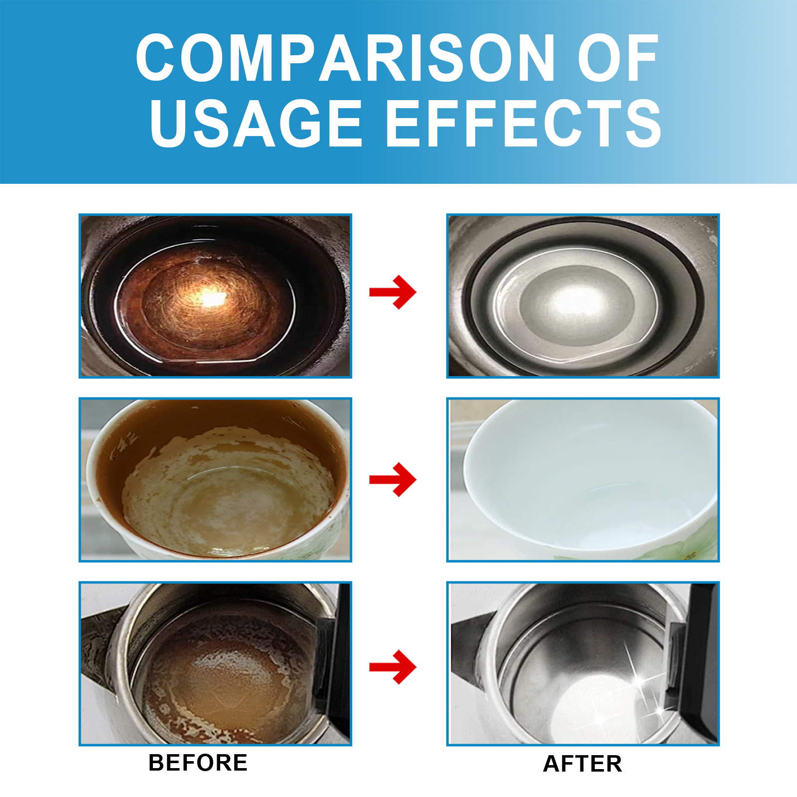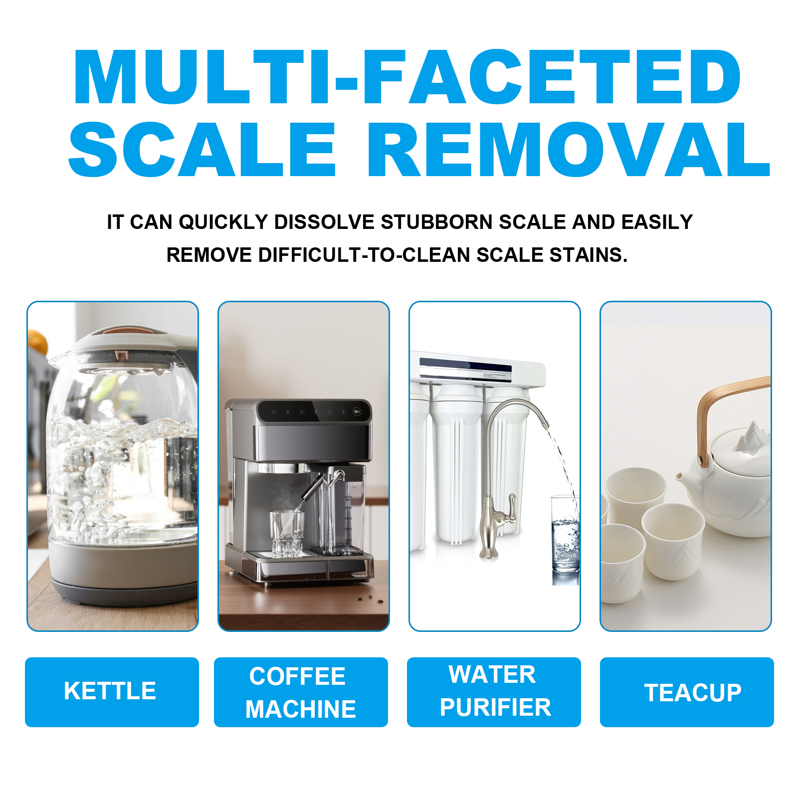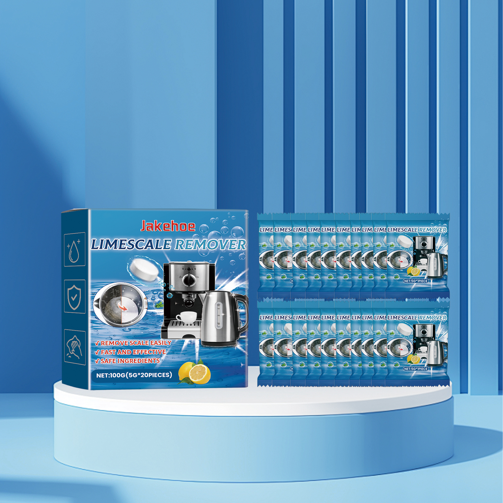 我们的水垢清洁泡腾片(盒装)含有柠檬提取物、EDTA二钠、碳酸氢钠。它可以快速溶解顽固水垢,轻松去除难以清洁的水垢污渍,清洁效果持久,能够防止水垢再次生成,保持表面清洁光滑。它的使用方法很简单:取一片泡腾片放入热水中等待溶解,将所需物品放入热水中浸泡20分钟,最后用清水洗净即可。采用便捷的泡腾设计,使用简单方便,成分安全,在去除水垢的同时不会损坏物品。