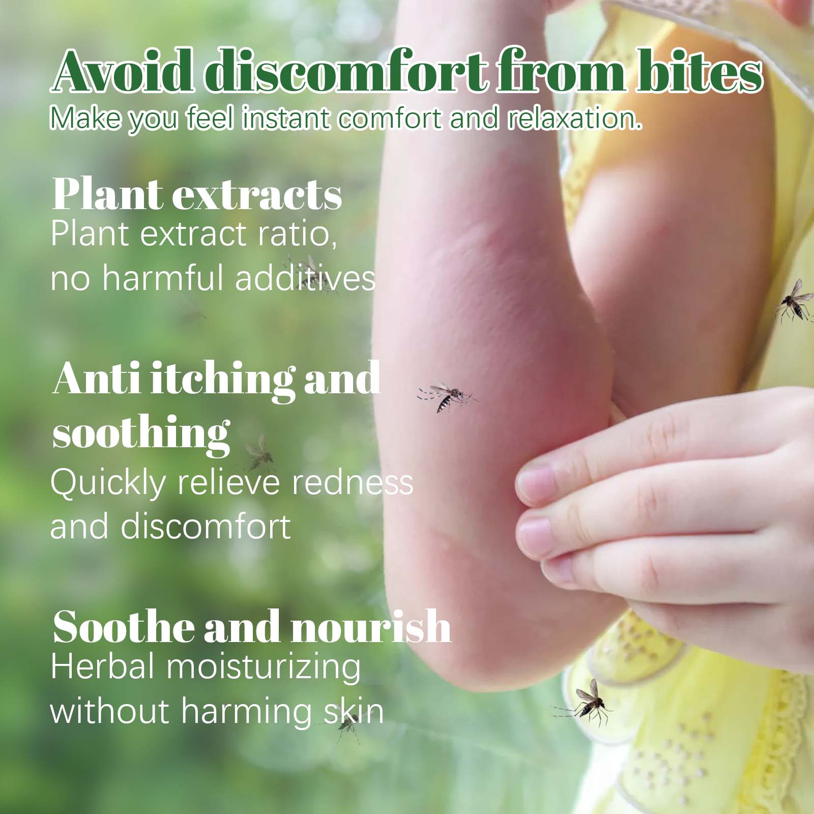 我们的紫草草本驱蚊膏含有蜂蜡、薄荷提取物、维生素E。它可以有效驱赶蚊虫、苍蝇等昆虫,保护您远离蚊虫叮咬,缓解因蚊虫叮咬引起的痒痛不适,让您更加舒适。它的使用方法很简单:清洁肌肤并保持干燥,取下瓶盖,将适量本品直接涂抹在皮肤上,以打圈的方式轻轻按摩使其完全吸收。有助于滋养肌肤,改善肌肤干燥和粗糙,让您的肌肤更加柔软,采用便携式包装设计,方便携带,随时随地都能够使用。